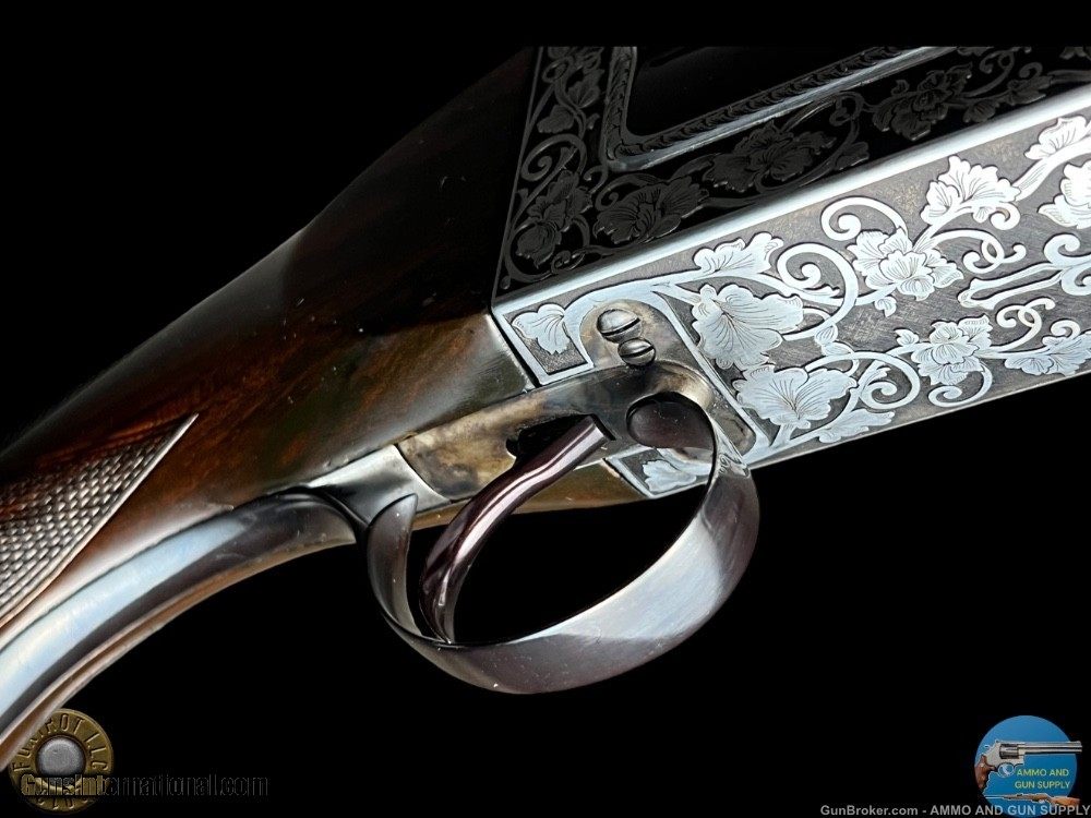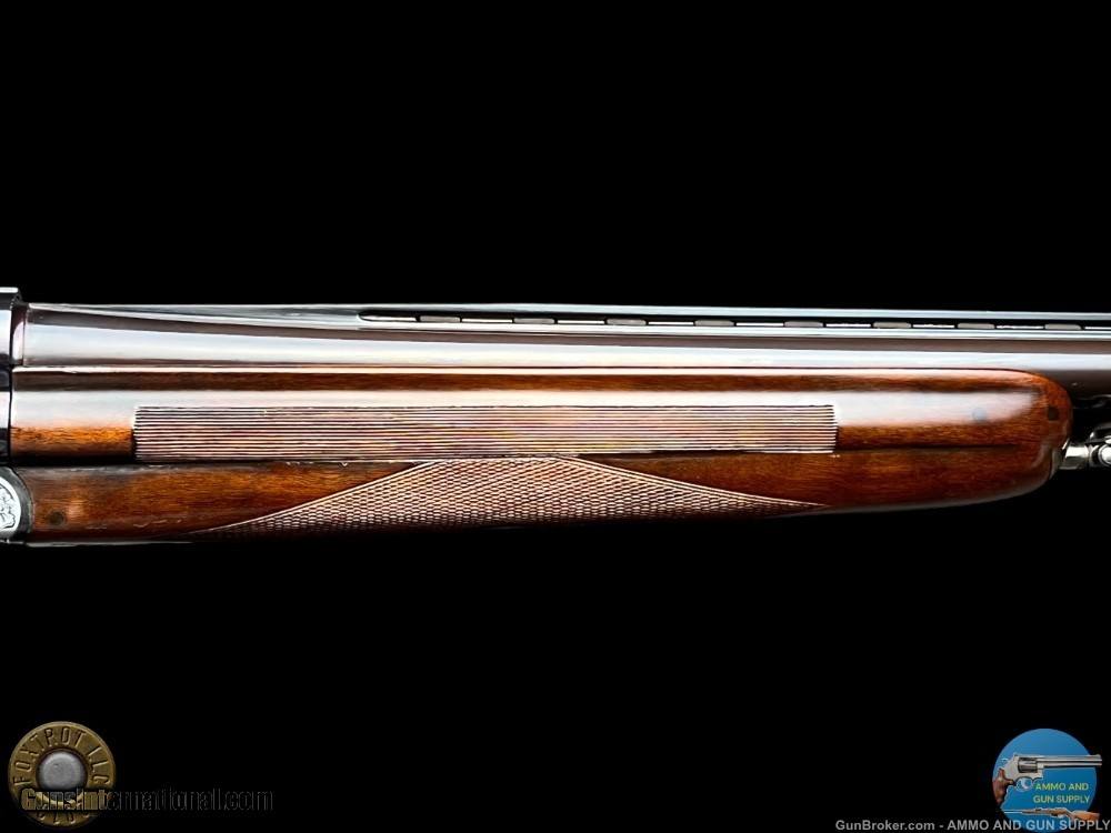 Description: COSMI 12 GA SEMI-AUTOMATICO - FLORAL ENGRAVED - 7+1 OR 2+1 - 1990 MANUFACTURER - COSMI - ITALY MODEL - SEMI-AUTOMATICO ACTION - COSMI BREAK ACTION SEMI-AUTOMATIC SN - 5125 GAUGE - 12 GAUGE 2.75" CHOKED - Full- .035" OF RESTRICTION CAPACITY – 2+1 OR 7+1 DAC - 1.5" DAH - 2.125" LOP - 14.5" WEIGHT - 8 LB 5 OZ BARREL LENGTH - 26" PRODUCED - 1990 SIGHTS - VENT RIB WITH SILVER FRONT BEAD The Cosmi Semi-Automatico is an exquisite 12-gauge shotgun from Italy, representing the pinnacle of luxury in semi-automatic firearms. Manufactured in 1990, this model features Cosmi's unique break action semi-automatic design, blending elegance with innovative engineering. The shotgun, with serial number 5125, is chambered for 2.75" shells and has a capacity of either 2+1 or 7+1, making it versatile for various shooting scenarios. This Cosmi is choked Fullwith .035" of restriction and boasts a 26" barrel, vent rib, and silver front bead sight for precise targeting. The dimensions include a drop at comb (DAC) of 1.5", a drop at heel (DAH) of 2.125", and a length of pull (LOP) of 14.5", all contributing to a comfortable and ergonomic shooting experience. Weighing in at 8 lbs 5 oz, it balances durability with ease of handling. In excellent overall condition, the shotgun exhibits very faint wear typical of its age and use. The bore is clear, the action operates smoothly, and the trigger remains crisp, ensuring reliable performance. The European walnut stock features a stunning grain pattern, and the checkering on the pistol grip and forend is sharp and well-defined. The receiver is beautifully adorned with intricate floral and scroll engraving, showcasing the artistry and craftsmanship synonymous with Cosmi. Known as the premier luxury semi-automatic shotguns, Cosmi firearms are truly bespoke, each being a unique masterpiece. The meticulous attention to detail, customization, and the absence of screws in the assembly of over 100 machined parts make these shotguns incredibly sought after and unparalleled in the market. Cosmi shotguns are not just firearms; they are heirlooms, representing a blend of tradition, luxury, and innovation. This particular model, with its impeccable condition and stunning features, stands as a testament to the unmatched quality and exclusivity of Cosmi's craftsmanship. FLAT $50 S/H/I. 4%CREDIT CARD FEE APPLIES. FOXTROT IS A LICENSED FFL DEALER WITH MANY POSITIVE FEEDBACKS SO BUY WITH CONFIDENCE! SOLD Shotgun Gauge: 12 Gauge Manufacturer: COSMI Model: SEMI-AUTOMATICO Serial Number: 5125 Bore: 12 Chambers: 2.75 Condition: EXC Metal Condition: EXC Wood Condition: EXC Bore Condition: EXC Barrel Type: BOEHLER ANTINIT Manufacture Date: 1990 |