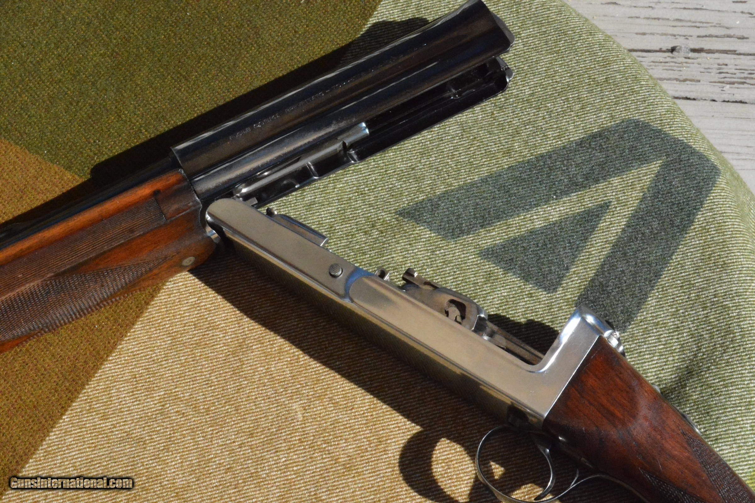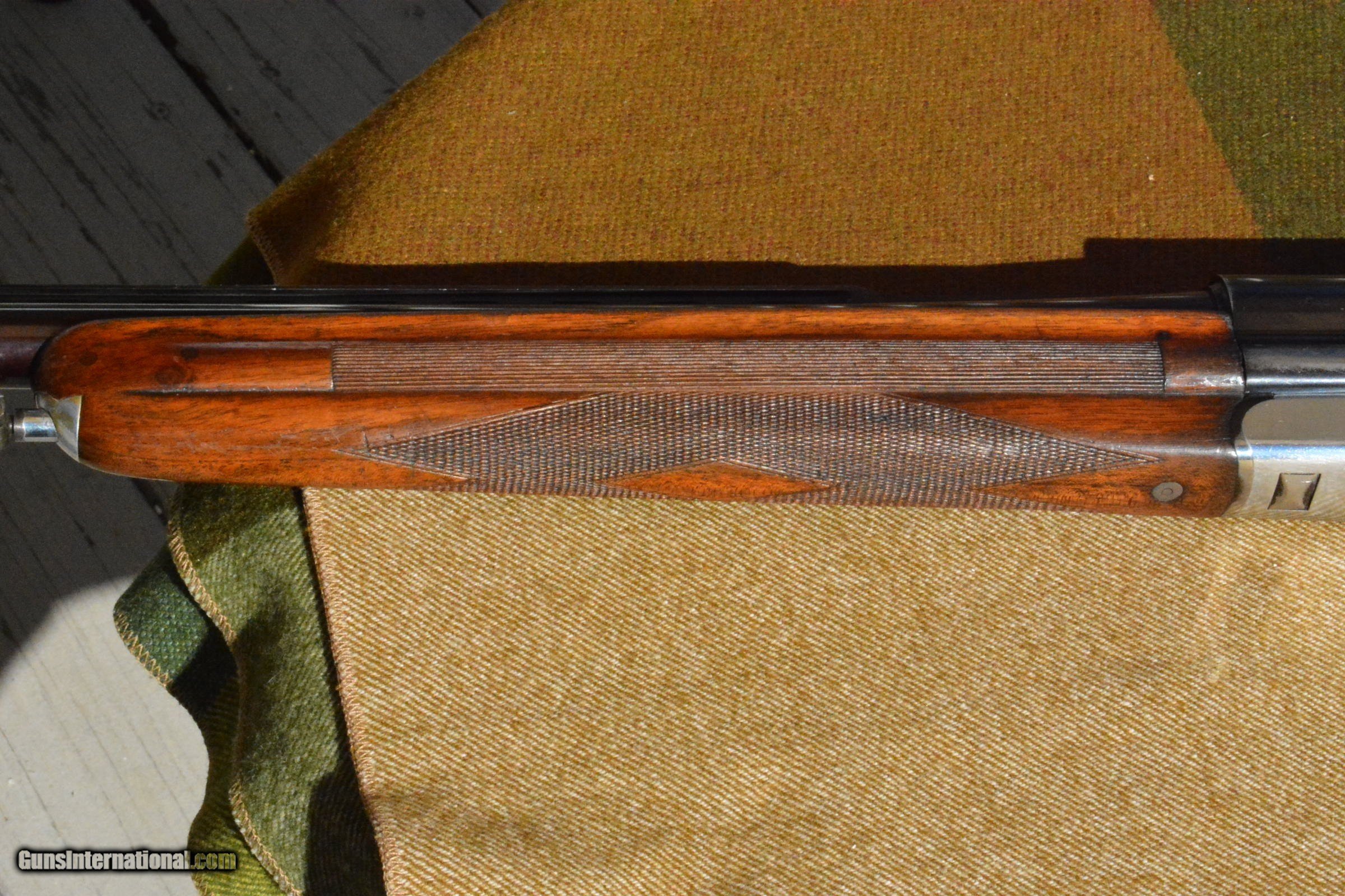 Description: COSMI AMERICO STANDARD DELUXE MODEL, MFG 1959,12GA, 26" BARREL, IM FIXED CHOKE, UNIQUE PIVOTING BREAK OPEN ACTION LOADS CARTRIDGES INTO STOCK CHAMBER FROM INSIDE RECEIVER,8 SHOT MAG,WITH 3 SHOT REDUCER OPTION,STEEL FRAME BOEHLER ANTINIT BARREL( MOVES WHEN SHOOTING).ALL INTERNAL PARTS ARE CHROME-NICKEL STEEL, CUSTOM ORDER GUN ( 6 MONTH DELIVERY TIME).MFG STARTED IN 1930. STILL IN PRODUCTION. ONLY 8,200 GUNS MADE IN 90 YEARS.THIS SAMPLE IS IN EXCELLENT MECHANICAL CONDITION, STOCK AND FOREARM SHOW HANDLING MARKS,NICE PLUM COLOR BARREL,SPARKLING BORE,UNIQUE MECHANISM AND HIGH QUALITY FABRICATION TECHNIQUES.IT TAKES 400 HOURS TO PRODUCE ONE GUN.CURRENT US AGENT IN AZUZA CA. SOLD Curio/Relic: Yes |