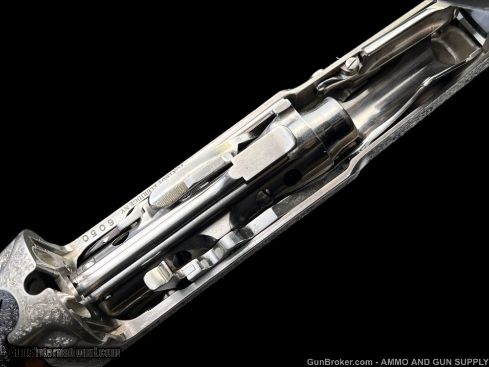 Description: THIS GUN HAS BEEN SOLD TO A SATISFIED CLIENT - PLEASE SEE OUR OTHER FINE FIREARM LISTINGS COSMI EXTRA LUSSO MANUFACTURER - COSMI ITALY MODEL - EXTRA LUSSO ACTION - COSMI BREAK ACTION SEMI AUTOMATIC SN - 6050 GAUGE - 12 CHOKE - FULL CAPACITY – 5+1 DAC - 1.8125" DAH - 2.375" LOP - 14.375" BARREL LENGTH - 27" PRODUCED - 1984 ENGRAVED BY - MR CLAUDIO TAMASONI The Cosmi Extra Lusso is a high-end, semi-automatic shotgun manufactured by Cosmi Italy. This model has a break-action, with a full choke and a capacity of 5+1 rounds. It has a DAC (distance between the center of the buttstock to the center of the trigger) of 1.8125", a DAH (distance between the center of the buttstock to the center of the heel) of 2.375", and a LOP (length of pull) of 14.375". The shotgun has a 27" barrel length and was produced in 1984. This particular shotgun is in fantastic overall condition, with a beautiful rose and scroll engraving over the action, which was done by Mr. C. Tamasoni. The action is built like a Swiss watch, and the shotgun has a smooth and reliable cycling mechanism. The bore is clear, indicating that it is in good condition and free from obstructions. The trigger is crisp, allowing for accurate and controlled shooting. The walnut stock of the Cosmi Extra Lusso is absolutely stunning, with rich color and intricate grain patterns. The barrel has a raised vent rib with a front bead, providing for a clear sight picture and improved accuracy. The shotgun is a beautiful example of Italian craftsmanship, with attention to detail and quality evident in every aspect of its design and construction. Overall, the Cosmi Extra Lusso is a high-end, beautiful shotgun that is perfect for enthusiasts who appreciate fine firearms. Its combination of performance, quality, and aesthetics make it a valuable addition to any collection and a joy to shoot. FLAT $50 S/H/I. 4%CREDIT CARD FEE APPLIES. FOXTROT IS A LICENSED FFL DEALER WITH MANY POSITIVE FEEDBACKS SO BUY WITH CONFIDENCE! GUNS WANTED AMMO AND GUN SUPPLY IS A TOP SELLER WITH 1000’S OF SATISFIED CUSTOMERS. OUR PROFESSIONAL LISTING STRATEGY ENSURE A MAXIMUM REALIZED VALUE FOR YOUR FIREARM. ================================================================================================== ABOUT US FOXTROT IS A PURVEYOR OF FINE FIREARMS AND SPECIALIZES IN RARE AND UNIQUE FIREARMS THAT ARE BEST-IN-CLASS. US AGENT FOR KARL HAUPTMANN OF FERLACH, AUSTRIA, VERNEY-CARRON OF FRANCE, AND KYNOCH AMMUNITION. WE PROVIDE FAIR AND HONEST REPRESENTATION OF ALL ITEMS OFFERED FOR SALE. FOXTROT IS A LICENSED IMPORTER OF FIREARMS. SOLD Shotgun Gauge: 12 Gauge Manufacturer: COSMI Model: EXTRA LUSSO Serial Number: 6050 Bore: 12 Condition: EXC Metal Condition: EXC Wood Condition: EXC Bore Condition: EXC Manufacture Date: 1984 Chokes: FULL |