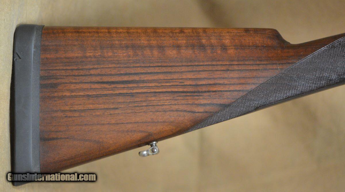 Description: Cosmi Break-Action Semi-Automatic Game 12GA with 25 1/2" Briley Thinwall choked barrel, ventilated stepped rib. Standard coin finished receiver with no engraving. Factory English straight-hand stock to KickEez recoil pad. Finish on wood shows wear, some oil soaked areas with handling marks, repaired crack in forearm. Barrels and action show minor bluing wear. Mechanically sound. Includes hard case and additional chokes. This gun is on consignment and ineligible for trade-ins. SOLD |