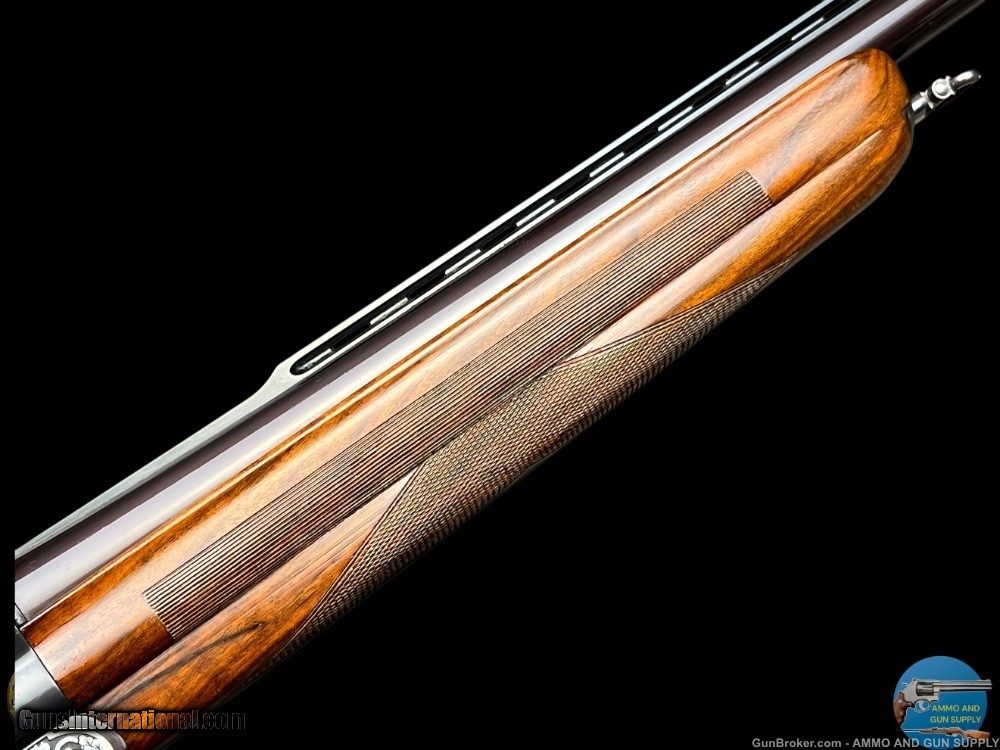 Description: FANTASTIC COSMI FLORAL & SCROLL ENGRAVED 12 GAUGE - 2+1 OR 7+1 - 1991 MANUFACTURER - COSMI - ITALY MODEL - SEMI-AUTOMATICO ACTION - COSMI BREAK ACTION SEMI-AUTOMATIC GAUGE - 12 GAUGE 2.75" CHOKED - IMPORVED MODIFIED - .030" OF RESTRICTION CAPACITY – 2+1 OR 7+1 DAC - 1.375" DAH - 2.125" LOP - 14.375" WEIGHT - 8 LB 1 OZ BARREL LENGTH - 27" PRODUCED - 1991 SIGHTS - VENT RIB WITH SILVER FRONT BEAD The Cosmi Semi-Automatico, is an exceptional 12-gauge shotgun, produced in 1991 by the legendary Italian manufacturer Cosmi. Renowned as the world’s finest luxury semi-automatic shotguns, Cosmi firearms blend intricate artistry with innovative engineering, making them both functional tools and heirloom-quality masterpieces. Chambered for 2¾" shells, the shotgun offers a configurable capacity of 2+1 or 7+1. It features a 27-inch barrel with an improved modified choke of .030" restriction. Weighing 8 pounds 1 ounce, the shotgun is well-balanced and designed for ultimate reliability. This example is in excellent overall condition, exhibiting only faint wear typical of age and light use. The bore is smooth and bright, the action cycles flawlessly, and the trigger is crisp, ensuring reliability and precision. The European walnut stock showcases a stunning grain pattern and a hand-oil finish, while the checkering on the pistol grip and forend is sharp and well-defined, offering a secure grip. The receiver is adorned with intricate floral and scroll engraving, demonstrating the unparalleled artistry of Cosmi’s master engravers. This attention to detail elevates the firearm to the level of fine art, while the stock dimensions—1.375" drop at comb, 2.125" drop at heel, and 14.375" length of pull—ensure optimal fit and comfort. The vent rib with a silver front bead sight provides precise aiming and functionality. Cosmi’s signature break-action semi-automatic design incorporates over 100 precision-machined, hand-fitted parts, assembled without the use of screws. This innovative approach results in a shotgun that blends the advantages of both break-action and semi-automatic firearms, offering unmatched elegance and practicality. Known for their bespoke nature, Cosmi shotguns are handcrafted masterpieces, each one unique and tailored to the highest standards. This 1991 Cosmi, with its stunning engraving, premium walnut stock, and innovative engineering, is a timeless testament to Italian craftsmanship and is as much a collector’s treasure as it is a functional sporting firearm. A truly unparalleled example of artistry, engineering, and legacy. FLAT $50 S/H/I. 4%CREDIT CARD FEE APPLIES. FOXTROT IS A LICENSED FFL DEALER WITH MANY POSITIVE FEEDBACKS SO BUY WITH CONFIDENCE! SOLD Shotgun Gauge: 12 Gauge Manufacturer: COSMI Serial Number: 6835 Barrel Length: 27 Bore: 12 Chambers: 2.75 Condition: EXC Metal Condition: EXC Wood Condition: EXC Barrel Type: BOEHLER ANTINIT Action: COSMI BREAK ACTION SEMI AUTOMATIC Manufacture Date: 1991 Chokes: IMPORVED MODIFIED - .030" OF RESTRICTION |