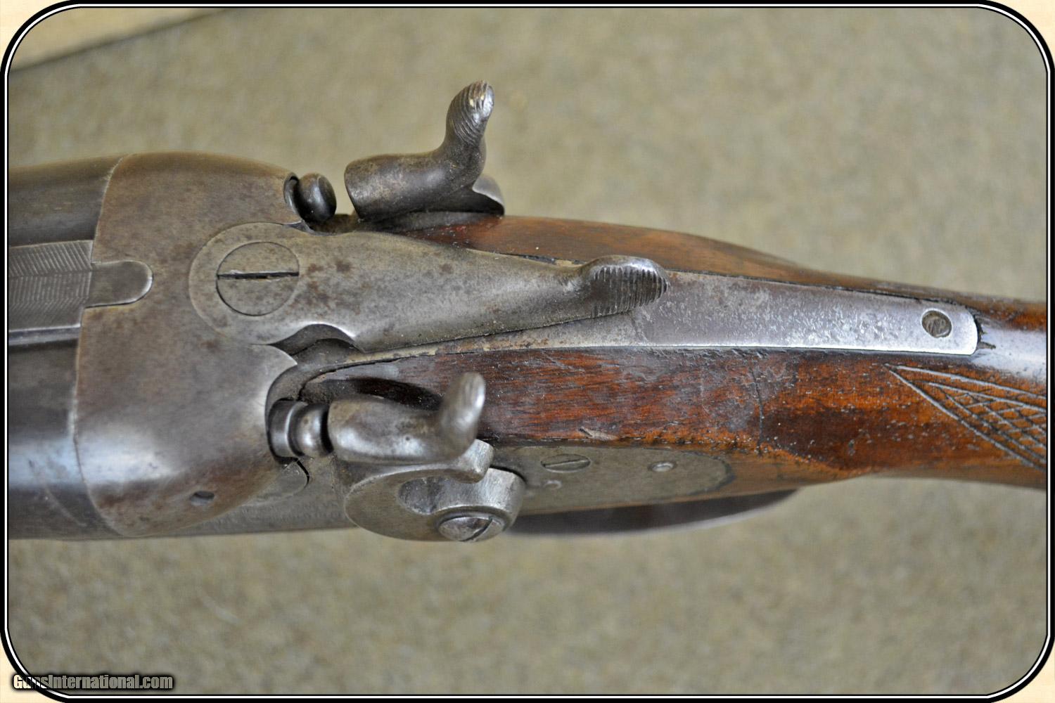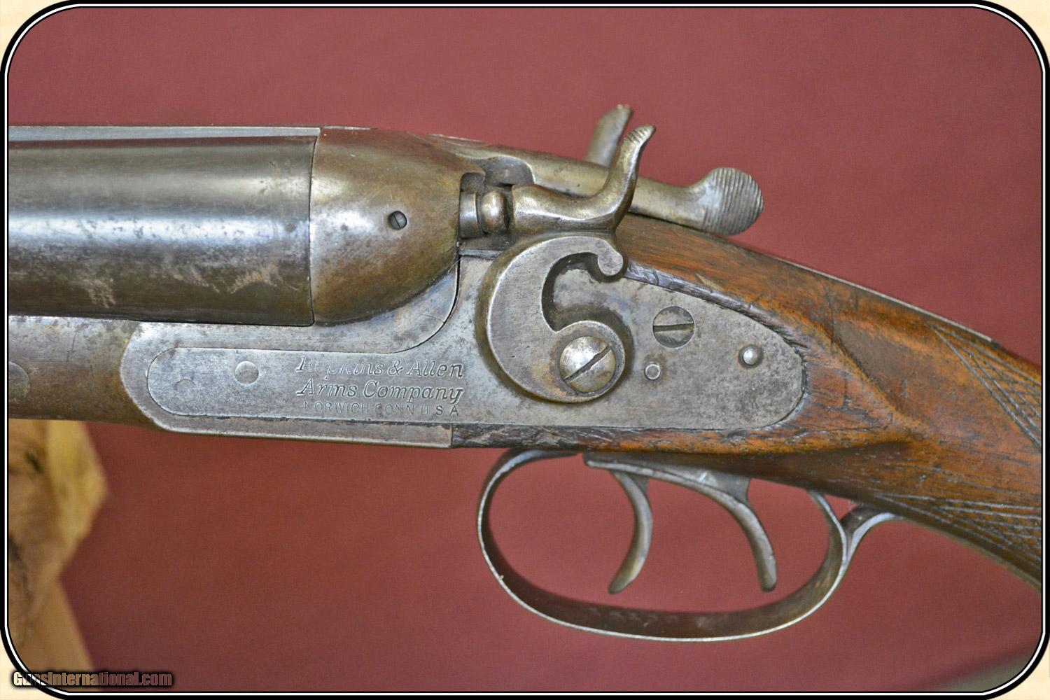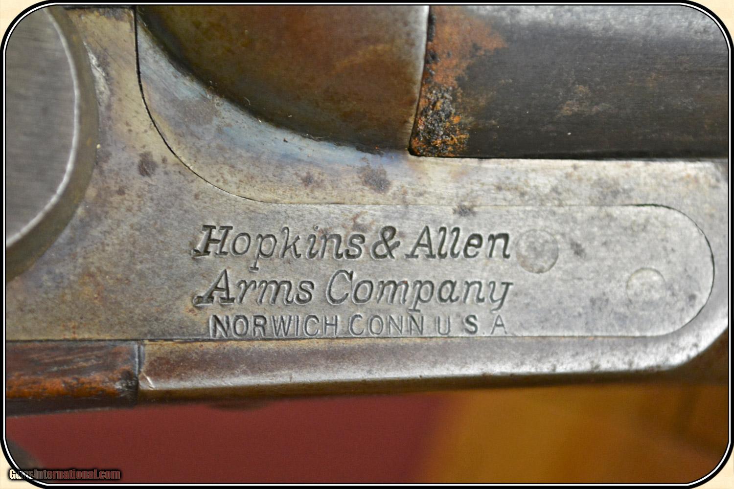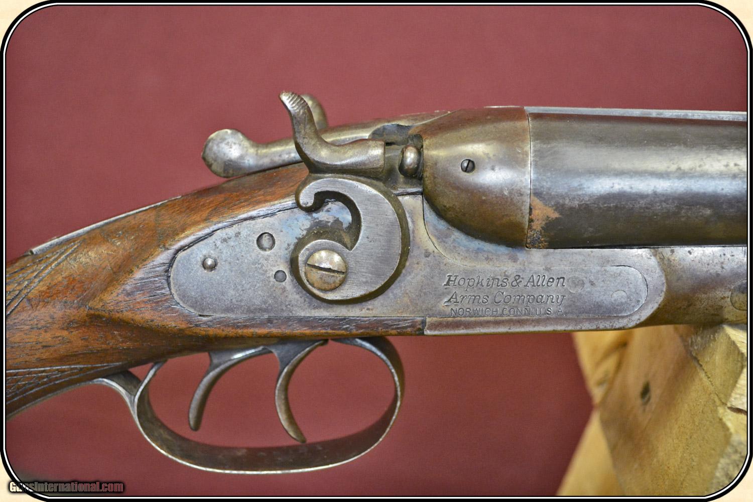 Description: Coach Gun / Saw off shot gun / Street Howitzer / Scatter Gun. The Coach Gun received its many moniker on the stagecoaches and streets of the Wild West. Stagecoach companies quickly implemented the use of guards to ride along side the driver carrying a weapon that allowed for some leeway in accuracy as they bounced along the bumpy trails. Cut-down versions of the Stagecoach Shotgun were also popular among Marshals and Sheriffs for their mobility and lenient accuracy at close quarters. Thumb the side locking lever down and you can break open the gun to reveal the lead-spitting barrels of this close-quarters defense weapon. Close and lock the barrels and cock both hammers. Finger the double triggers one at a time and the hammers will fall. On the plains of the late 19th century there was nothing else like the sound of a shotgun hammer. The feel and action of this legendary Old West tool will transport you back to the Dakota Territory, when your trusty shotgun was your last and best line of defense. Features Overall Length: 37", barrels 20 and a shade inches. Lock up is tight and secure without a HINT of MOVEMENT. Gutta-percha (hard rubber) butt plate on a stock with no cracks or chips. Back action locks. Marked "Hopkins & Allen Arms Company Norwich Conn USA." on both locks. Overall brown patina. This is an ANTIQUE and can be shipped directly to you. Adult signature required. Sold as an Antique ~ no guarantees, warranties, or liabilities for any actual usage. If any firearms are to be used for shooting purposes, a qualified gunsmith should inspect them first. Adult signature required upon delivery. Payment Cash, postal money order, cashiers check, personal & business checks. Can be ordered with a credit card or paypal at wxx.riverjunction,cxx just type in the number 4425 in the search box. SOLD |