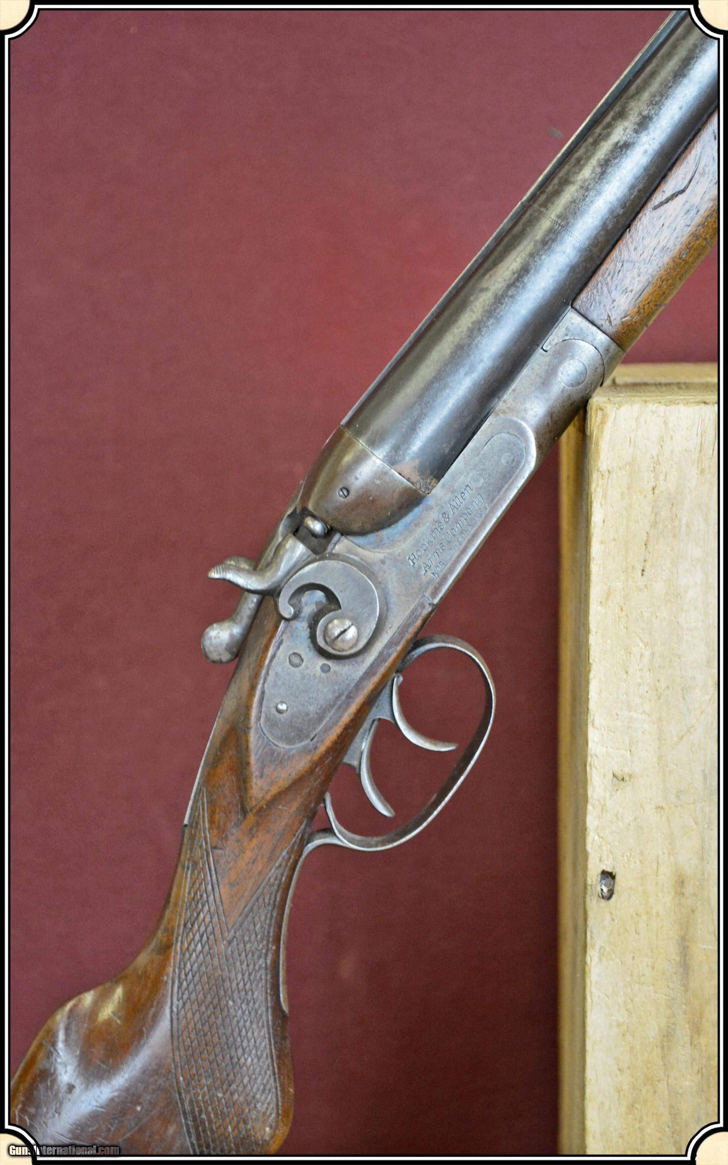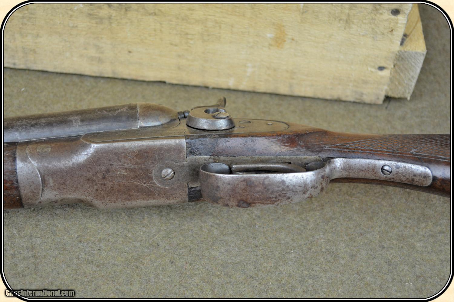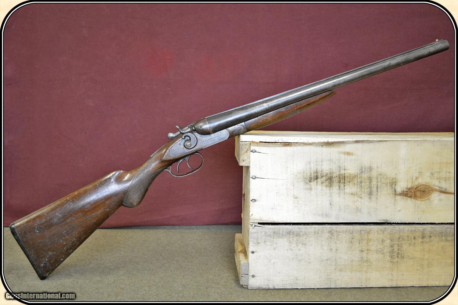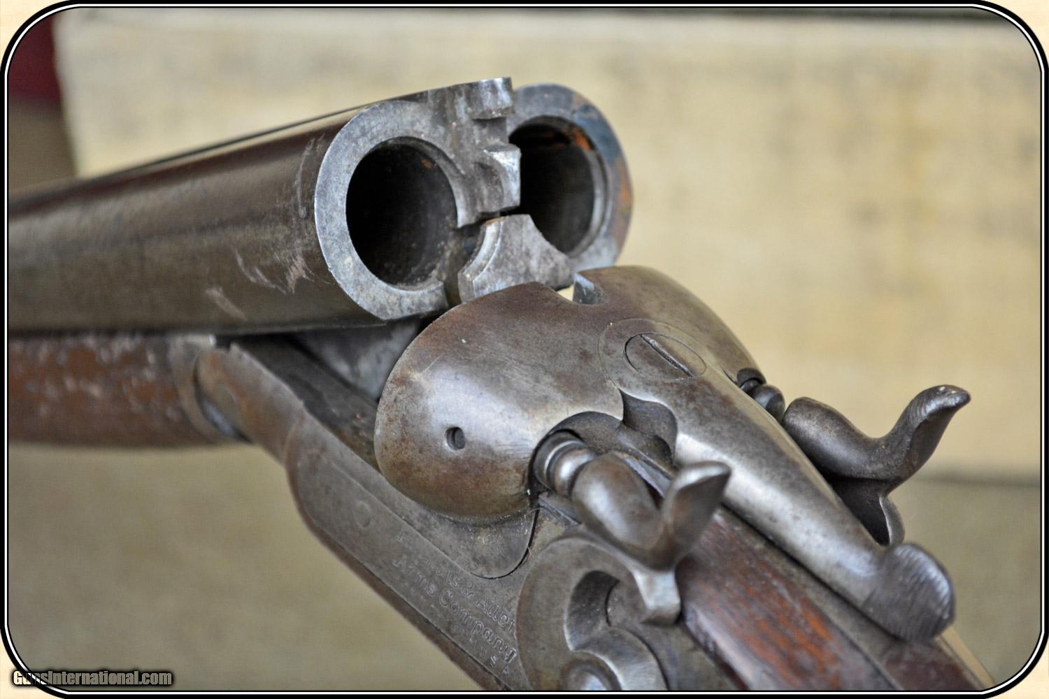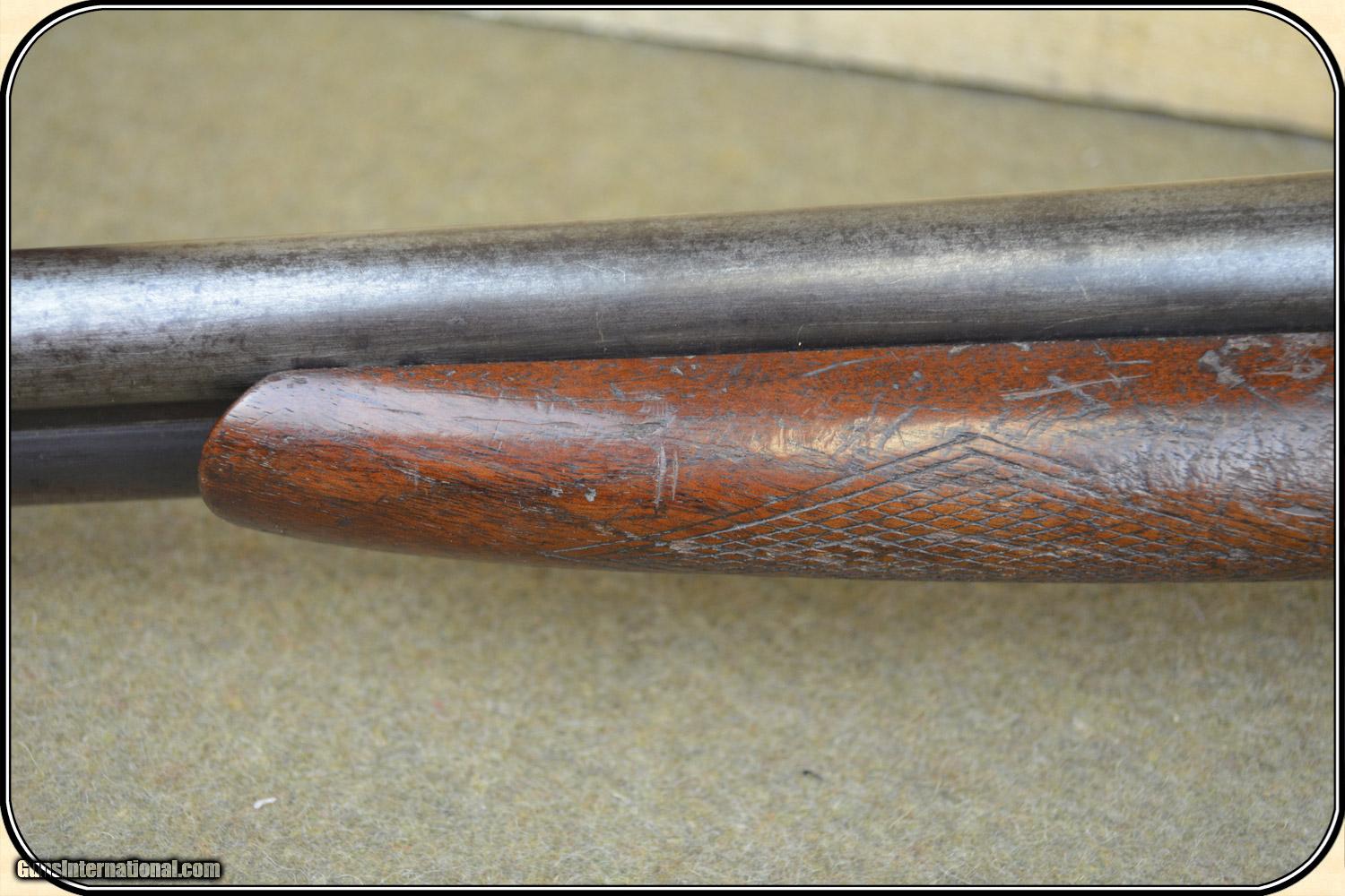 Description: Coach Gun / Saw off shot gun / Street Howitzer / Scatter Gun. The Coach Gun received its many moniker on the stagecoaches and streets of the Wild West. Stagecoach companies quickly implemented the use of guards to ride along side the driver carrying a weapon that allowed for some leeway in accuracy as they bounced along the bumpy trails. Cut-down versions of the Stagecoach Shotgun were also popular among Marshals and Sheriffs for their mobility and lenient accuracy at close quarters. Thumb the side locking lever down and you can break open the gun to reveal the lead-spitting barrels of this close-quarters defense weapon. Close and lock the barrels and cock both hammers. Finger the double triggers one at a time and the hammers will fall. On the plains of the late 19th century there was nothing else like the sound of a shotgun hammer. The feel and action of this legendary Old West tool will transport you back to the Dakota Territory, when your trusty shotgun was your last and best line of defense. Features Overall Length: 37", barrels 20 and a shade inches. Lock up is tight and secure without a HINT of MOVEMENT. Gutta-percha (hard rubber) butt plate on a stock with no cracks or chips. Back action locks. Marked "Hopkins & Allen Arms Company Norwich Conn USA." on both locks. Overall brown patina. This is an ANTIQUE and can be shipped directly to you. Adult signature required. Sold as an Antique ~ no guarantees, warranties, or liabilities for any actual usage. If any firearms are to be used for shooting purposes, a qualified gunsmith should inspect them first. Adult signature required upon delivery. Payment Cash, postal money order, cashiers check, personal & business checks. Can be ordered with a credit card or paypal at wxx.riverjunction,cxx just type in the number 4425 in the search box. SOLD |