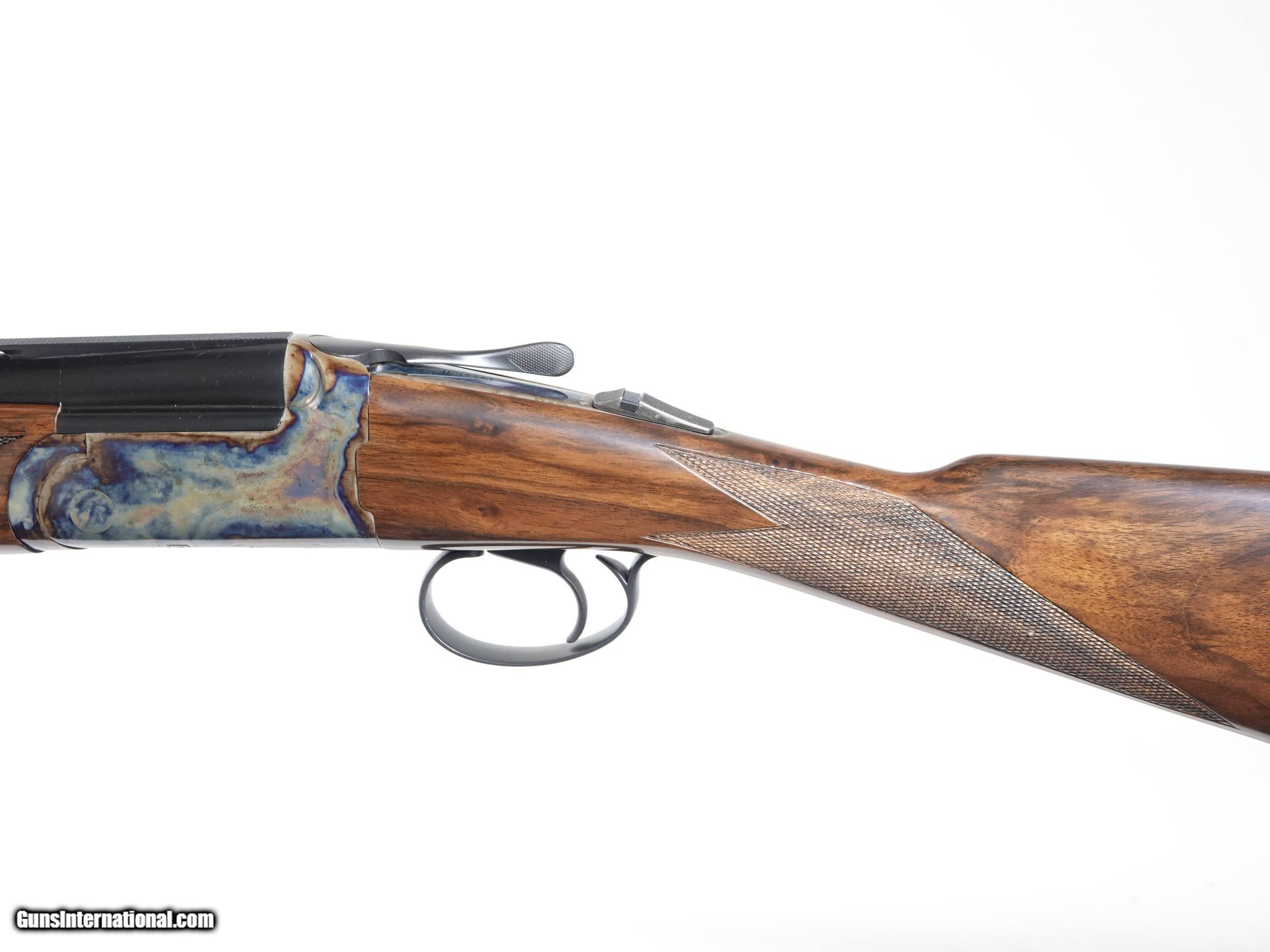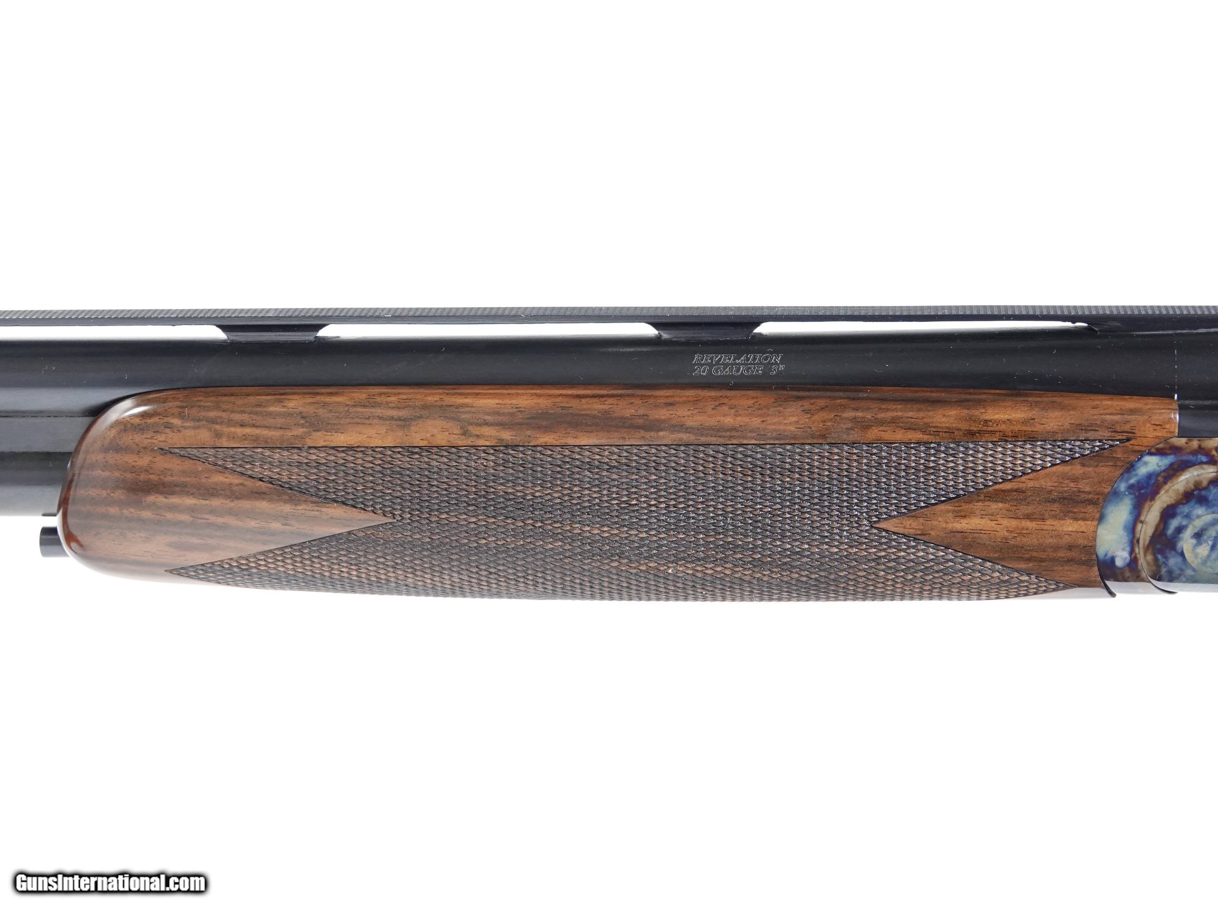 Description: CSMC - REVELATION 20g O/U ., 30” barrels, 5 screw in choke tubes (SK,IC,M,IM,F) Standard Walnut, straight grip stock, high gloss finish, single selective trigger, automatic ejectors, automatic safety, vent rib, 3” chambers, spectacular bone & charcoal case coloring, excellent configuration 100% brand new & unfired, available for immediate delivery. Inv# 46897 14 1/2” x 1 3/8” x 2 1/2” 6lb. 2oz. $1,995.00 Shipping to lower 48: $35.00 SOLD |
