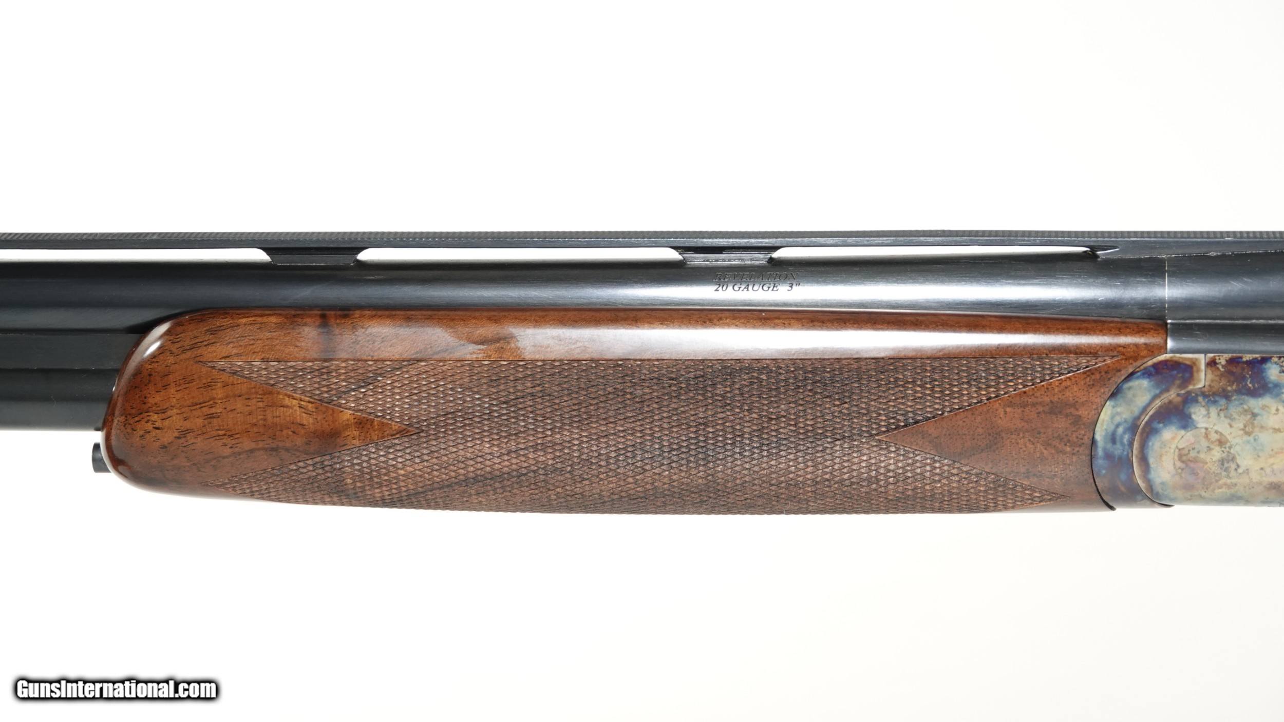 Description: CSMC - REVELATION 20g O/U ., 30” barrels, 5 screw in choke tubes (SK,IC,M,IM,F) Standard Walnut, pistol grip stock, high gloss finish, single selective trigger, automatic ejectors, automatic safety, vent rib, 3” chambers, spectacular bone & charcoal case coloring, excellent configuration. 100% brand new & unfired, available for immediate delivery. Inv# 46689 14 1/2” x 1 3/8” x 2 1/2” $1,995.00 Shipping to lower 48: $35.00 SOLD |