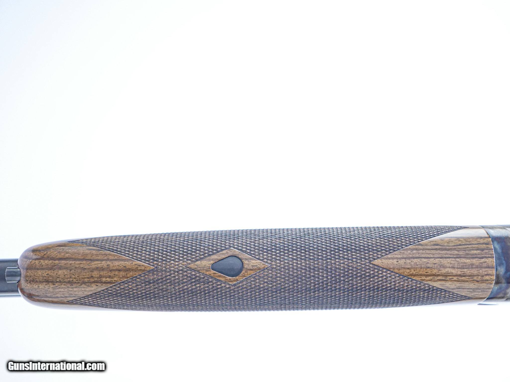 Description: CSMC - Revelation, 20ga. 26” Barrels with 5 Screw-in Choke Tubes (SK,IC,M,IM,F). Highly figured Turkish walnut straight grip stock, high gloss finish, single selective trigger, automatic ejectors, automatic safety, vent rib, 3” chambers, spectacular bone & charcoal case coloring, excellent configuration. 100% brand new & unfired, each gun is completely handmade in the USA by the finest gunsmiths in the world, available for immediate delivery. Inv: 49523 6 lbs. 0 oz. 14 1/2” x 1 1/2” x 2” $2,345.00 SOLD |