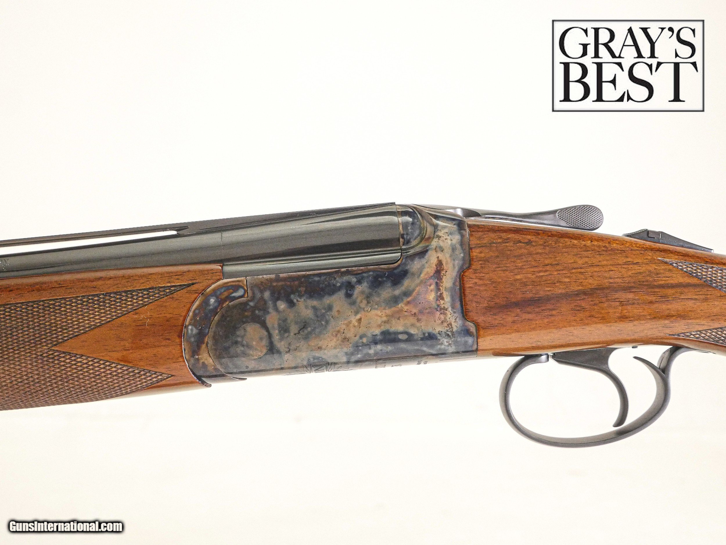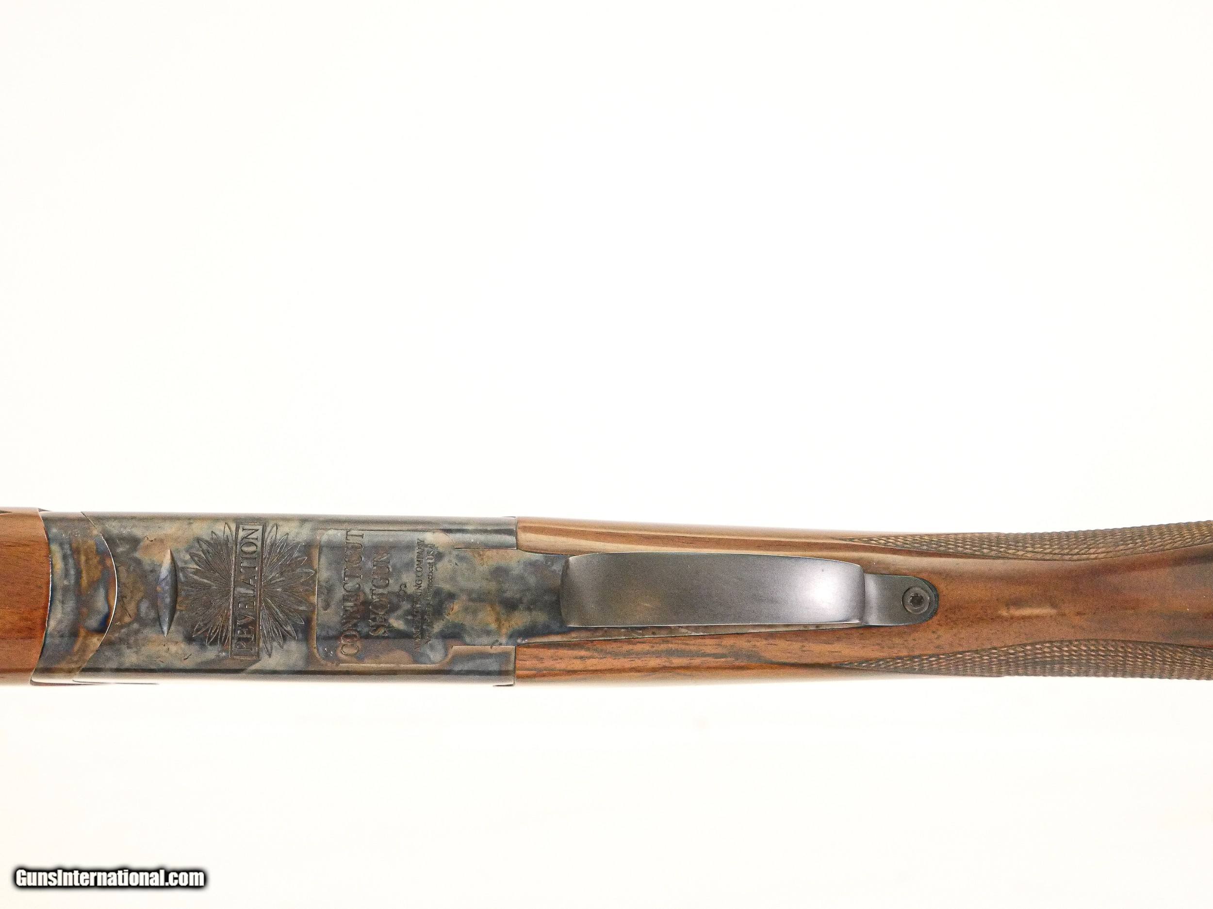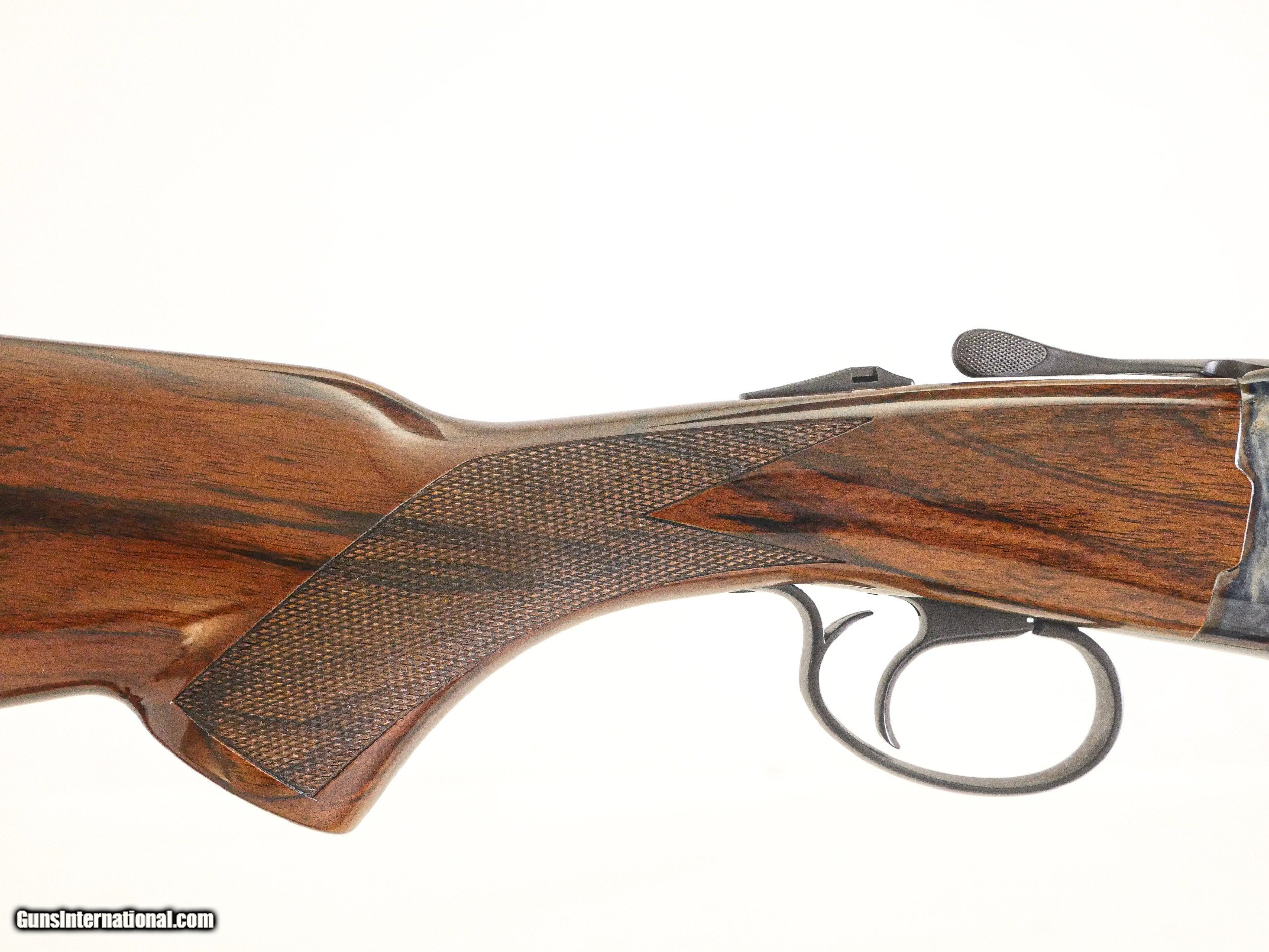 Description: CSMC - Revelation, 20ga. 28” Barrels with 5 Screw-in Choke Tubes (SK,IC,M,IM,F). Standard walnut pistol grip stock, high gloss finish, single selective trigger, automatic ejectors, automatic safety, vent rib, 3” chambers, spectacular bone & charcoal case coloring, excellent configuration. 100% brand new & unfired, each gun is completely handmade in the USA by the finest gunsmiths in the world, available for immediate delivery. Inv: 50145 5 lbs. 14 oz. 14 1/2” x 1 1/2” x 2 3/8” $1,995.00 SOLD |