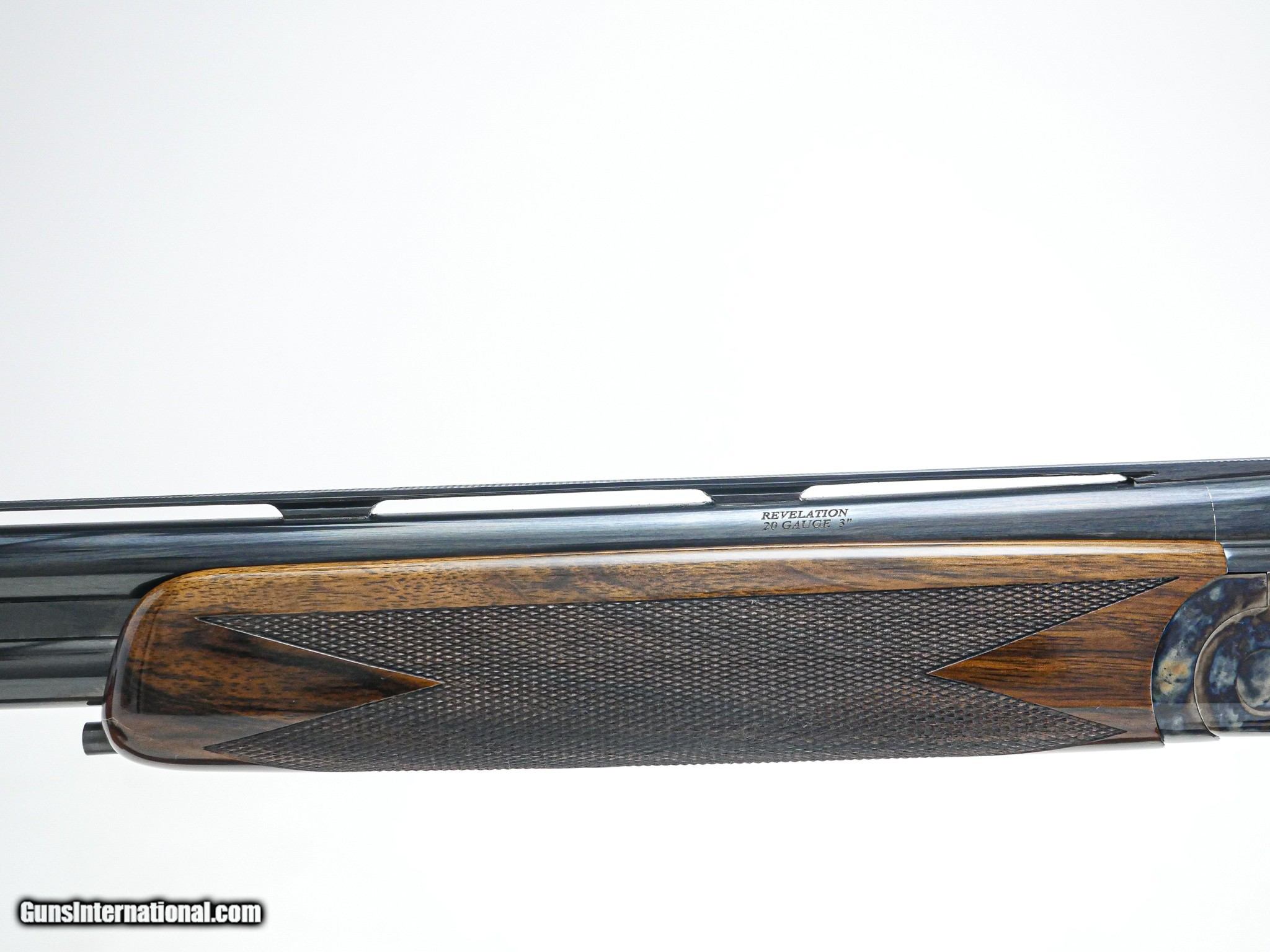 Description: CSMC - Revelation, 20ga. 28" Barrels with 5 Screw-in Choke Tubes (SK,IC,M,IM,F). Nicely figured standard walnut, straight grip stock, high gloss finish, single selective trigger, automatic ejectors, automatic safety, vent rib, 3” chambers, spectacular bone & charcoal case coloring, excellent configuration.100% brand new & unfired, each gun is completely handmade in the USA by the finest gunsmiths in the world, recipient of the 2019 Gray’s Best, available for immediate delivery. Inv: 47847 5 lbs. 14 oz. 14 ½” x 1 ½” x 2 ¼” $1,995.00 Shipping to lower 48: $35.00 SOLD |