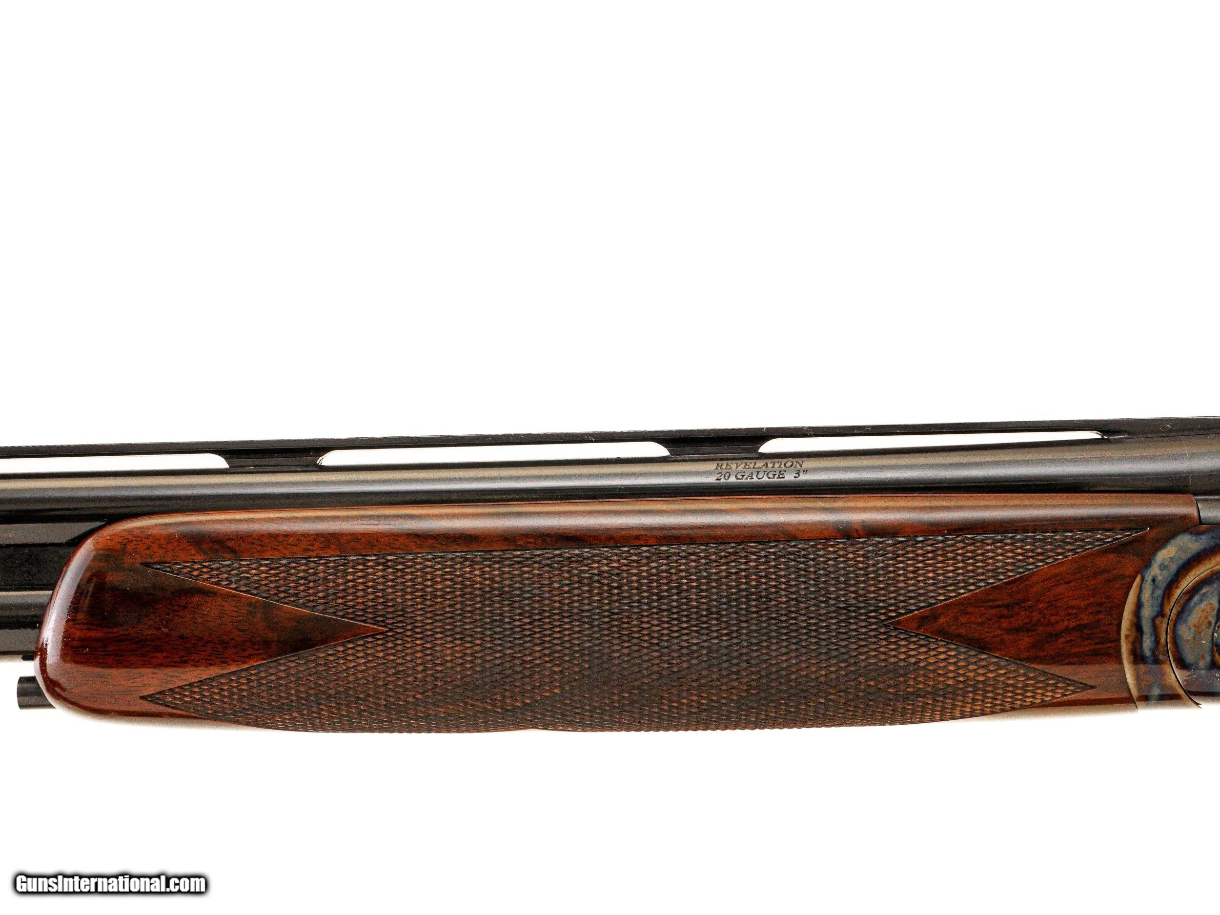 Description: CSMC - Revelation, 20ga. 28" Barrels with 5 Screw-in Choke Tubes (SK,IC,M,IM,F). Deluxe walnut straight grip stock, high gloss finish, single selective trigger, automatic ejectors, automatic safety, vent rib, 3" chambers, spectacular bone & charcoal case coloring, excellent configuration. 100% brand new & unfired, available for immediate delivery. Inv: 50290 6 lbs. 0 oz. 14 1/2" x 1 1/2" x 2 1/4" $2,800.00 Shipping to lower 48: $35.00 SOLD |