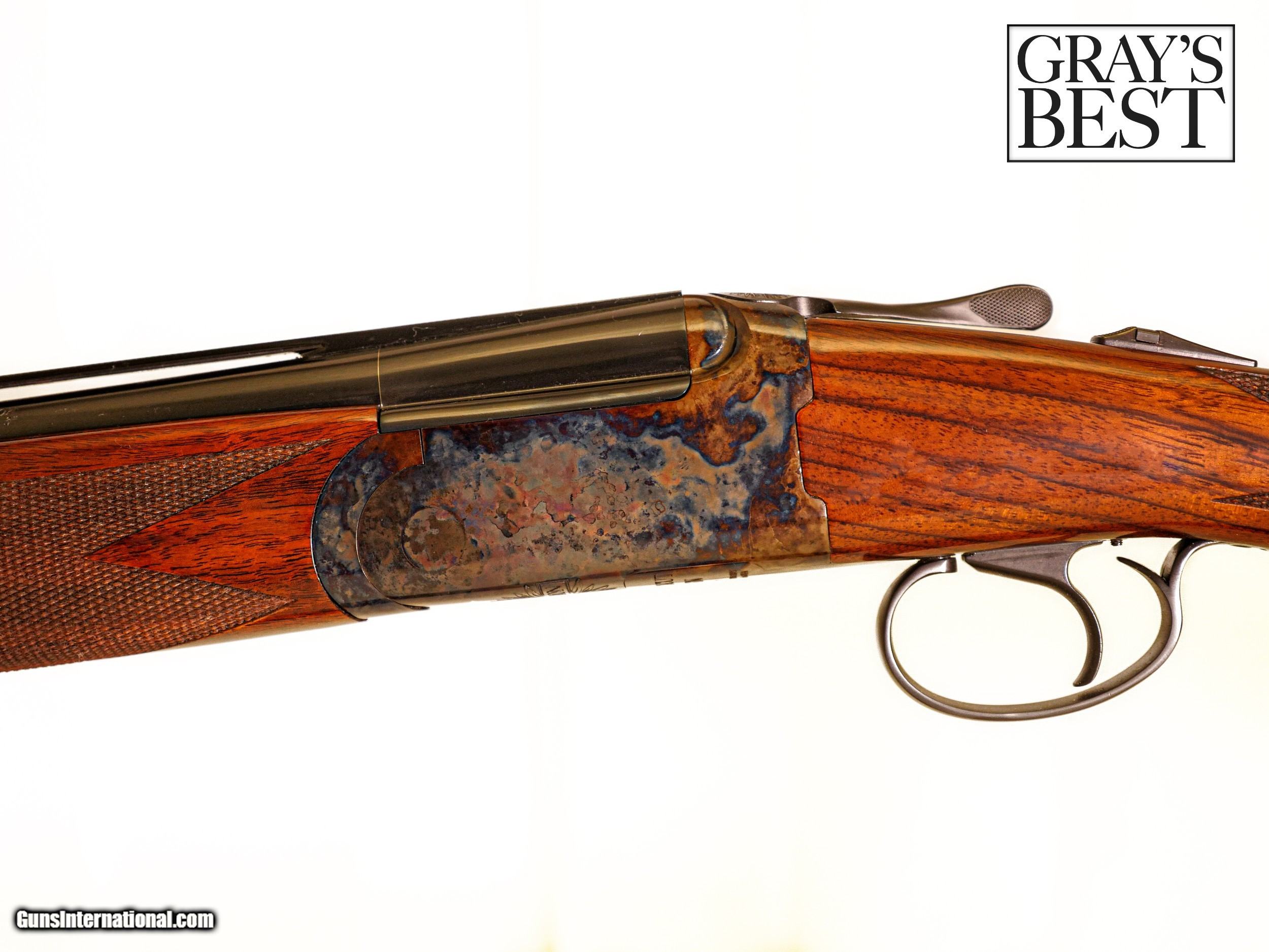 Description: Revelation - 20ga. 28" Barrels with 5 Screw-in Choke Tubes (SK,IC,M,IM,F). Beautiful deluxe Turkish wood, pistol grip, factory serrated butt plate, high gloss finish, single selective trigger, automatic ejectors, automatic safety, vent rib, 3” chambers, spectacular bone & charcoal case coloring, excellent configuration.100% brand new & unfired, handmade in the USA by the finest gunsmiths in the world available for immediate delivery. Inv: 51321 6 lbs. 6 oz. 14 5/8” x 1 ½” x 2 3/8" $2,750.00 Shipping to lower 48: $35.00 SOLD |