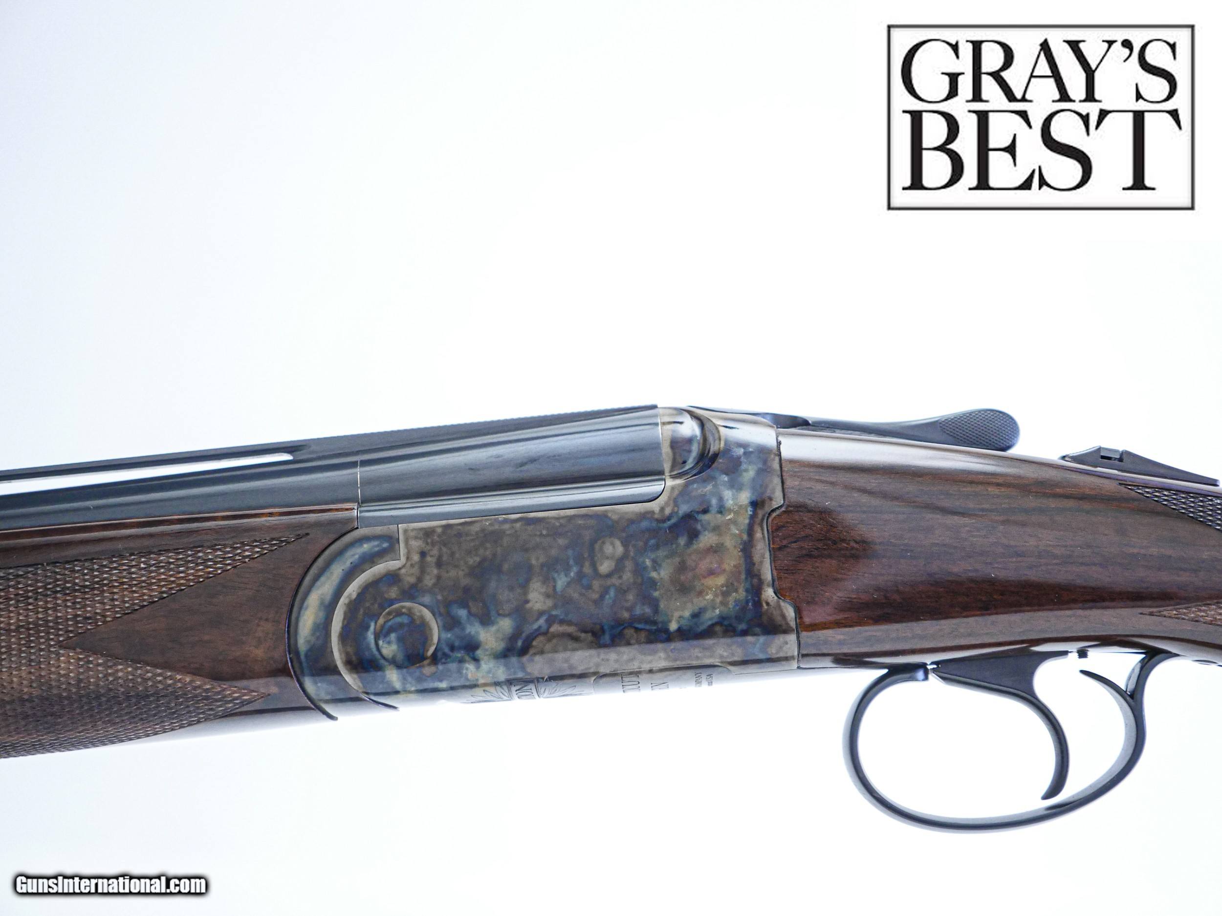 Description: CSMC - Revelation, 20ga. 30” Barrels with 5 Screw-in Choke Tubes (SK,IC,M,IM,F). Standard Walnut, pistol grip stock, high gloss finish, single selective trigger, automatic ejectors, automatic safety, vent rib, 3” chambers, spectacular bone & charcoal case coloring, excellent configuration. 100% brand new & unfired, each gun is completely handmade in the USA by the finest gunsmiths in the world, available for immediate delivery. Inv: 46512 6 lbs. 4 oz. 14 1/2” x 1 3/8” x 2 3/8” $1,995.00 SOLD |