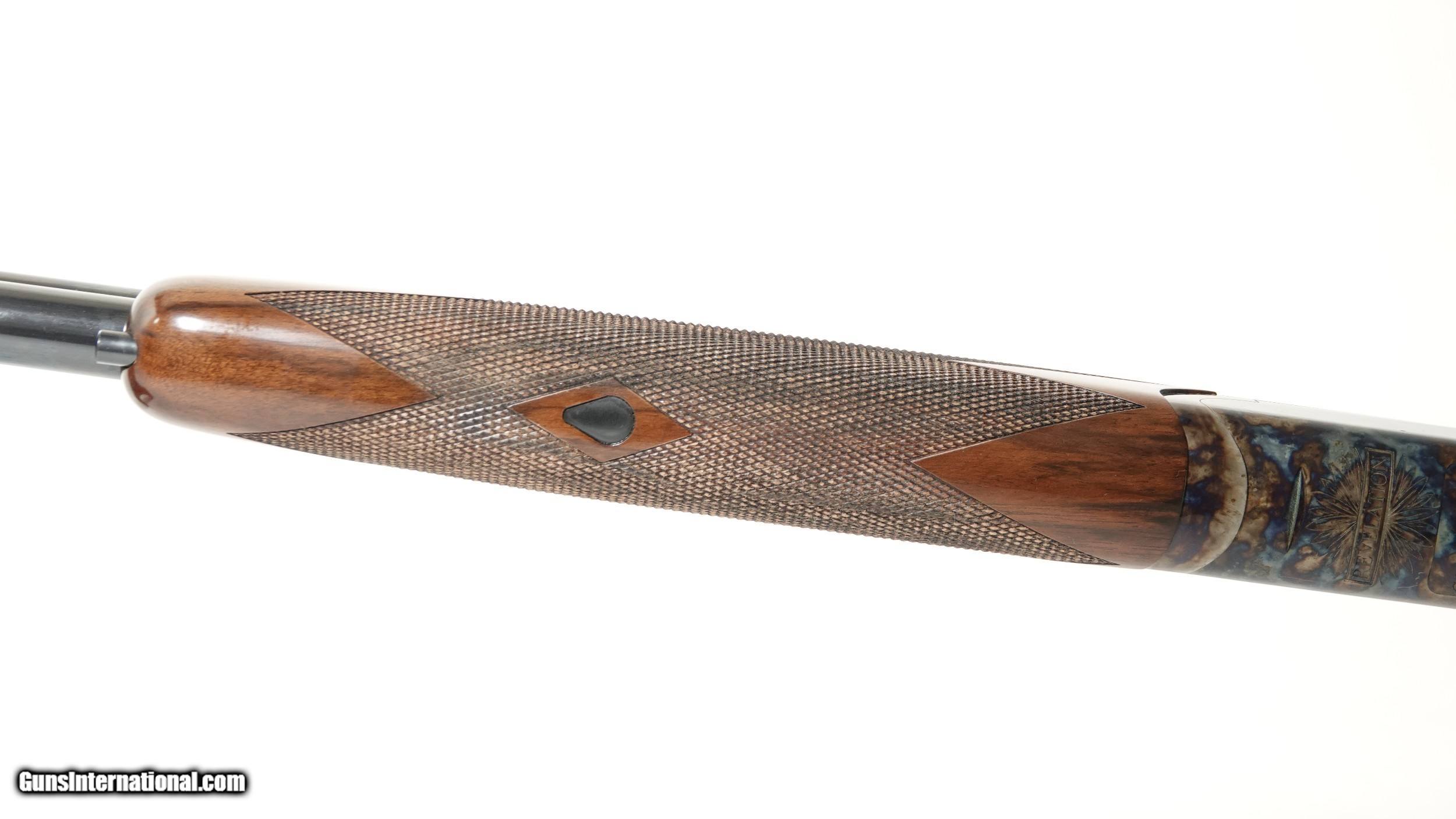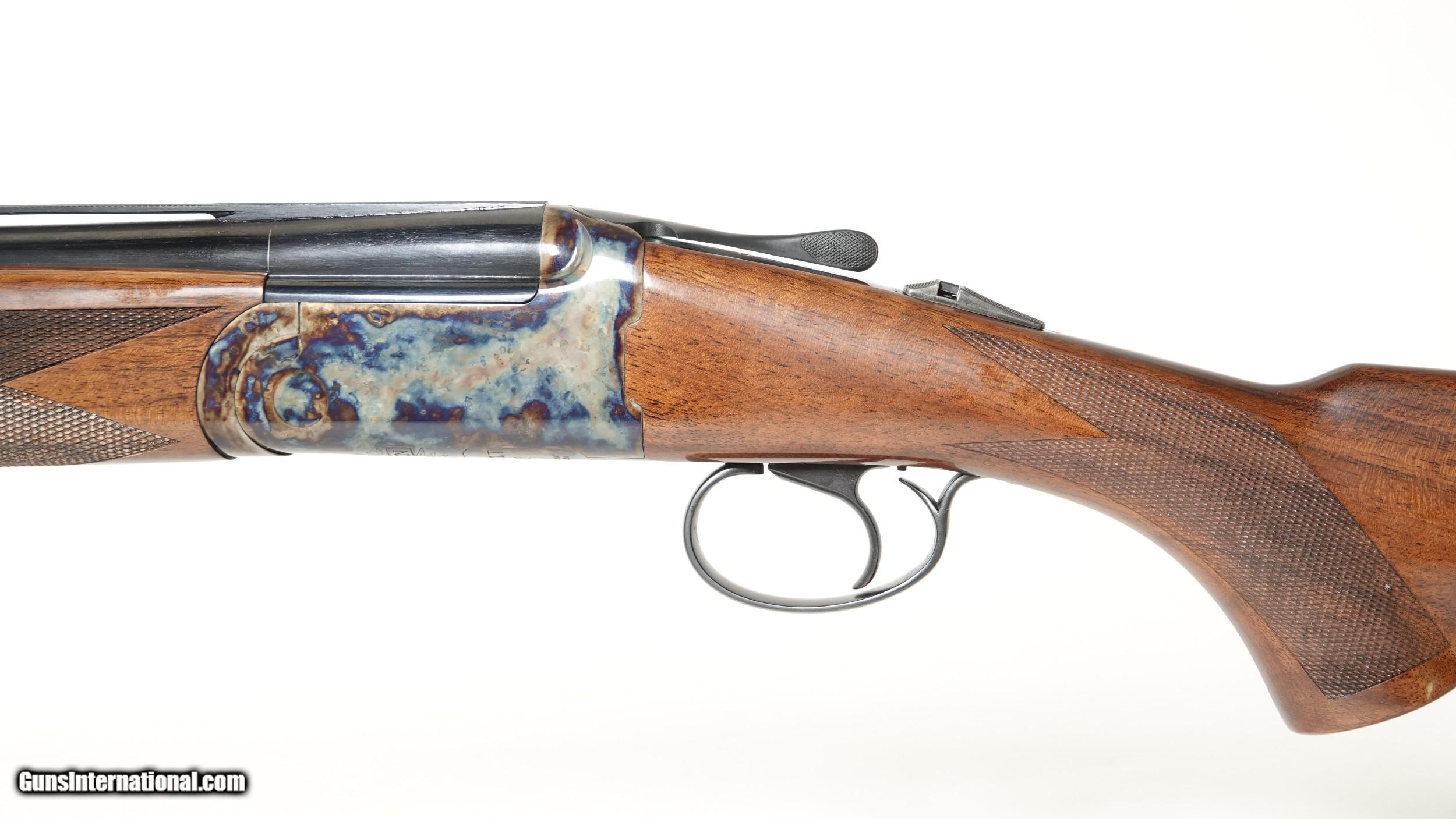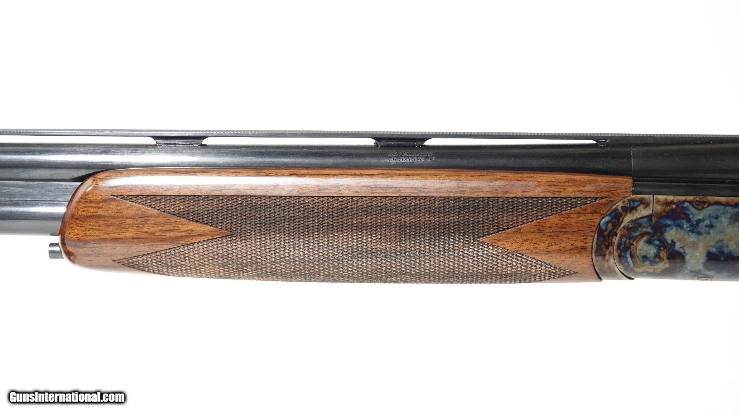 Description: CSMC - Revelation, 20ga. 30” Barrels with 5 Screw In Choke Tubes (SK,IC,M,IM,F). Standard Walnut, pistol grip stock, high gloss finish, single selective trigger, automatic ejectors, automatic safety, vent rib, 3” chambers, spectacular bone & charcoal case coloring, excellent configuration. 100% brand new & unfired, each gun is completely handmade in the USA by the finest gunsmiths in the world, available for immediate delivery. Inv: 46546 6 lbs. 2 oz. 14 1/2” x 1 3/8” x 2 1/2” $2,450.00 Shipping to lower 48: $35.00 SOLD |
