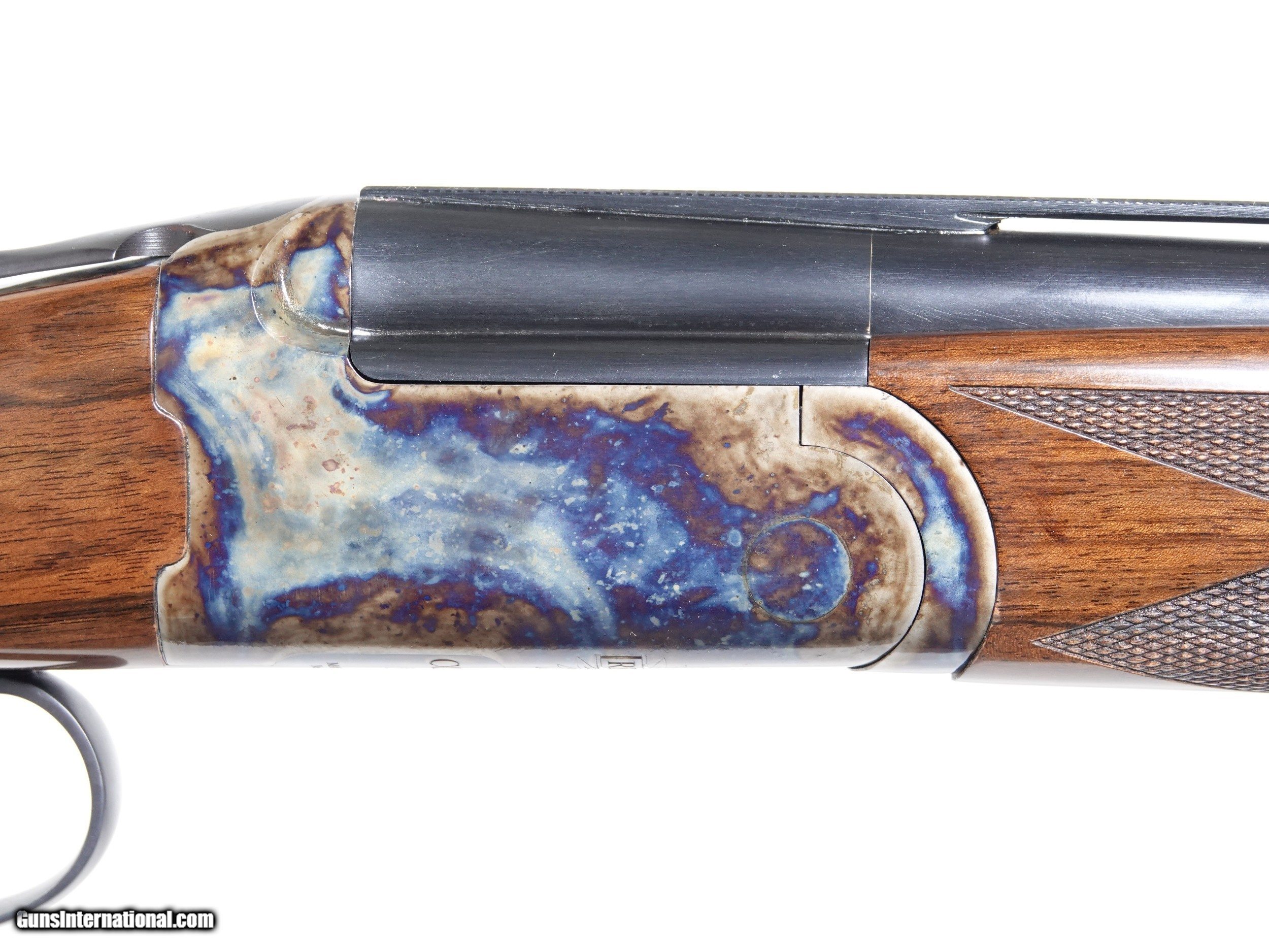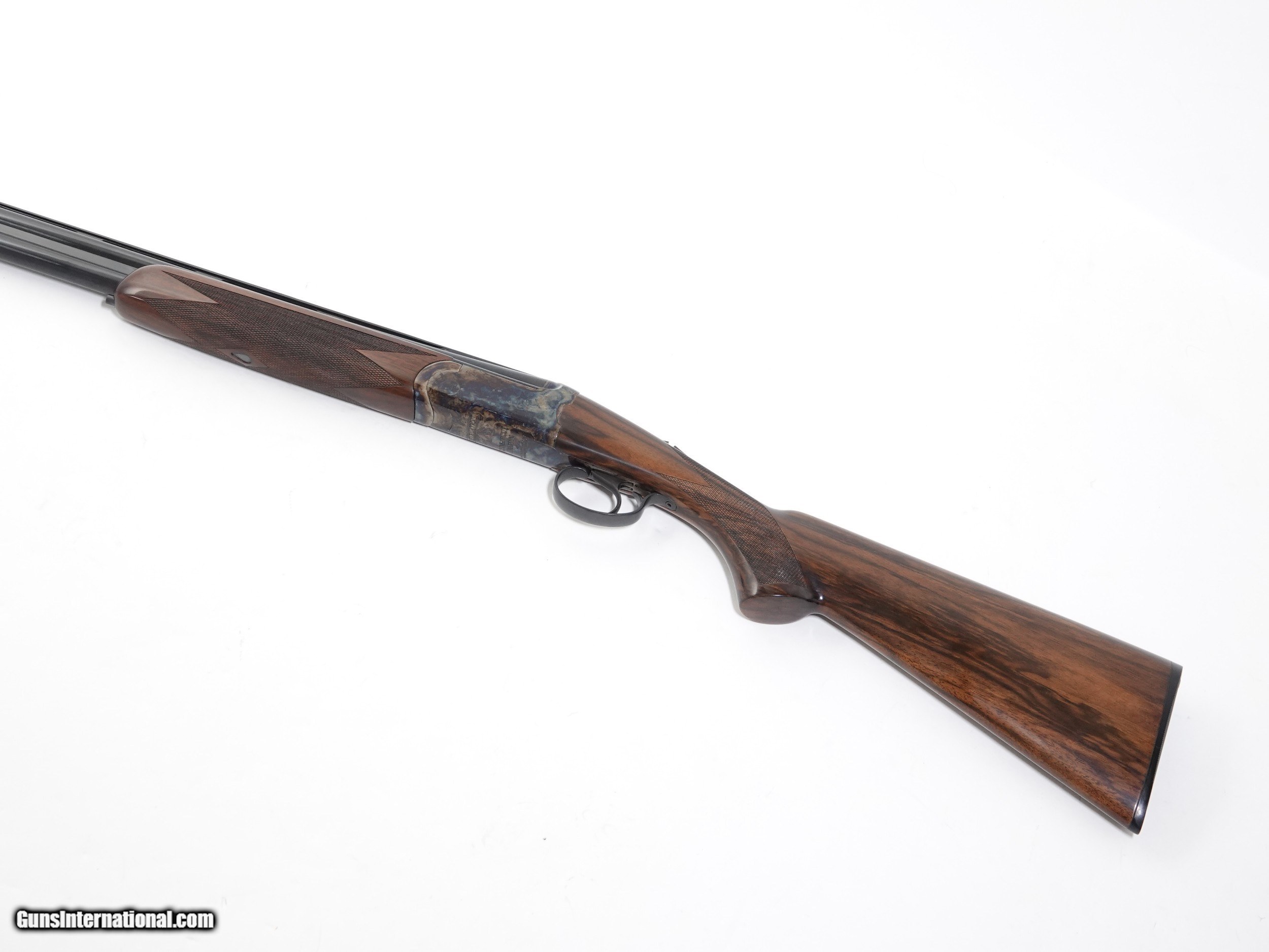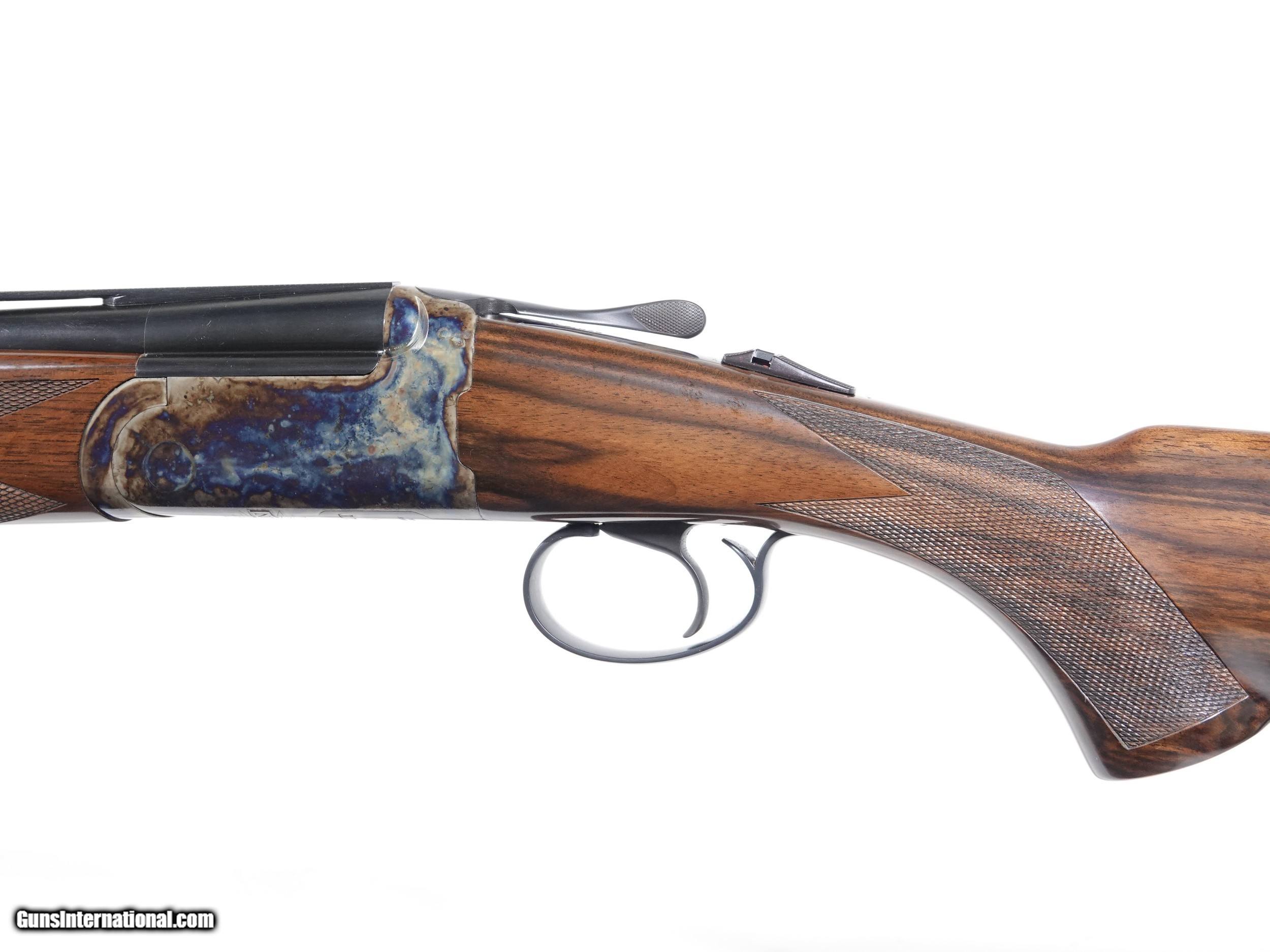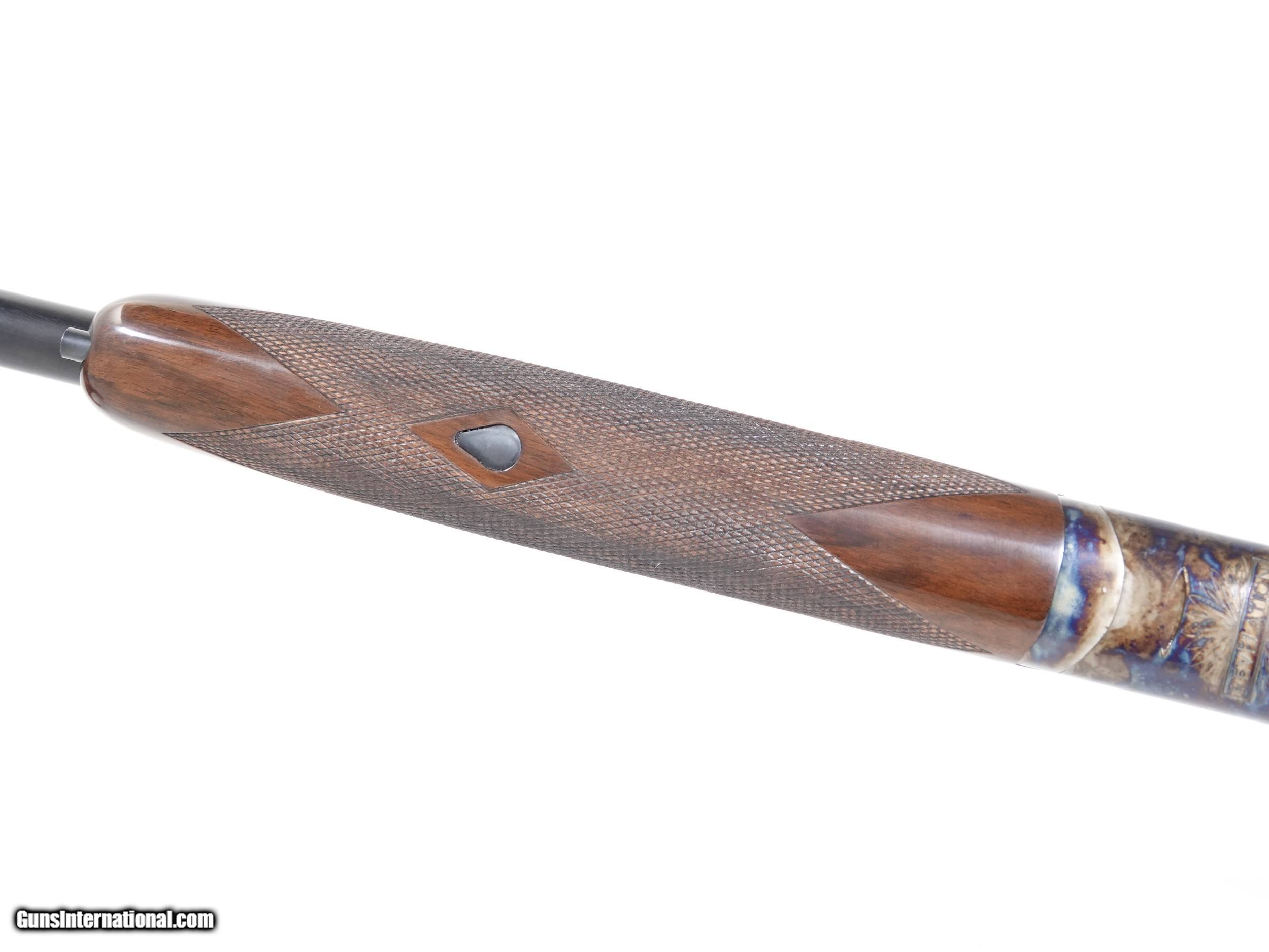 Description: Revelation - 20ga. 30” barrels with 5 screw in choke tubes (SK,IC,M,IM,F) Standard Walnut, pistol grip stock, high gloss finish, single selective trigger, automatic ejectors, automatic safety, vent rib, 3” chambers, spectacular bone & charcoal case coloring, excellent configuration. 100% brand new & unfired, each gun is completely handmade in the USA by the finest gunsmiths in the world, available for immediate delivery. Inv# 46788 6 lbs. 6 oz. 14 1/2” x 1 3/8” x 2 1/2” $1,995.00 SOLD |