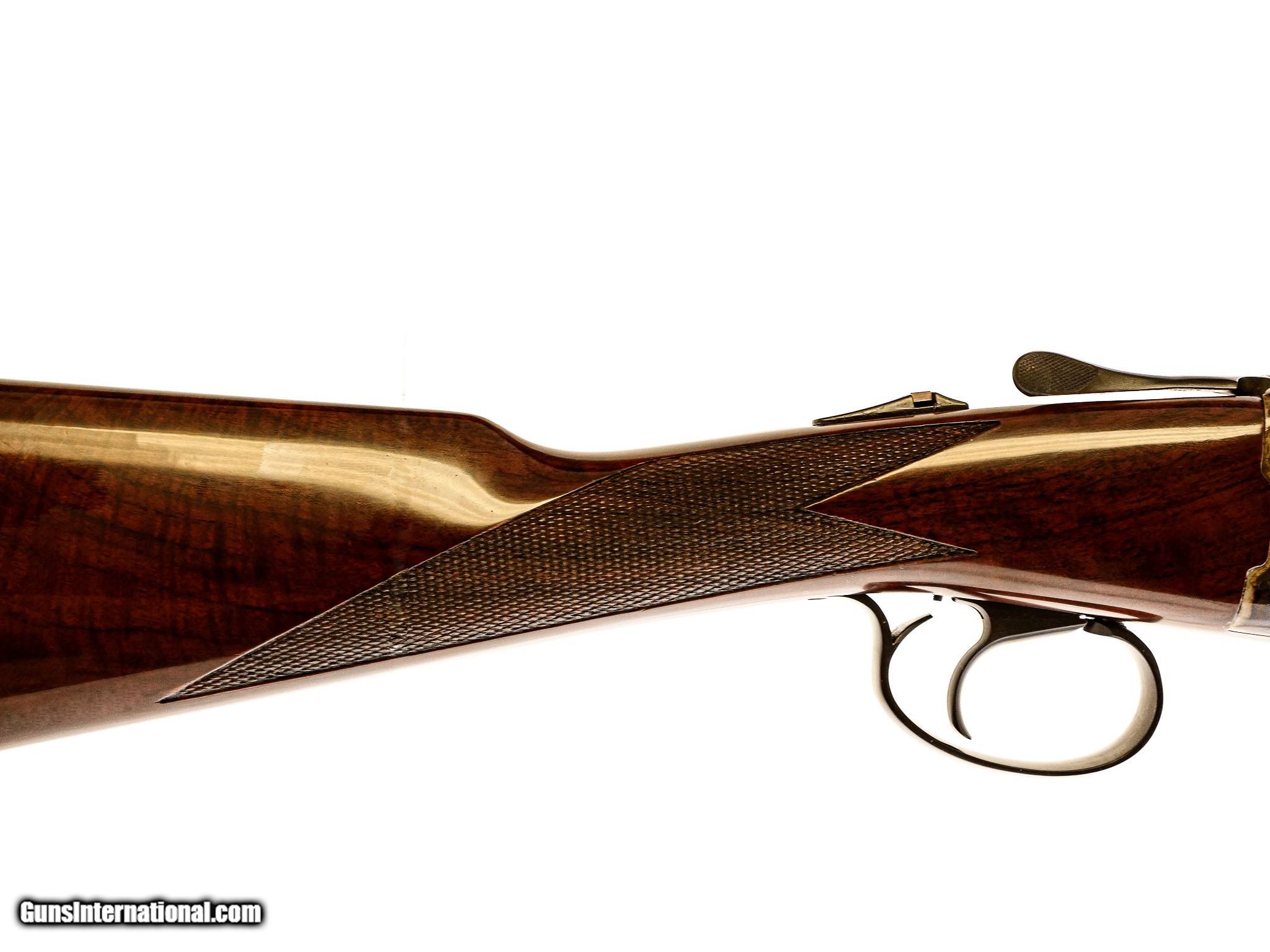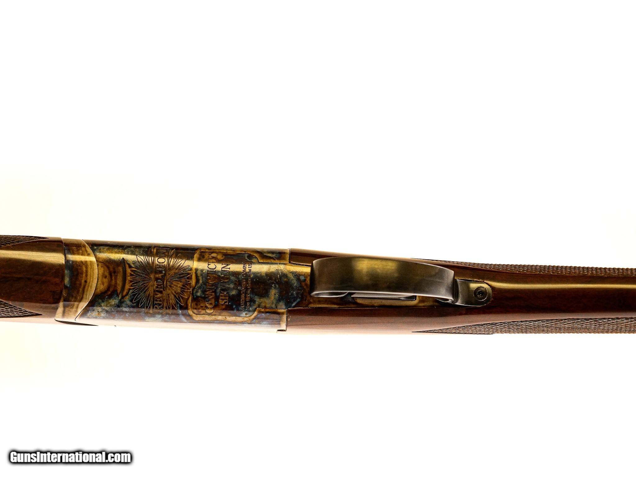 Description: CSMC - Revelation, 20ga. 30" Barrels with 5 Screw-in Choke Tubes (SK,IC,M,IM,F). Highly figured deluxe full feathercrotch American black walnut straight grip stock, factory serrated butt plate, high gloss finish, single selective trigger, automatic ejectors, automatic safety, vent rib, 3” chambers, spectacular bone & charcoal case coloring, excellent configuration.100% brand new & unfired, handmade in the USA by the finest gunsmiths in the world available for immediate delivery. Inv: 63217 5 lbs. 12 oz. 14 ½” x 1 ½” x 2 3/8” $2,750.00 Shipping to lower 48: $35.00 SOLD |