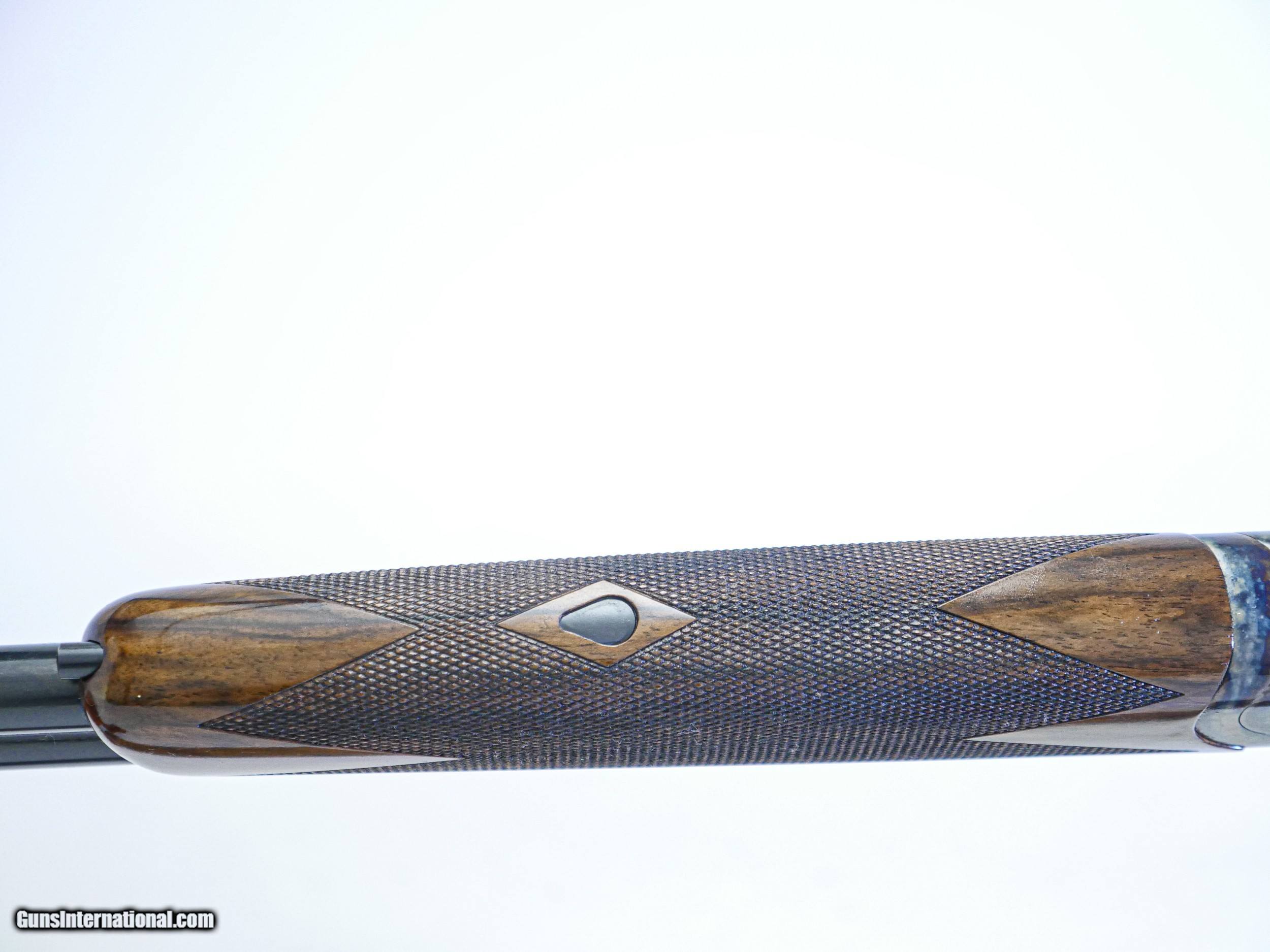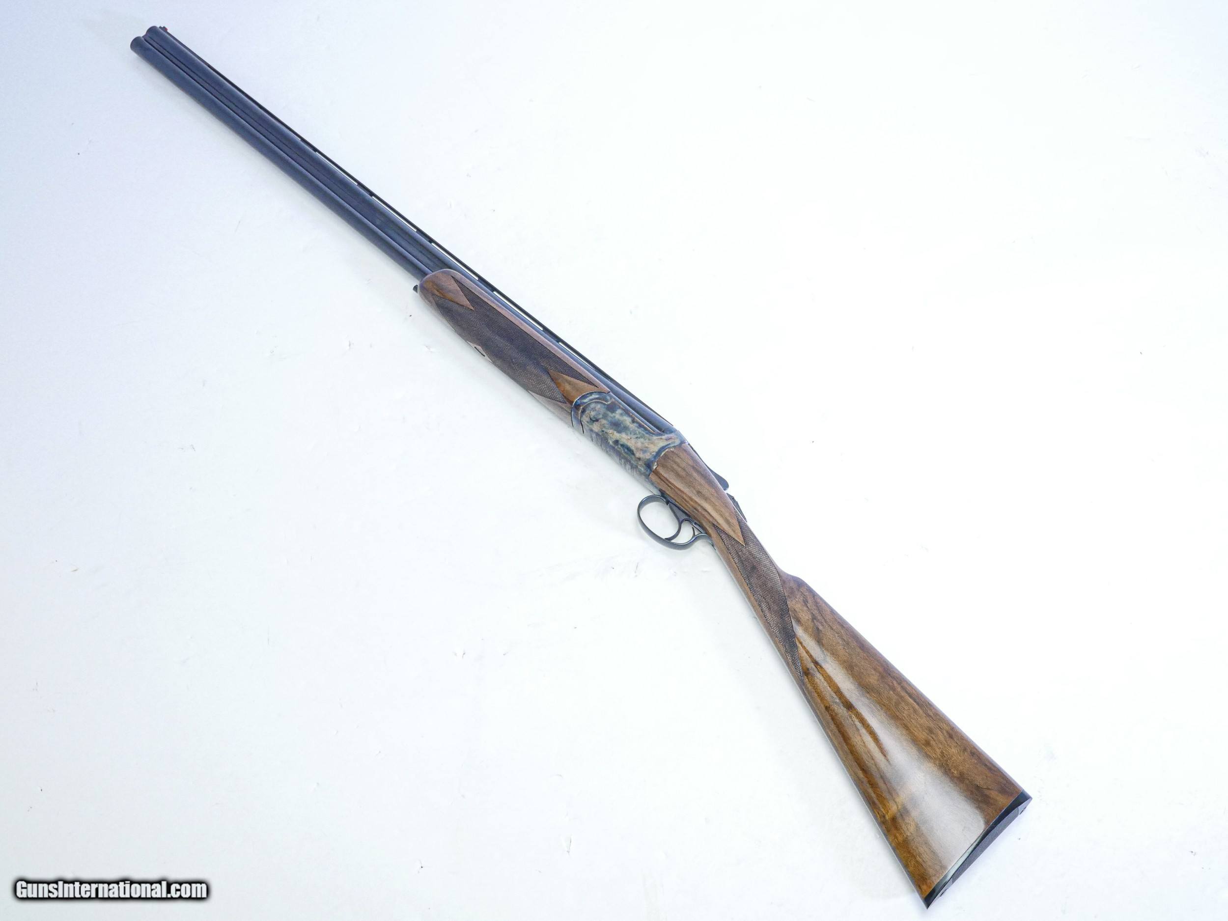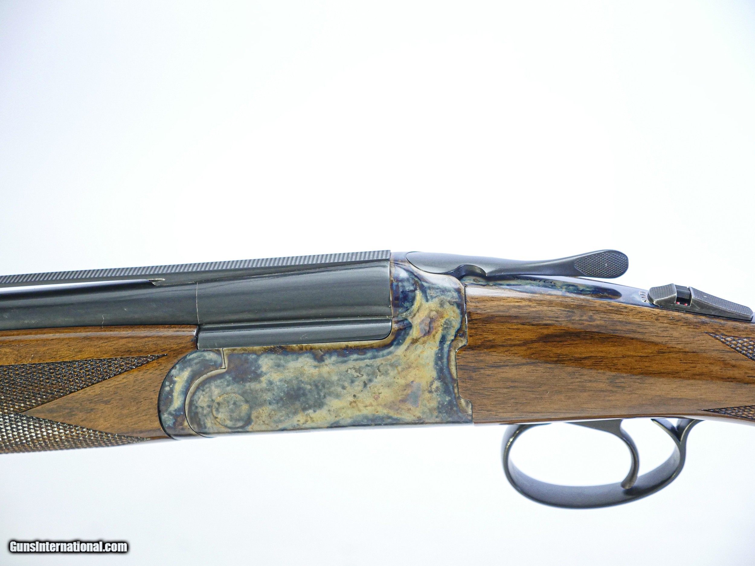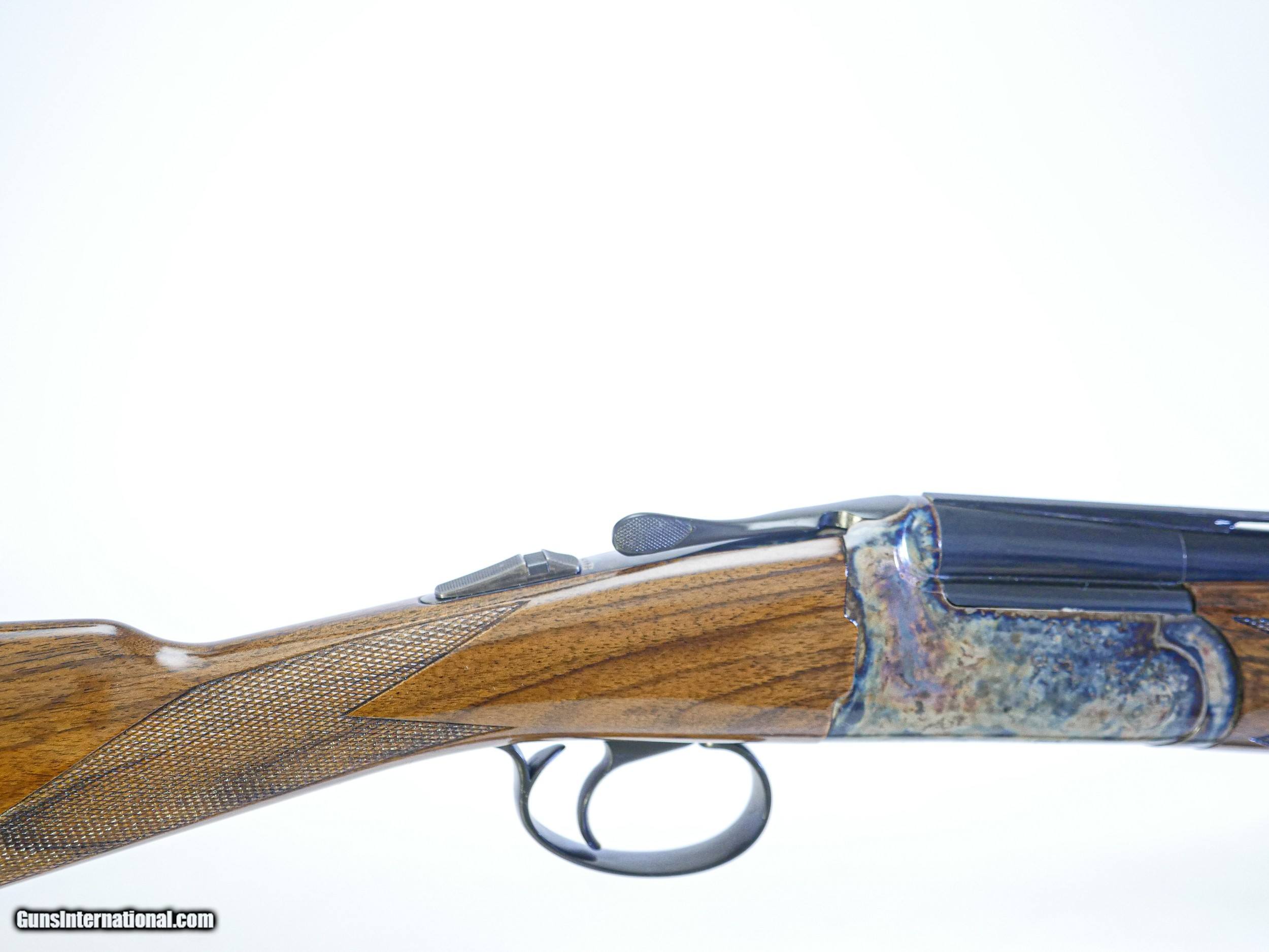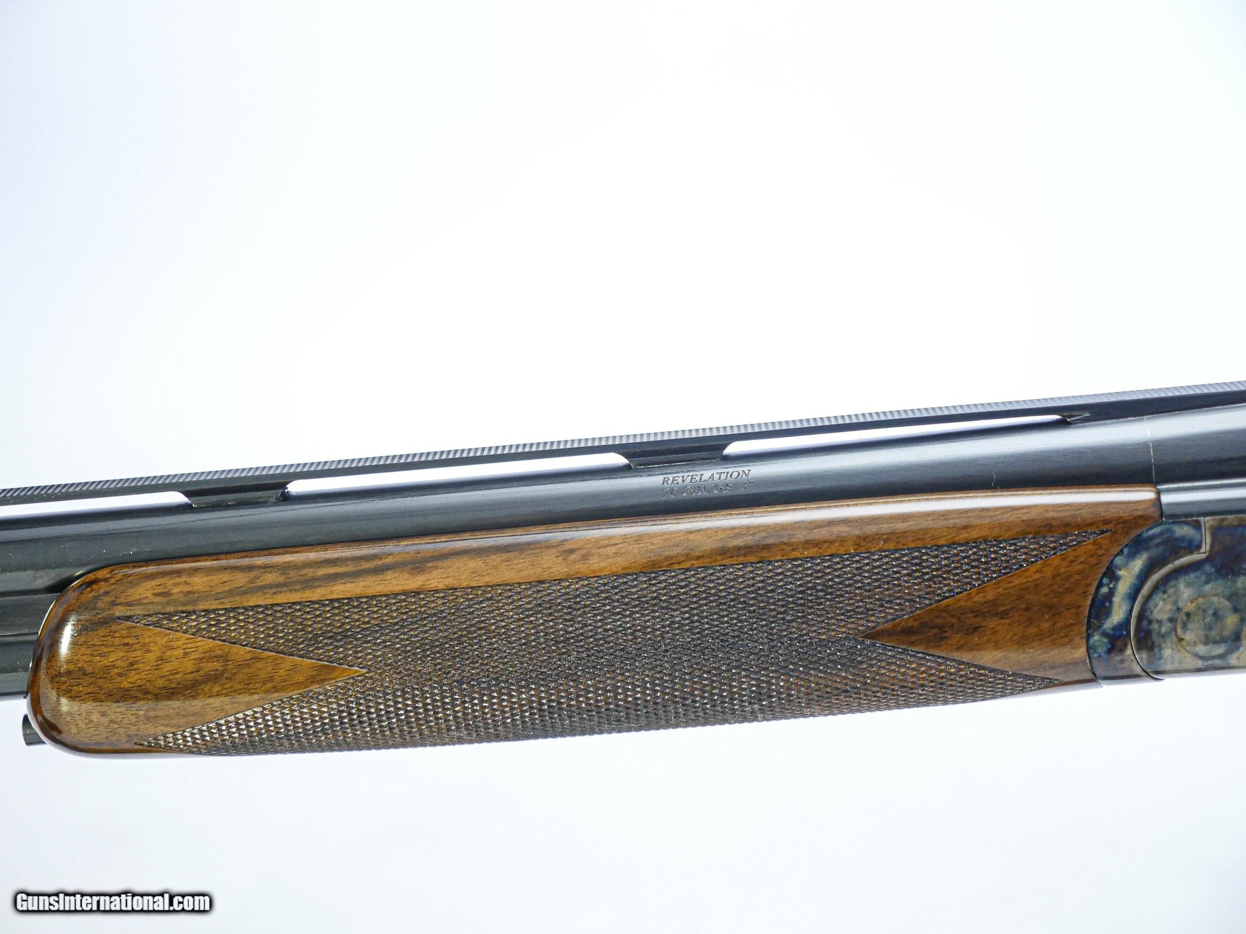 Description: Revelation - 20ga. 30" Barrels with 5 Screw-in Choke Tubes. Nicely figured Standard Walnut, pistol grip stock, high gloss finish, single selective trigger, automatic ejectors, automatic safety, vent rib, 3” chambers, spectacular bone & charcoal case coloring, excellent configuration. 100% brand new & unfired, each gun is completely handmade in the USA by the finest gunsmiths in the world, available for immediate delivery. Inv: 47020 14 3/8” x 1 ½” x 2 3/8” 6 lbs. 4 oz. $1,995.00 SOLD |