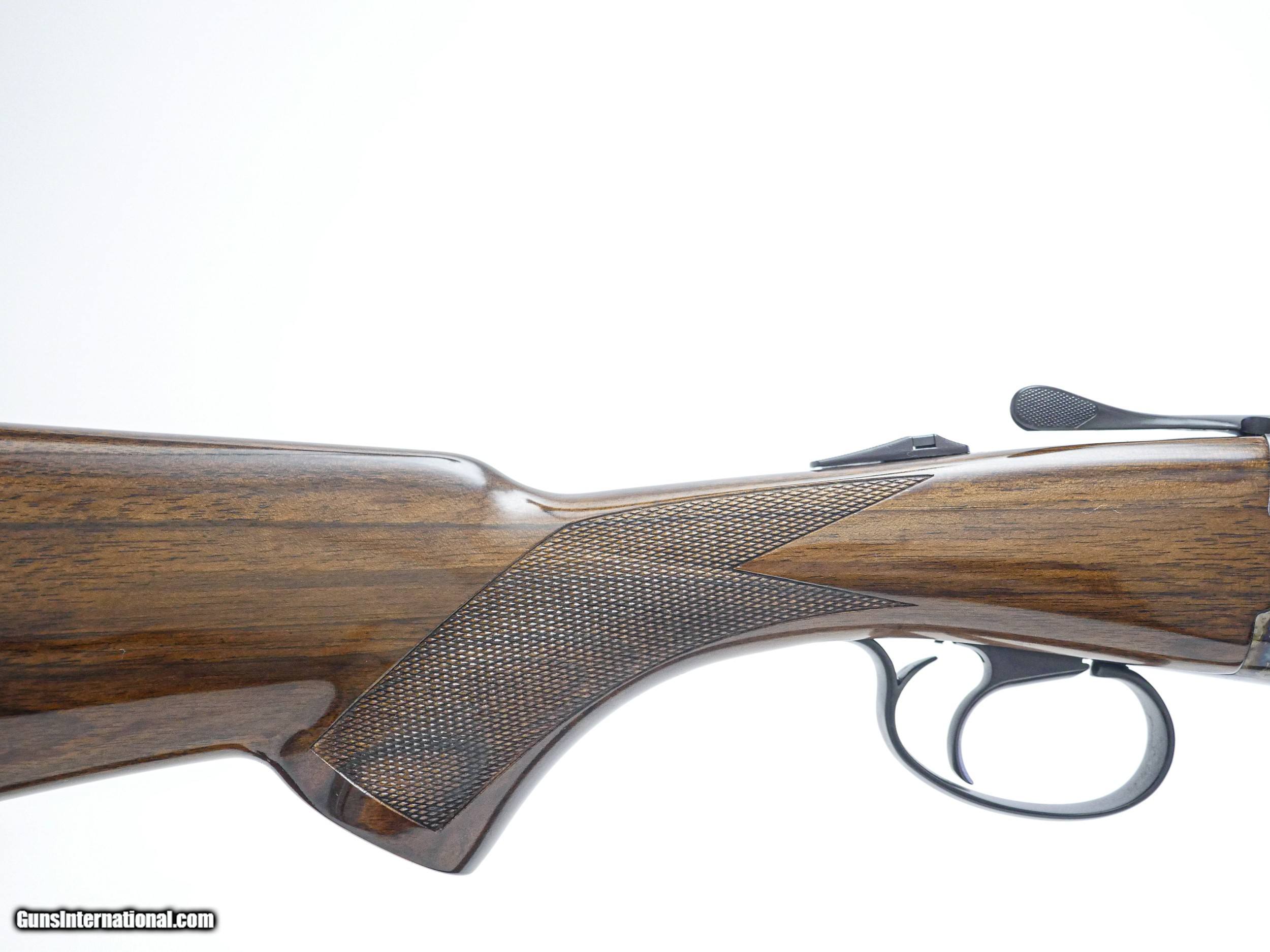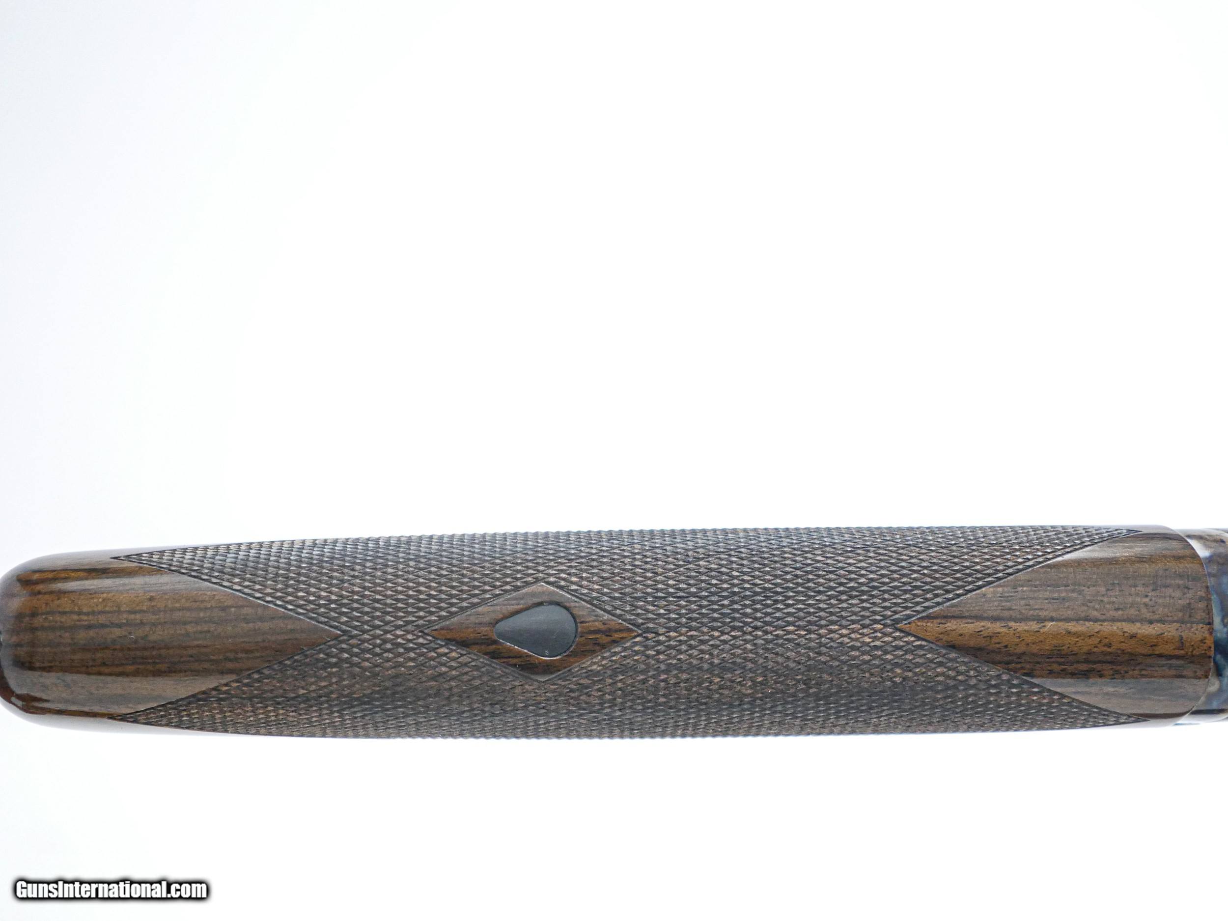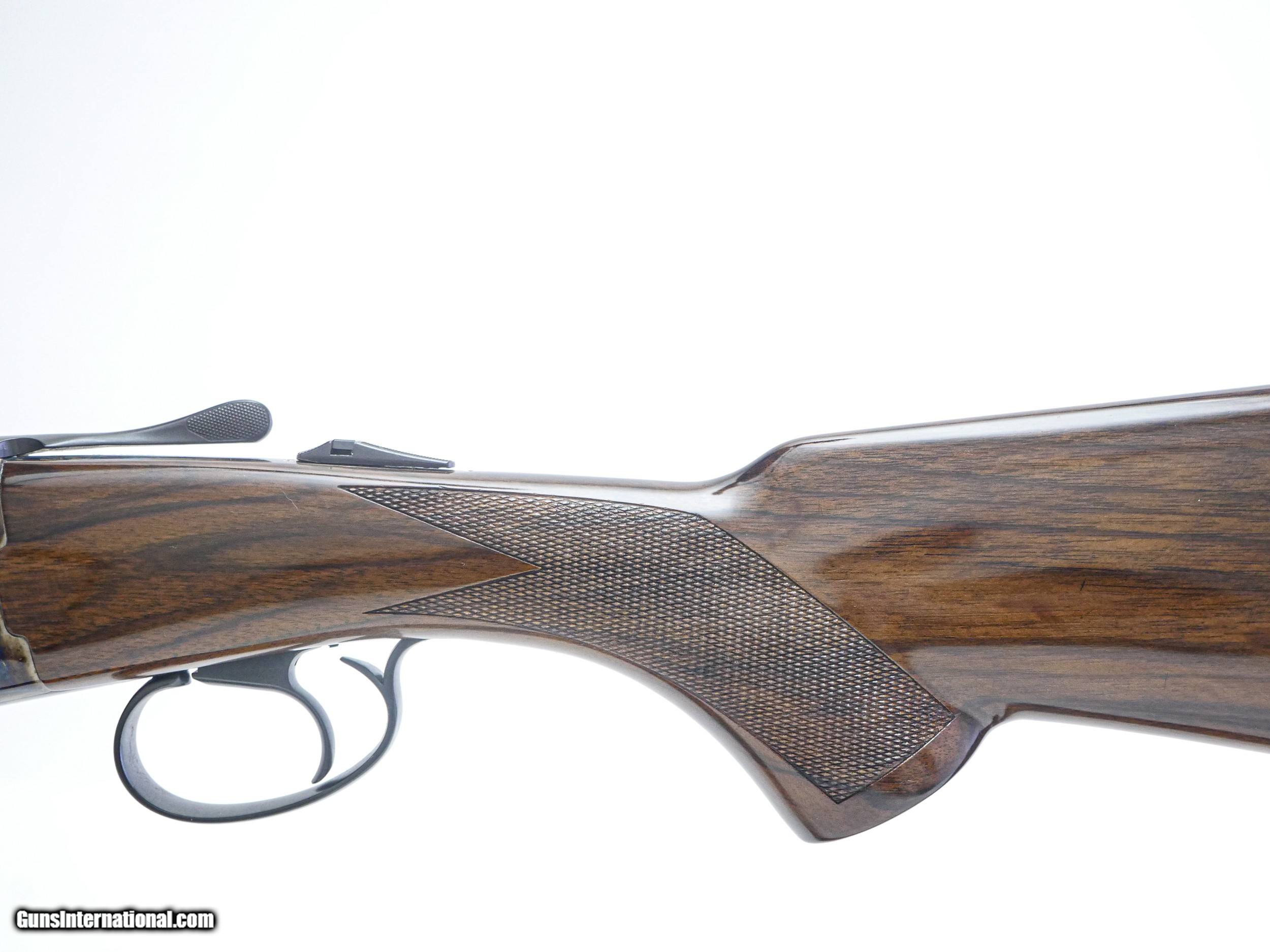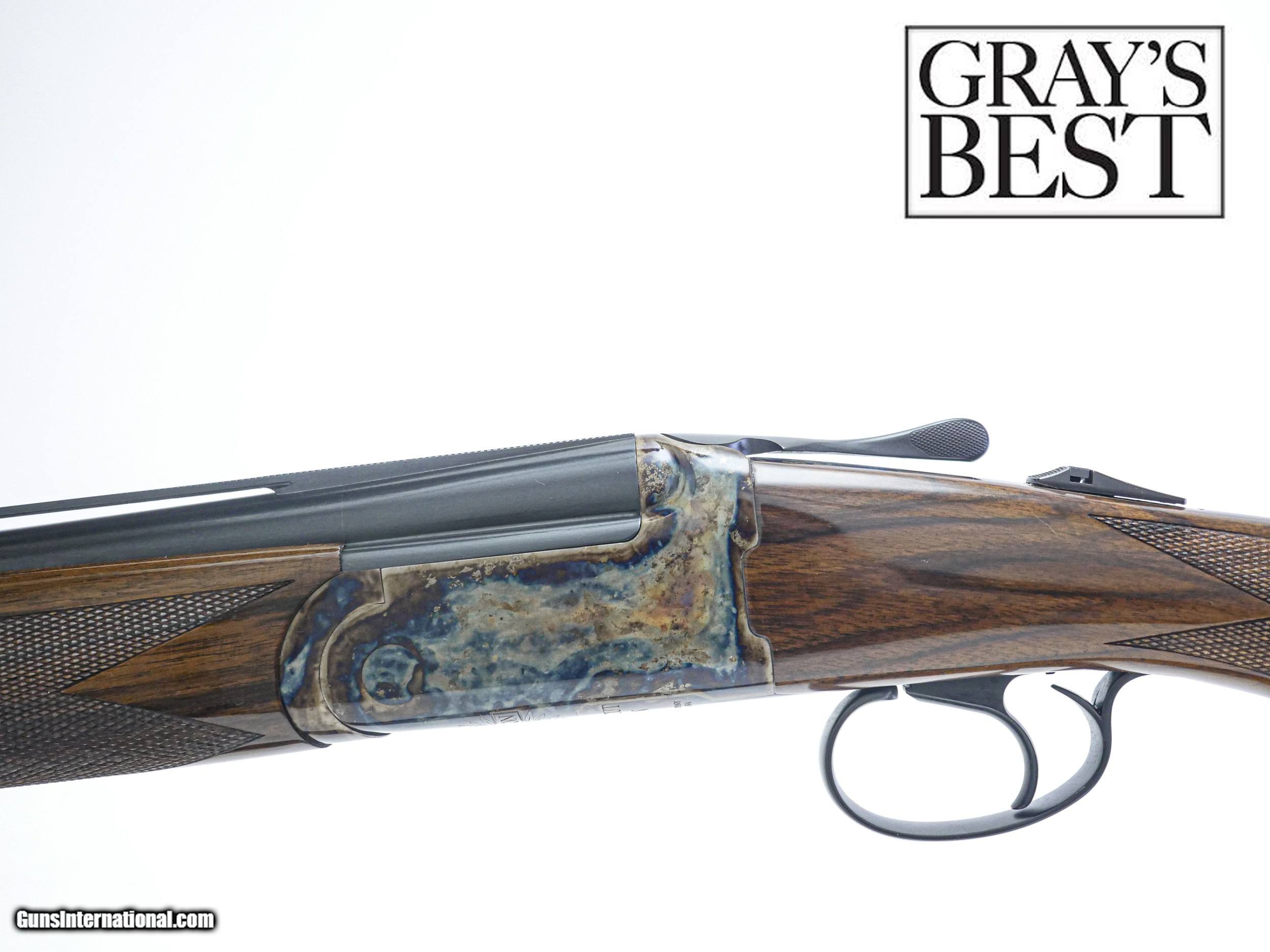 Description: Revelation - 20ga. 30" with 5 Screw-in Choke Tubes (SK,IC,M,IM,F). Standard Walnut, pistol grip stock, high gloss finish, single selective trigger, automatic ejectors, automatic safety, factory butt plate, vent rib, 3” chambers, spectacular bone & charcoal case coloring, excellent configuration. 100% brand new & unfired, each gun is completely handmade in the USA by the finest gunsmiths in the world, available for immediate delivery. Inv: 47307 6 lbs. 4 oz. 14 3/8” x 1 ½” x 2” $1,995.00 SOLD |