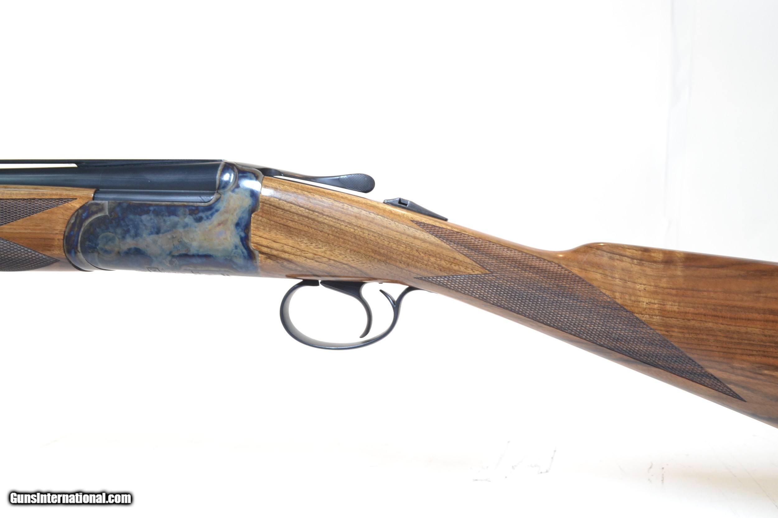 Description: CSMC - REVELATION 20g O/U ., 30” barrels, 5 screw in choke tubes (SK,IC,M,IM,F) Standard Walnut, straight stock, high gloss finish, single selective trigger, automatic ejectors, automatic safety, vent rib, 3” chambers, spectacular bone & charcoal case coloring, excellent configuration. 100% brand new & unfired, available for immediate delivery. Inv# 45052 14 1/2” x 1 3/8” x 2 1/2” 6 lb 6 oz $1,995.00 Shipping to lower 48: $35.00 SOLD |