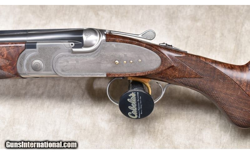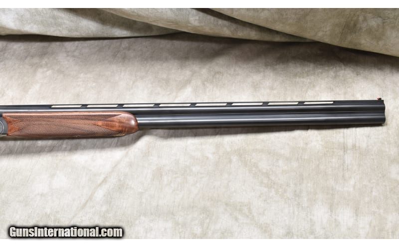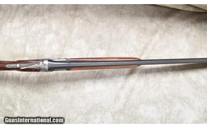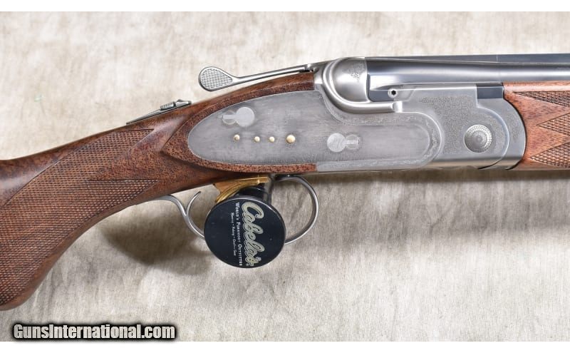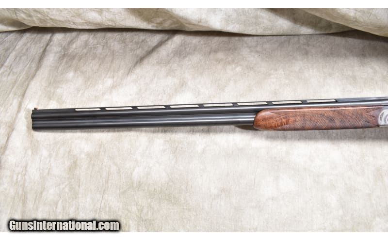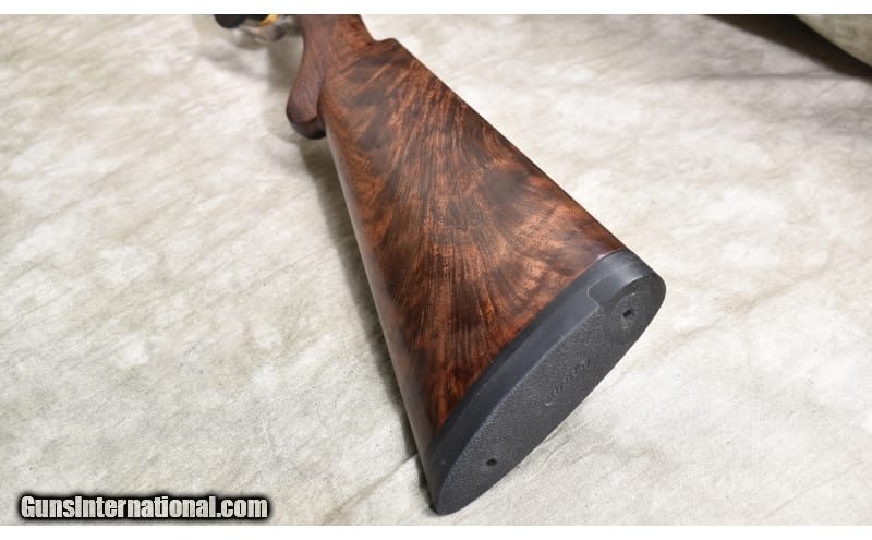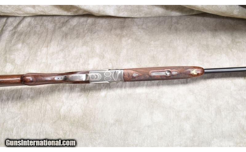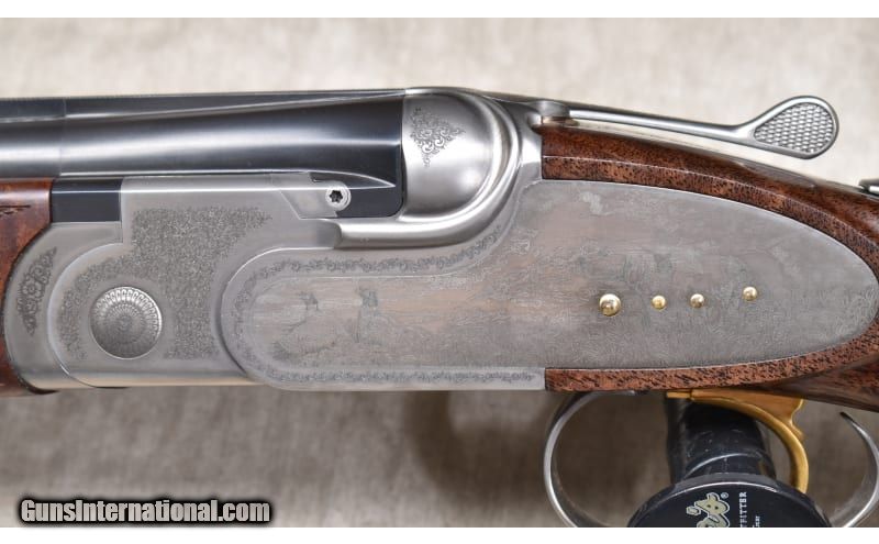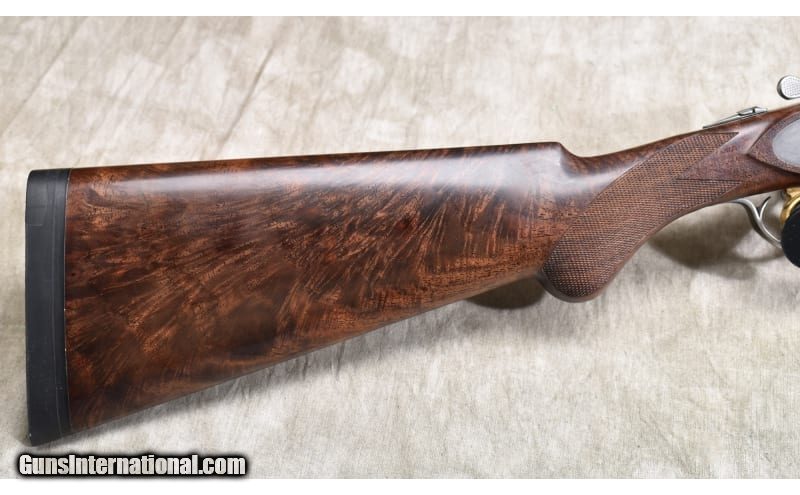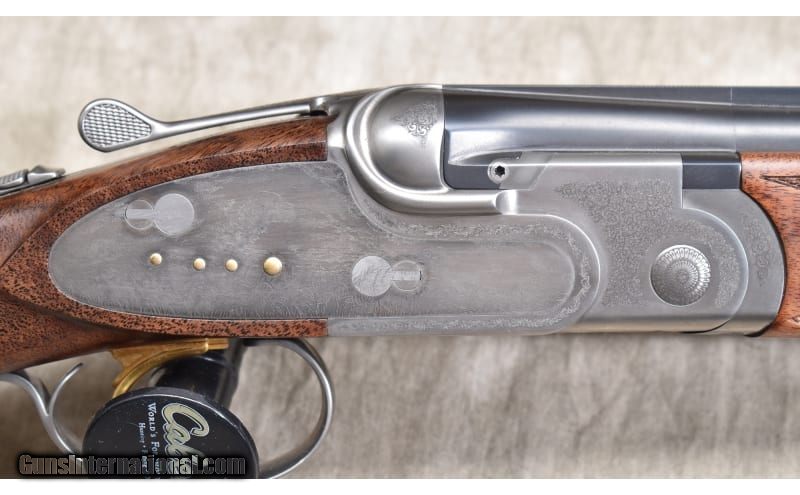 Description: Lightweight under and over upland bird gun with continental (straight) stock, ventilated rib, and soft recoil pad. The stock is better grade walnut with a dark color and lots of figure. The receiver is engraved with games scenes and Acanthus. 20 Gauge SOLD Chambers: 2 Metal Condition: ASNIB. Wood Condition: ASNIB. Bore Condition: ASNIB. Barrels: 28-inch Triggers: Factory single selective gold trigger. Stock Dimensions: LOP: 14.5 in. DOH: 1.75 in. DAMC: 2 in. Fore End: Matching checkered walnut. Butt Pad: Soft rubber pad. Weight: 6 lb - 3 oz. Sights: Ventilated rib with red bead. Chokes: Interchangeable screw-in chokes. 5 provided. Item Location: Rogers |