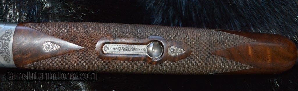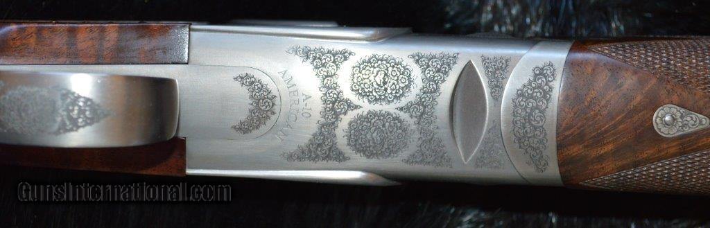 Description: Sold Pending Funds *** CSMC A10 American – 12ga., 32” barrels, TruLock chokes, beautiful Exhibition American black walnut with a pistol grip stock, hunting forend, KickEzz recoil pad, single selective trigger, automatic ejectors, automatic safety, vent rib, TruOil finish, adjustable trigger, SN 614 an early gun. SOLD Shotgun Gauge: 12 Gauge Metal Condition: 100 Wood Condition: 100 Bore Condition: 100 Barrels: 32 |