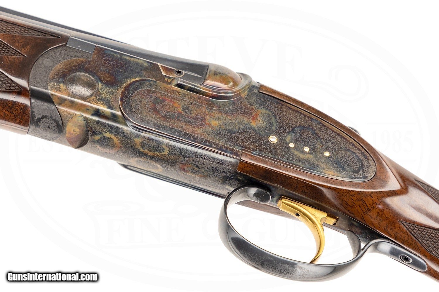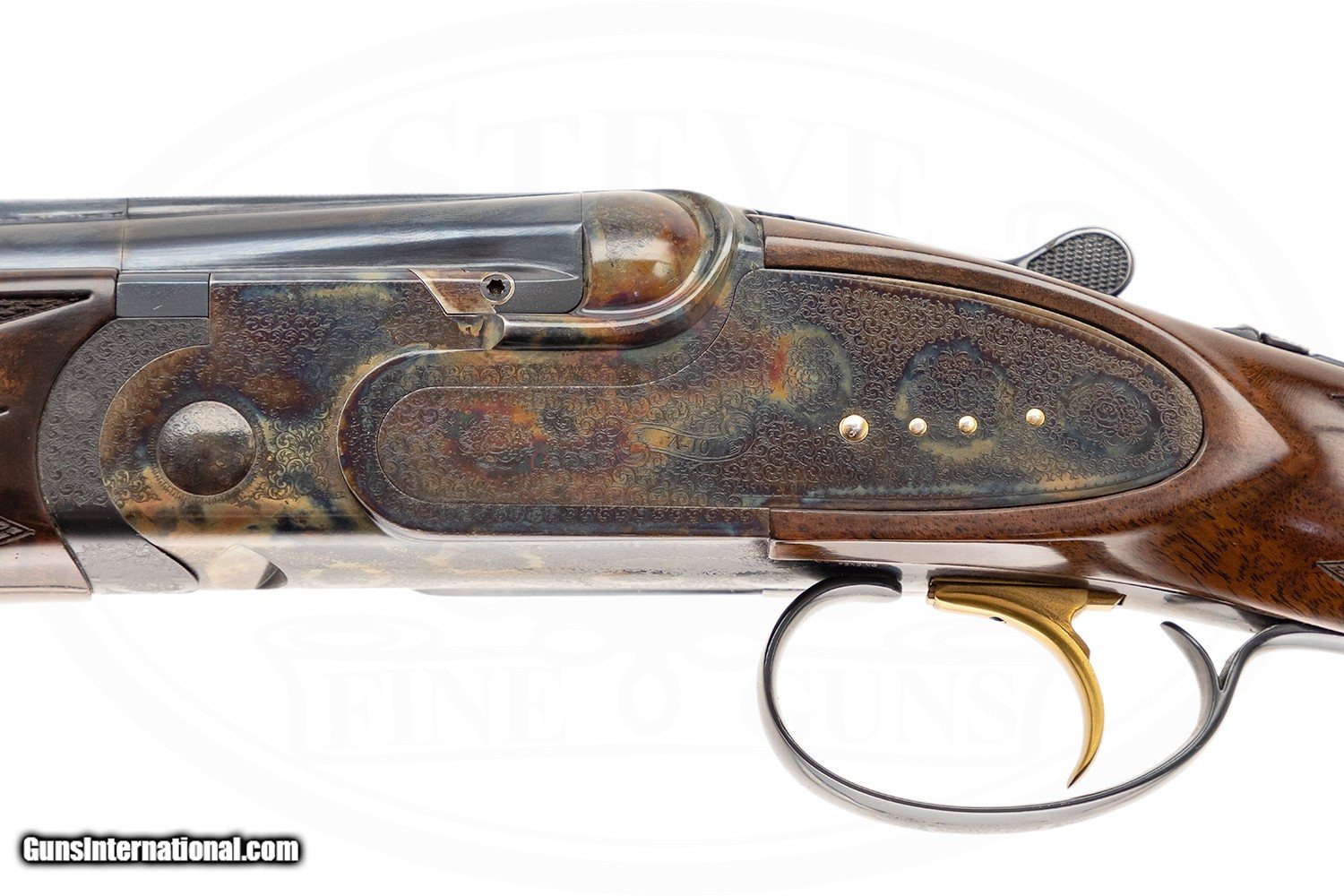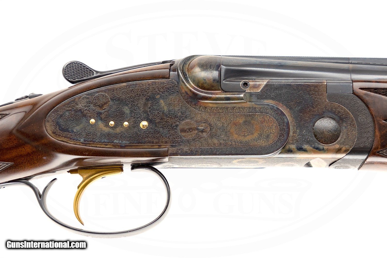 Description: SN# A10-0011XX DELUXE ROSE AND SCROLL ENGRAVING EXHIBITION WOOD 28GA - 32" VENT RIB BARRELS WITH SCREW IN CHOKES (MOD AND IC) 2 3/4" CHAMBERS 20GA - 32" VENT RIB BARRELS WITH SCREW IN CHOKES (IC AND SK1) 2 3/4" CHAMBERS SINGLE SELECTIVE TRIGGER EJECTORS FIELD FOREARM - X2 ENGLISH GRIP RECOIL PAD VERY GOOD TO EXCELLENT CONDITION WITH SOME LIGHT HANDLING - STORAGE AND USE 6LBS 2 OZ W/ 20GA BBLS 6LBS 3 OZ W/ 28GA BBLS 2" DAH 1 3/8" DAC 15" LOP NO CASE SOLD |