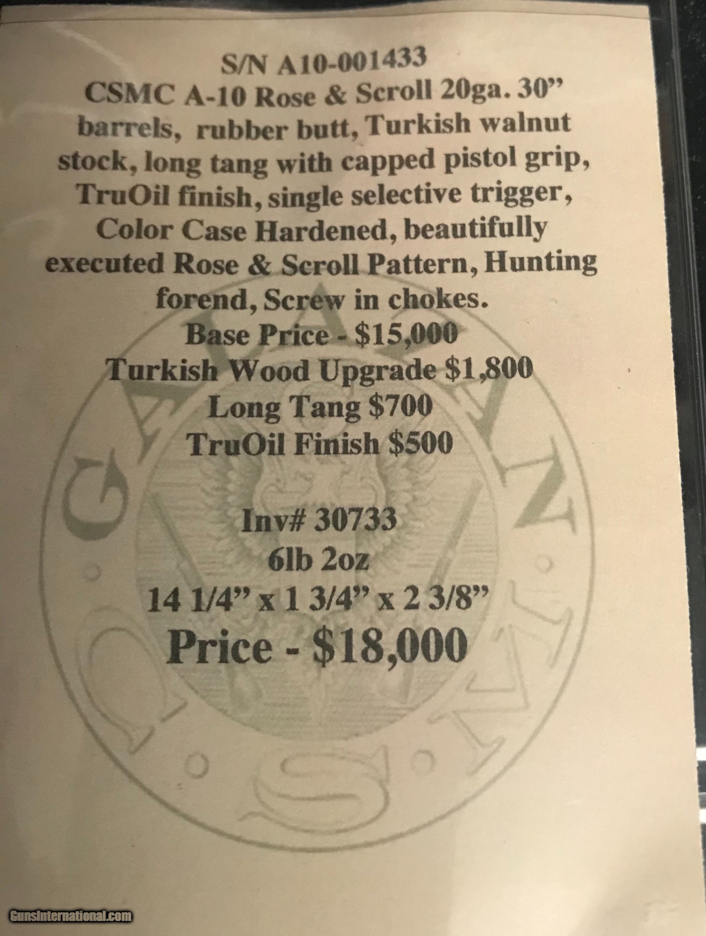 Description: CSMC A10 20 gauge over and under 30" barrels 1 1/2 - 2 1/4" drop 14 1/2" pull excellent condition like new will take trades $50 shipping - Insurance optional add 7.25% for all Ohio sales no California sales FFL required SOLD |