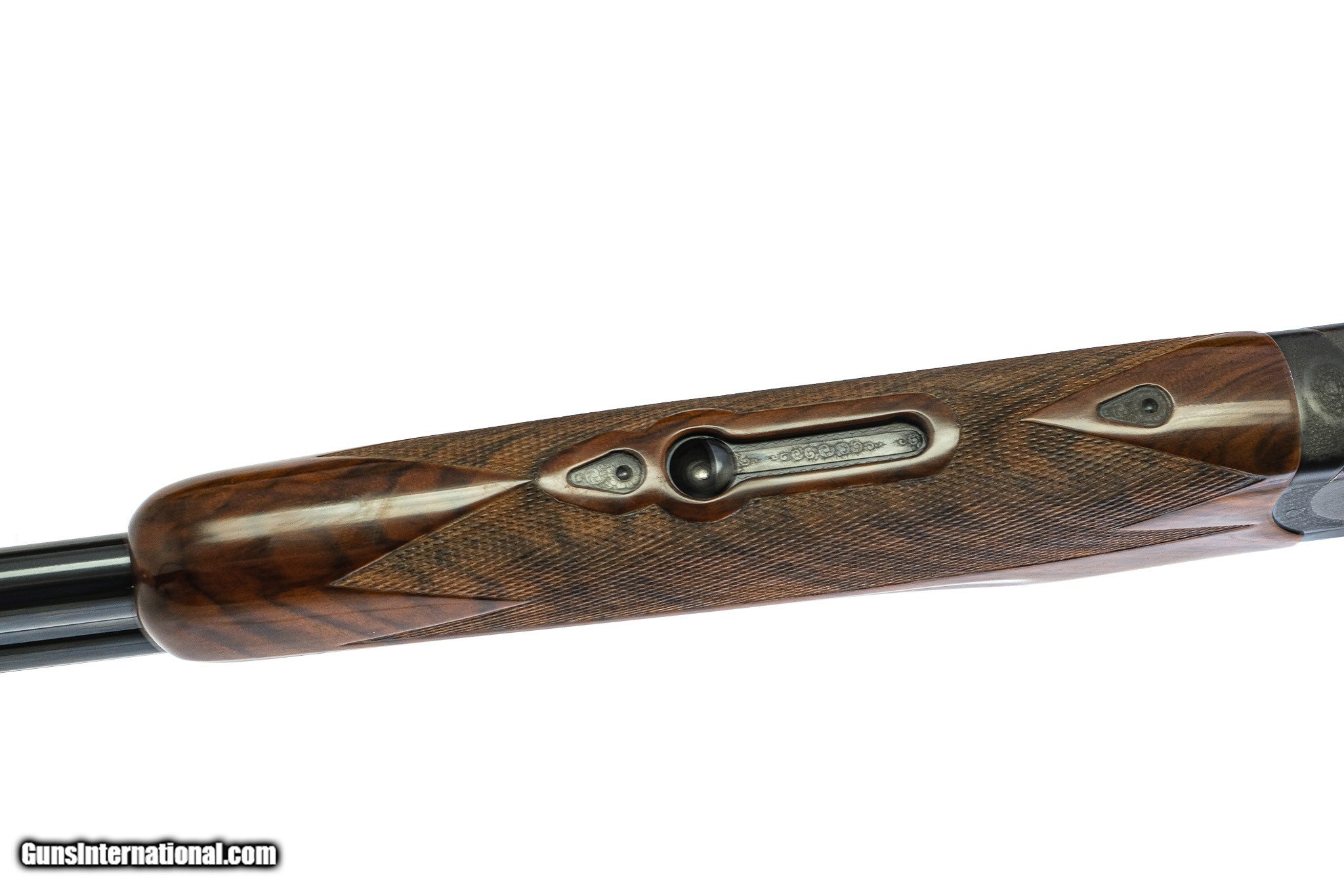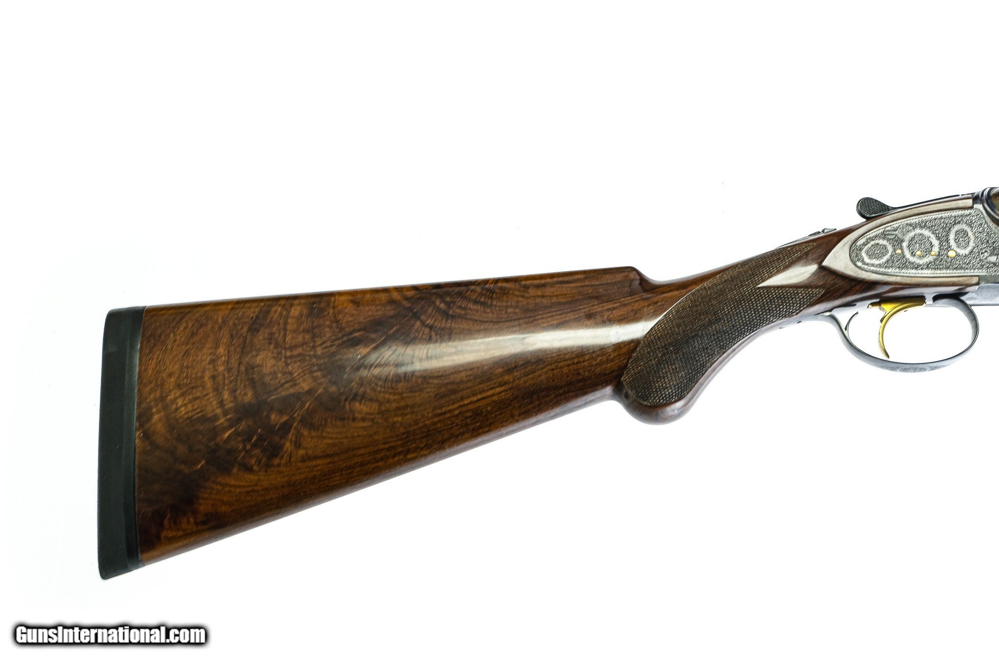 Description: CSMC - A10, O/U Sidelock, Rose & Scroll, 20ga. 28" Barrels with Screw-in Choke Tubes. American Black Walnut stock with a rounded pistol grip and target forend, TruOil finish, automatic ejectors, automatic safety, single selective trigger, factory recoil pad, vent rib, exceptional full coverage rose and scroll engraving over a traditional bone and charcoal case coloring, full side lock shotgun with hand detachable locks includes makers case and accessories, available for immediate delivery, made in the USA by the masters at Connecticut Shotgun Manufacturing Co. Base Price - $20,000.00, Options Include: TruOil Finish - $500.00, American Black - $900.00, S & H - $50.00. Inv: 77487 6 lbs. 6 oz. 14 5/8” x 1 3/4” x 2 3/8” $21,450.00 SOLD |