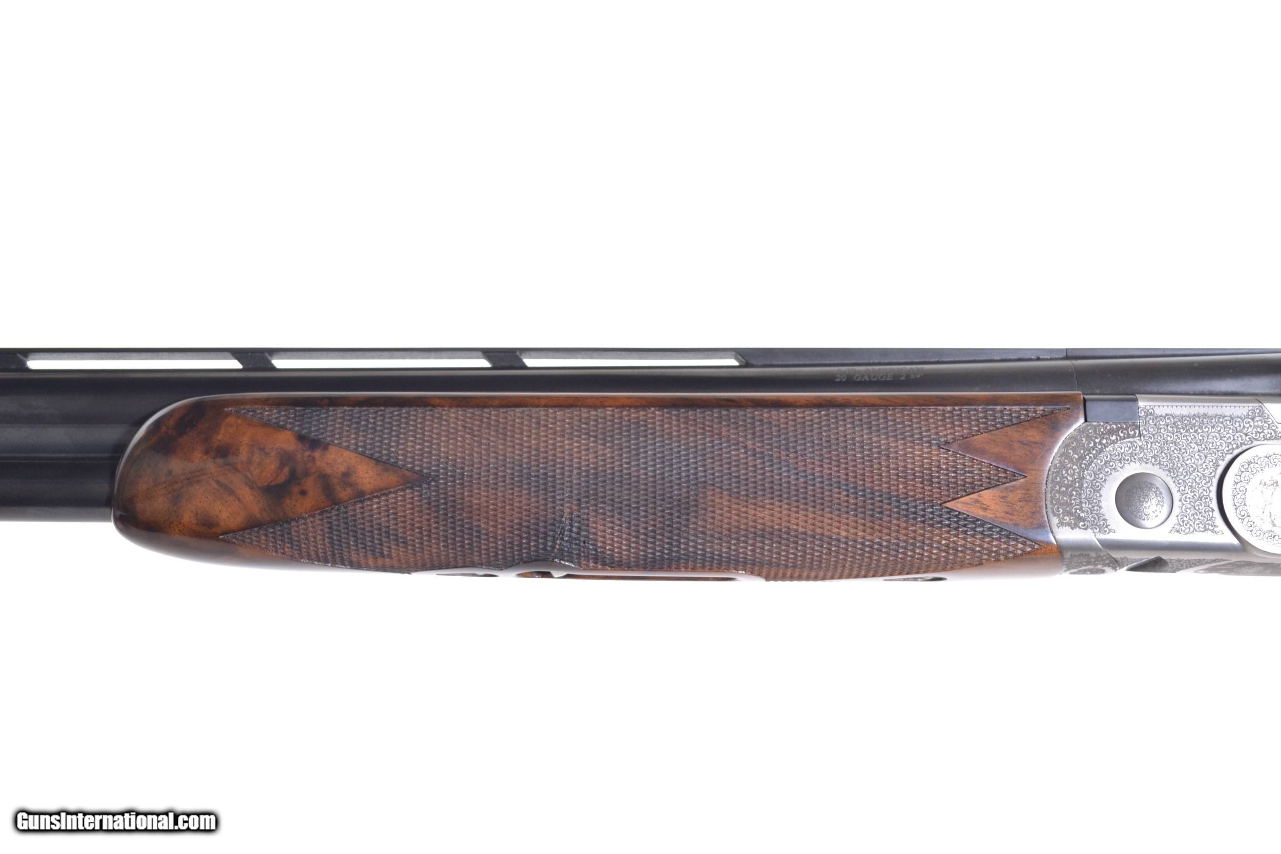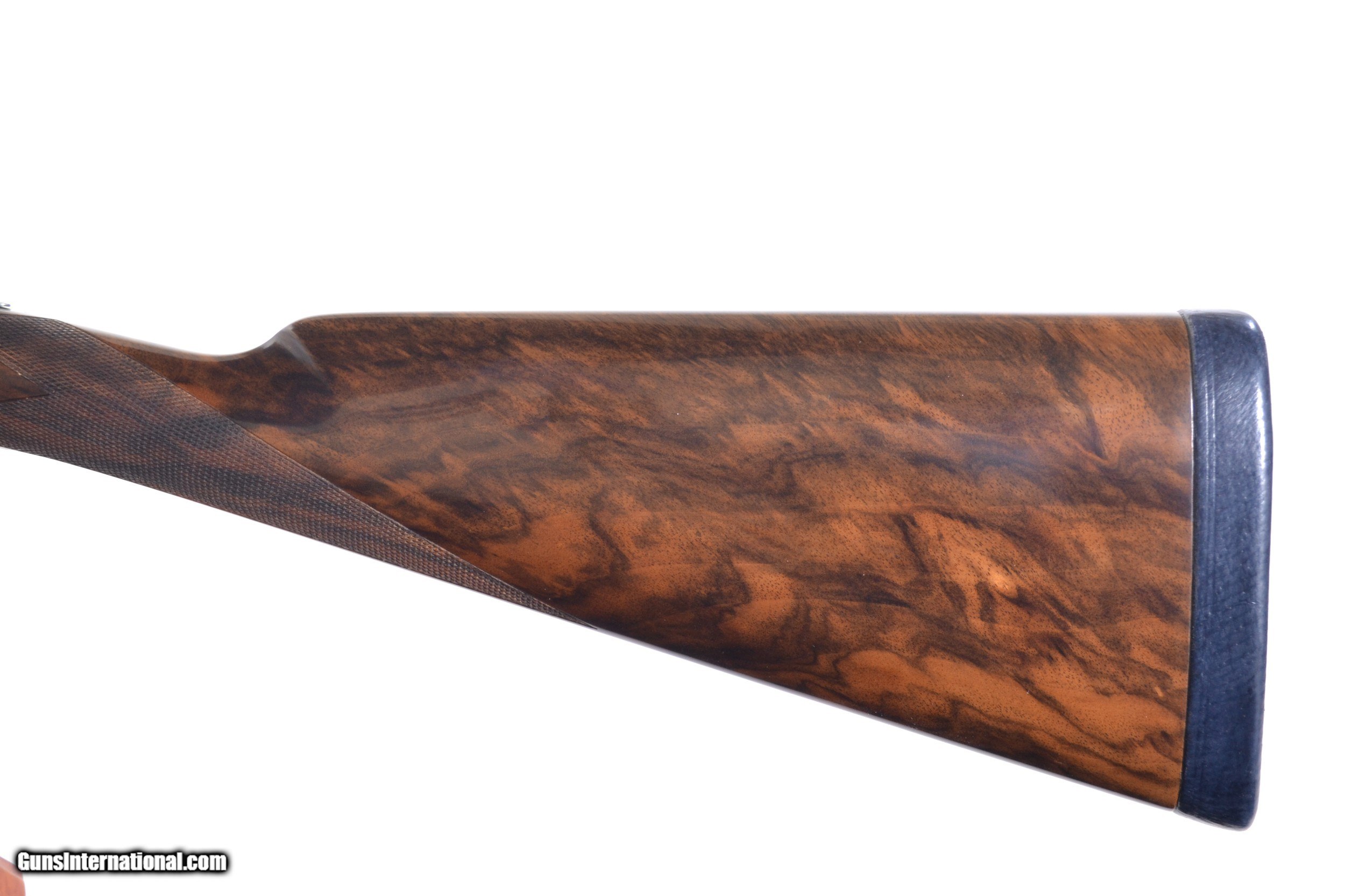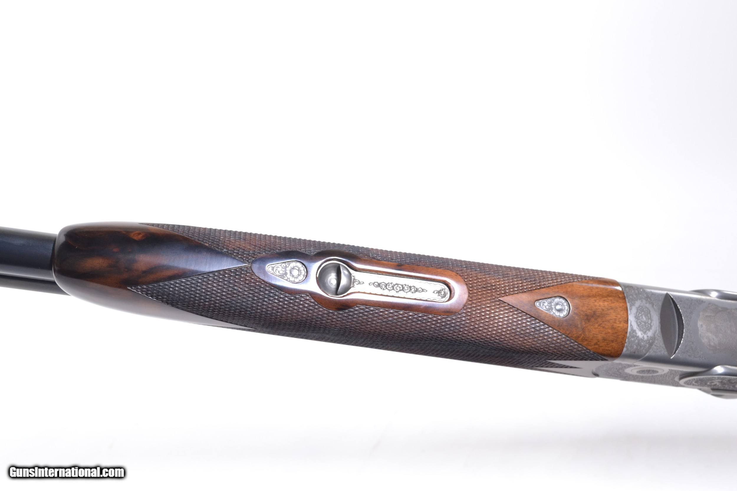 Description: CSMC - A10, Platinum, 20ga. 28" Barrels with Screw-in Choke Tubes. Small Frame, screw-in choke tubes, beautiful Exhibition Turkish walnut straight grip stock, hunting forend, single selective trigger, automatic ejectors, automatic safety, vent rib, TruOil finish, adjustable trigger, full side lock shotgun with hand detachable, the receiver is engraved in miniature English scroll pattern with the very highest detailed Bulino engraving featuring pheasants on both lock plates and a Labrador retrieving a shot pheasant on the bottom of the receiver, the frame is French grayed and plasma hardened, available for immediate delivery. Base Price - $20,000.00, Options Include: Turkish Exhibition Wood - $2000.00, Small Frame - $1,000.00, TruOil Finish - $500.00, Leather Covered Pad - $550.00, S & H - $50.00. Inv: 30059 6 lbs. 0 oz. 14 1/4”-14 ¾” X 1 ½” X 2 3/8” $24,100.00 SOLD |