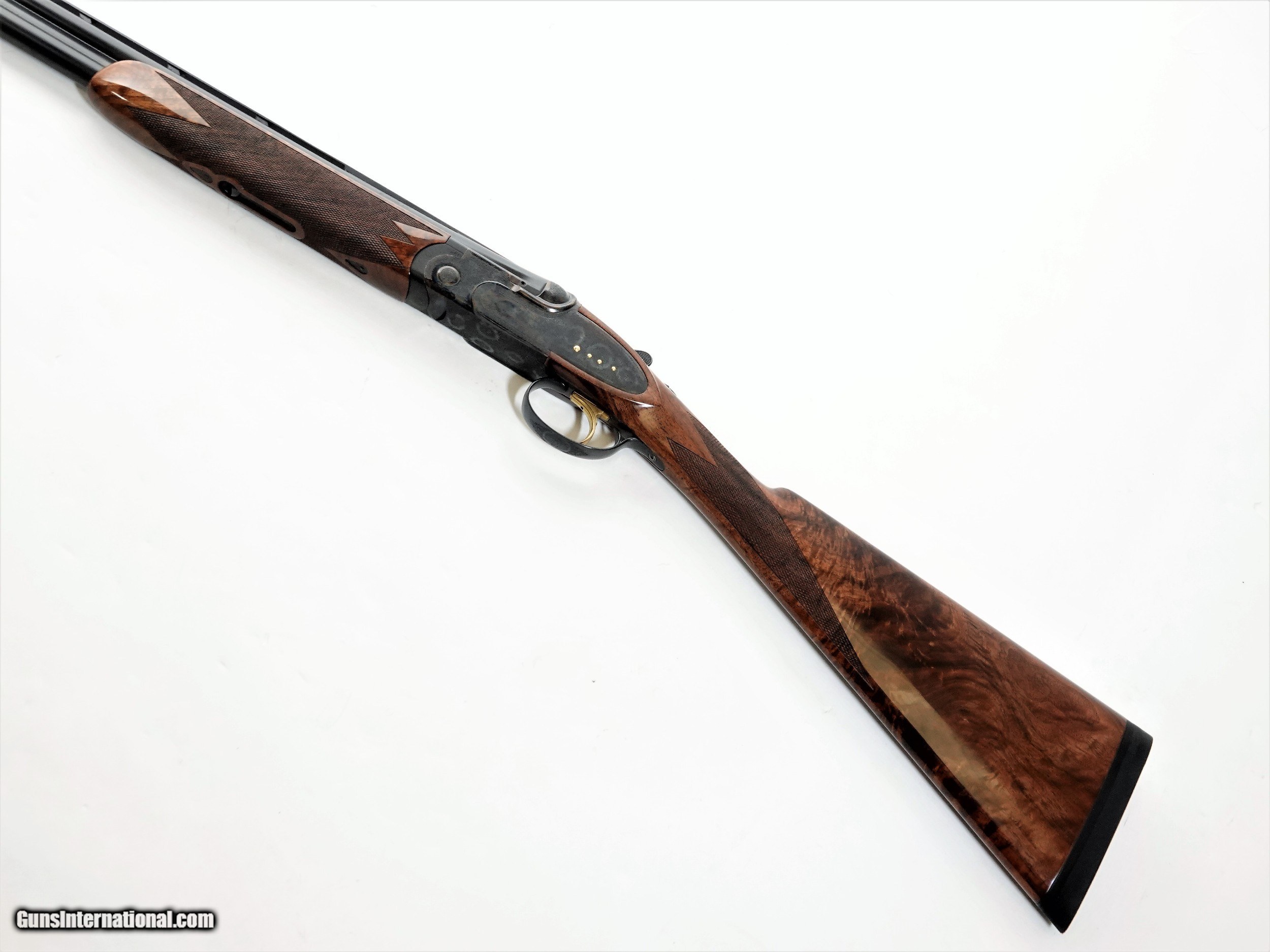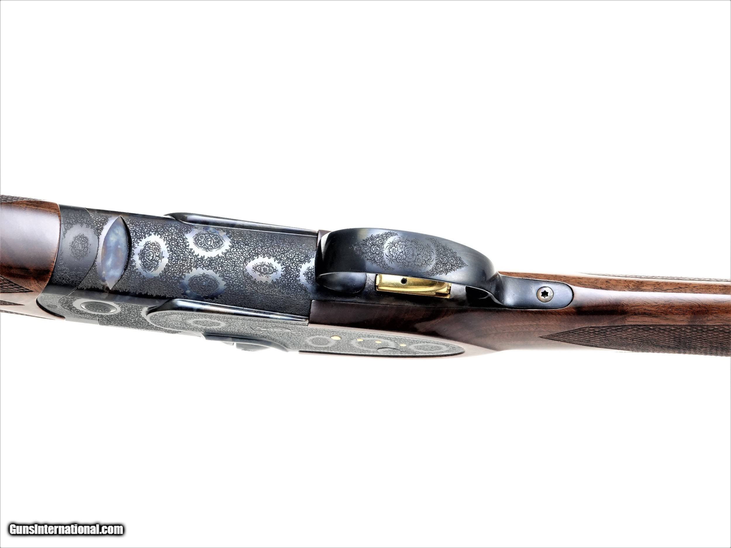 Description: CSMC - A10, Rose & Scroll, 20ga. 28” Barrels. Vent rib, screw in chokes, spectacular Exhibition walnut, straight grip stock, hunting forend, TruOil finish, single selective trigger automatic ejectors, automatic safety, Galazan recoil pad, adjustable trigger, vent rib, full side lock shotgun with hand detachable locks, exceptional full coverage rose & scroll engraving over traditional bone and charcoal case coloring, includes maker's case with cover, available for immediate delivery. Base Price - $15,000.00, Options Include: Exhibition Wood - $1,000.00, TruOil Finish - $500.00, S&H - $50.00 Inv: 30585 6 lbs. 4 oz. 14 3/4“ X 1 1/2" X 2 3/8" $16,550.00 SOLD |
