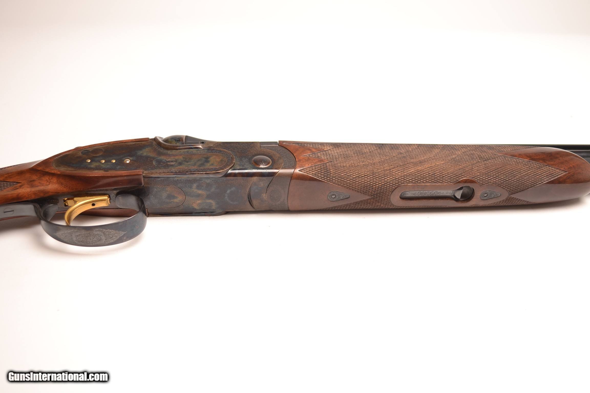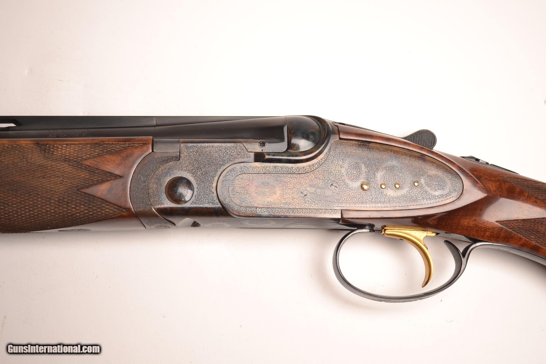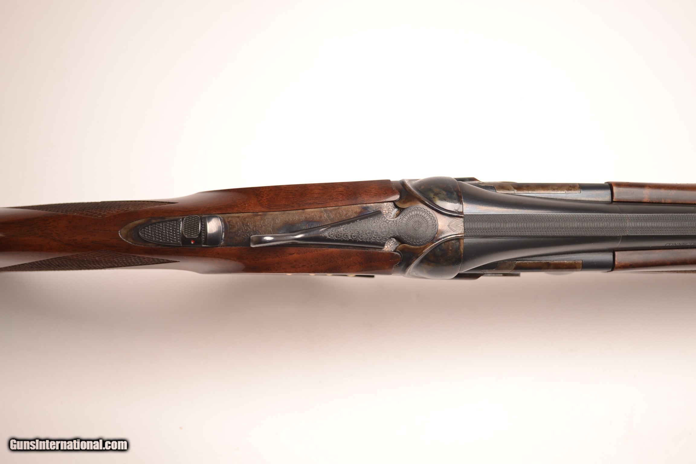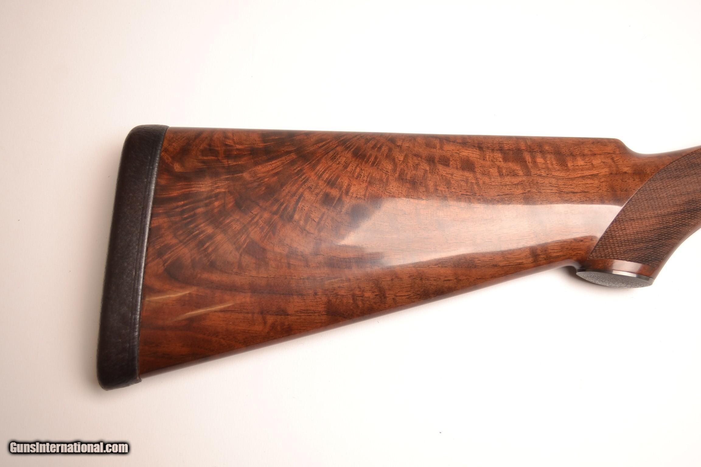 Description: CSMC-A10 Rose & Scroll Model – .410, 30” barrels. With screw in choke tubes, beautiful American black walnut long tang metal capped pistol grip, stock, Truoil finish, leather covered pad, hunting forend, vent rib, automatic ejectors, automatic safety, single selective trigger, full sidelock shotgun with hand detachable locks, magnificent full coverage rose and scroll engraving over a bone and charcoal case colored receiver, includes makers’ travel case, available for immediate delivery. Base price- $19,000.00,3x American black walnut $350, Truoil finish - $500, Leather pad $550.00 S&H-$50.00 Inv# 38060 14 ¼” - 14 ¾” x 1 3/8” x 2 1/8” 6Lbs. 8oz. SOLD Manufacturer: CSMC Barrels: 30 Gauge Info: .410 |