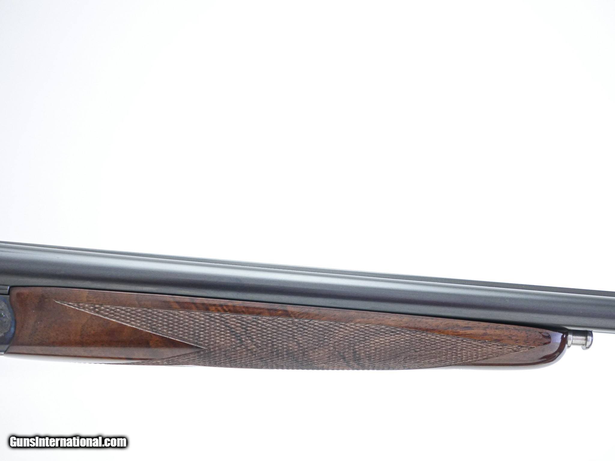Description: CSMC - Christian Hunter, .410ga. 28" Barrels Choked F/F. The chokes can be opened to customer specifications. This is a special scalloped small-dedicated baby frame .410 with a detachable floor plate, automatic ejectors, 3” chambers, double triggers, Incredible full feathercroth American black walnut exhibition wood straight grip stock, heel & toe plates, gold oval, long tang, splinter forend, magnificently executed miniature rose bouquet and Scroll engraving with a traditional bone and charcoal case colored finish. This gun comes with a lifetime warranty. Trades are welcomed. Available for immediate delivery. Inv: 48085 5 lbs. 4 oz. 15 ¼” x 1 3/8” x 2” $16,999.00 SOLD |