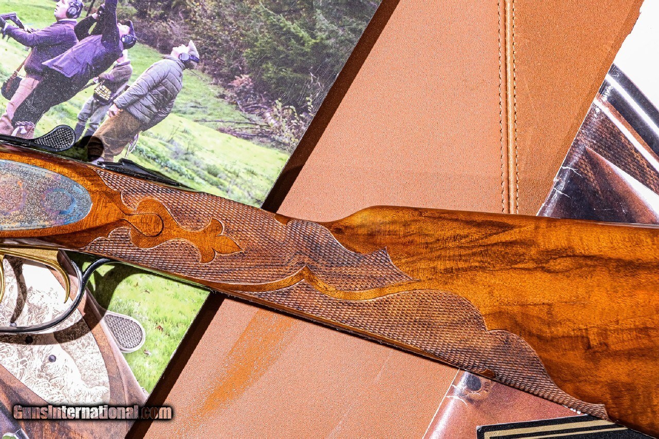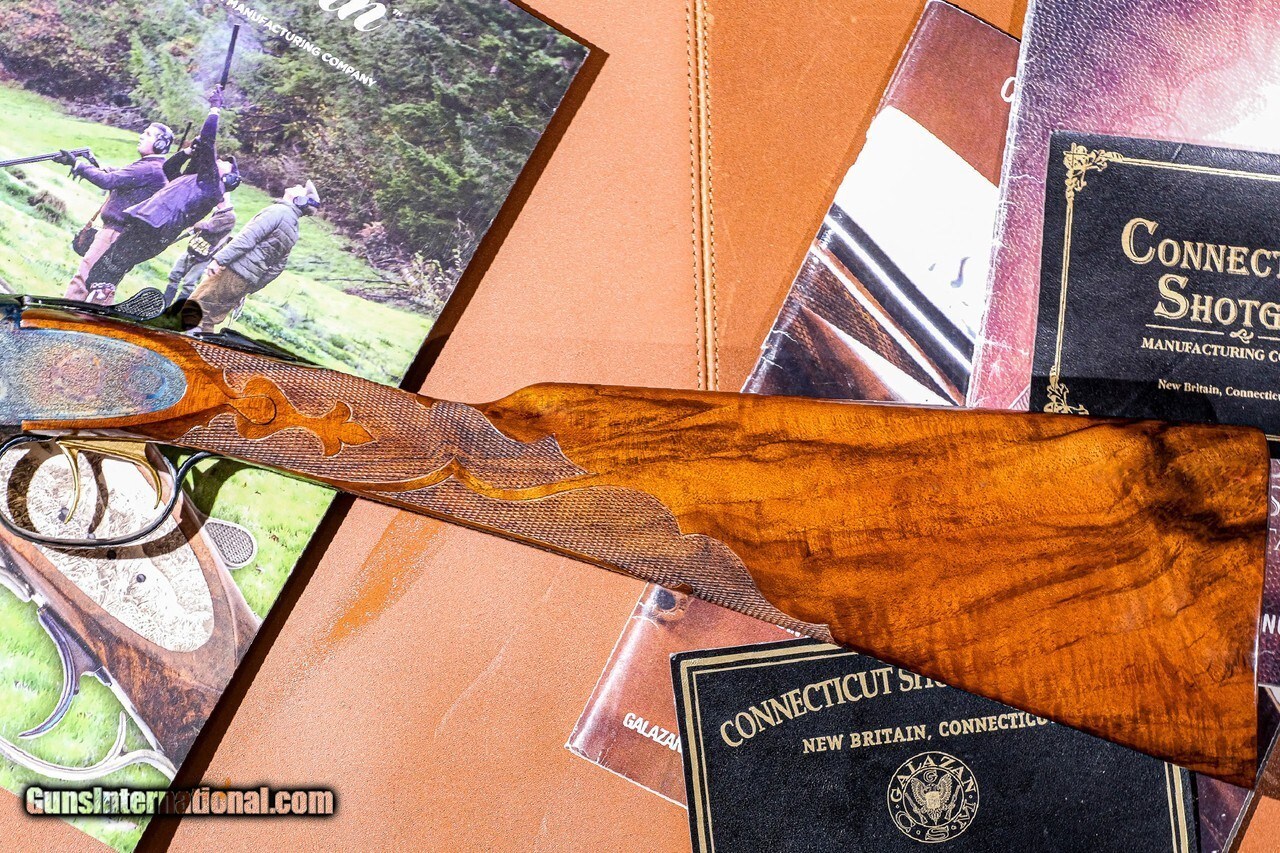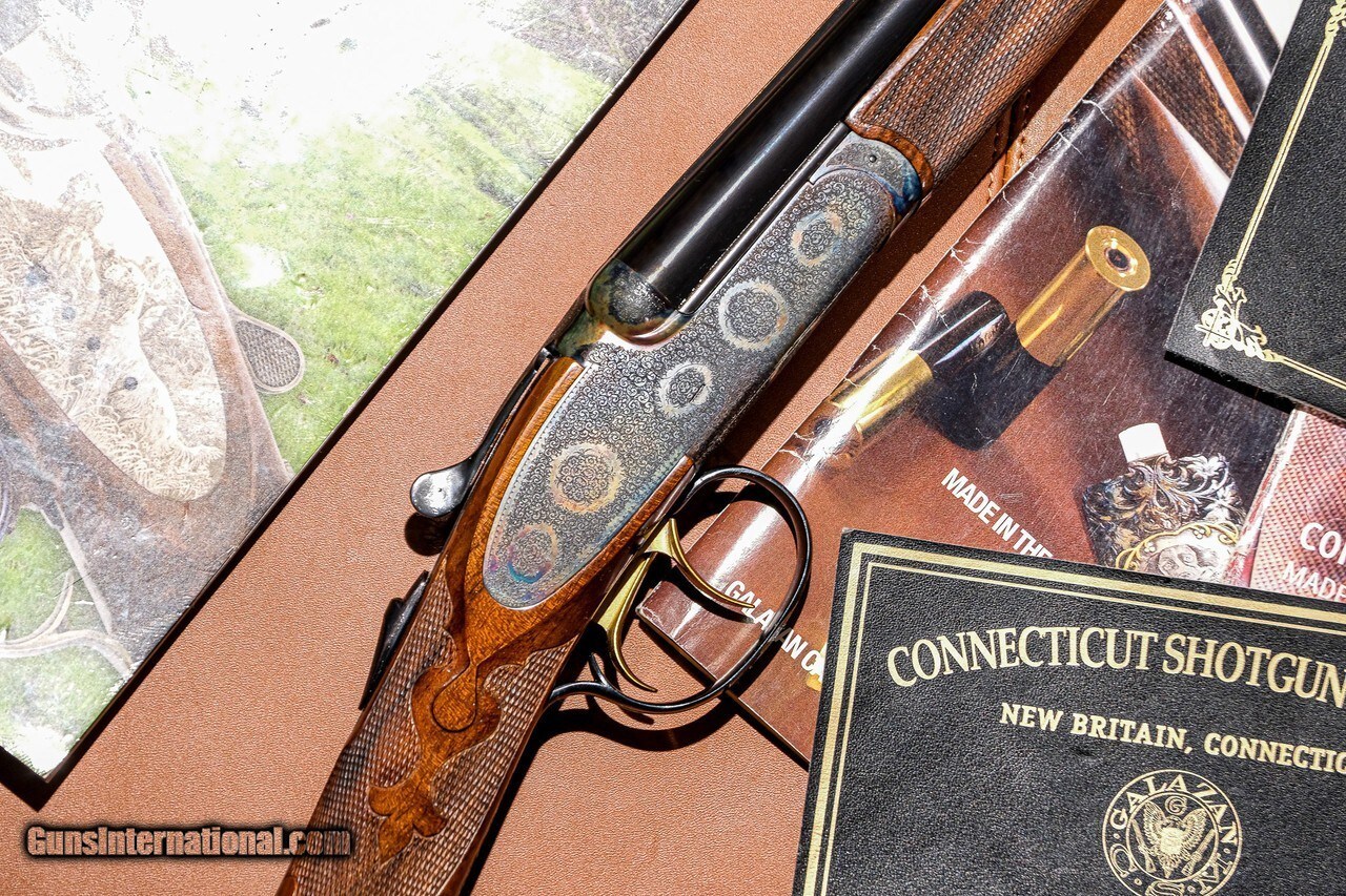 Description: CSMC - Christian Hunter, SxS, Special Miniature Frame, .410. 28" Barrels Choked F/F. Christian Hunter Side Plate Special Miniature Frame. Chokes can be opened. Double trigger, straight stock, checkered butt, special fleur-de-lis checkering with English drop points, automatic safety, splinter forend. Engraved by Briton with miniature English Rose and Scroll executed to the highest degree. 100% case color, barrel blue, wood finish. Lightly colored piece of Turkish walnut. This gun has a removable trigger plate for inspection and cleaning. Jeweled water table, barrel flats and forend iron. Extremely high-grade gun in a very small format. Warrantied for life to the original owner courtesy of Connecticut Shotgun. Inv: 91094 5 lbs. 2 oz. 15" x 1 ½" x 2 ½" $16,995.00 We only sell direct; we use no dealers. You get the maximum value this way without any additional markup. All of our guns are made in the USA, in one facility, designed and built, with a lifetime warranty which no one else can offer. A dealer will sell you the gun he makes the most money on, which generally means less money going into the gun. Price: $16,995.00 Contact Seller |