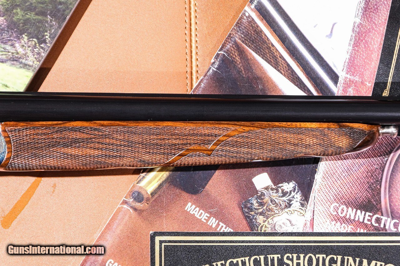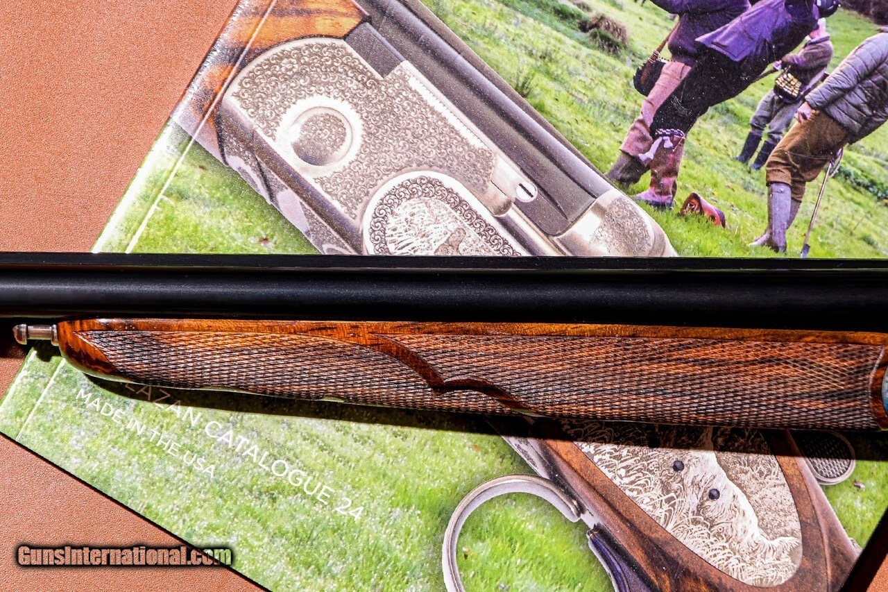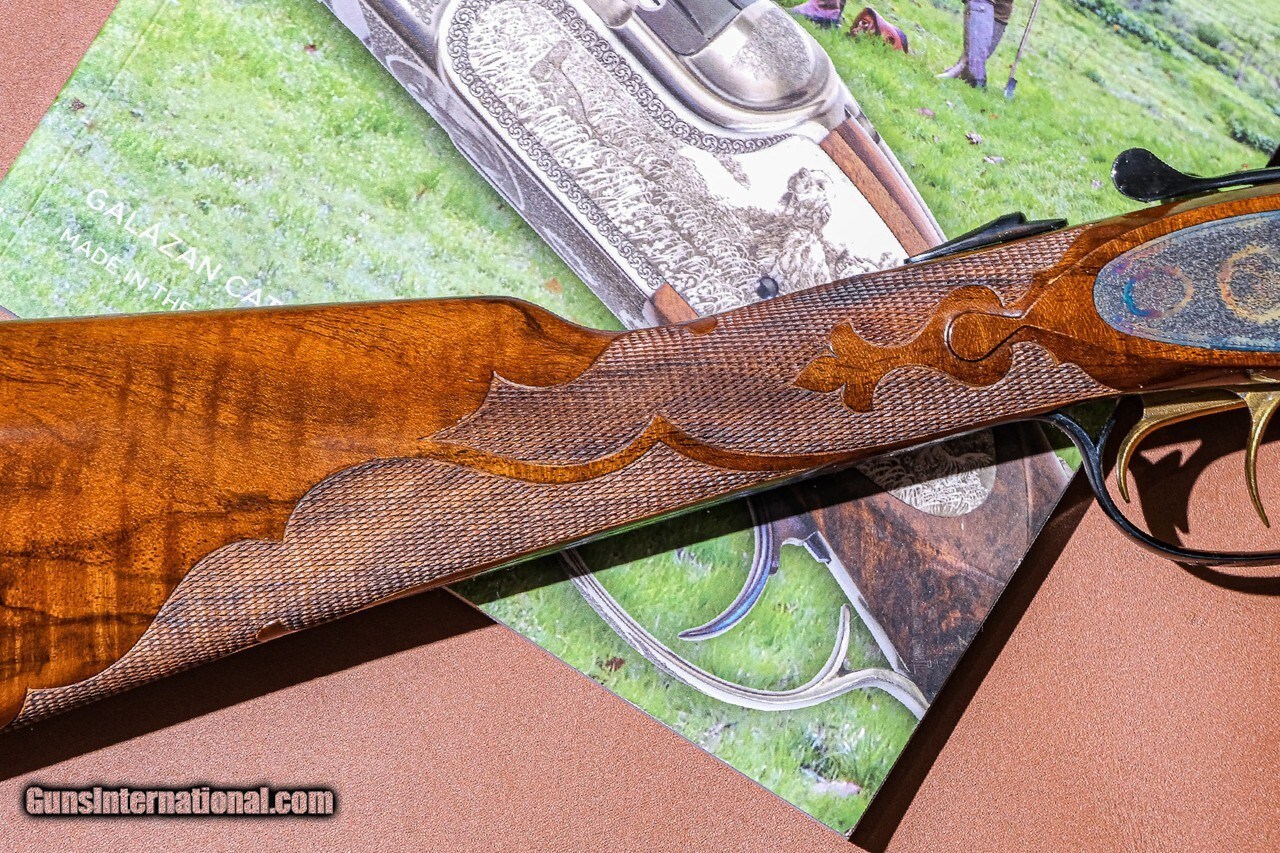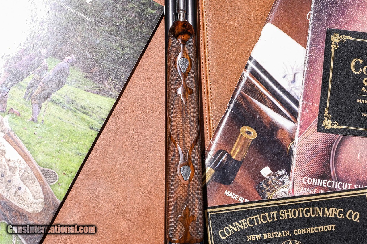 Description: CSMC - Christian Hunter, SxS, Special Miniature Frame, .410. 28" Barrels Choked F/F. Christian Hunter Side Plate Special Miniature Frame. Chokes can be opened. Double trigger, straight stock, checkered butt, special fleur-de-lis checkering with English drop points, automatic safety, splinter forend. Engraved by Briton with miniature English Rose and Scroll executed to the highest degree. 100% case color, barrel blue, wood finish. Lightly colored piece of Turkish walnut. This gun has a removable trigger plate for inspection and cleaning. Jeweled water table, barrel flats and forend iron. Extremely high-grade gun in a very small format. Warrantied for life to the original owner courtesy of Connecticut Shotgun. Inv: 91094 5 lbs. 2 oz. 15" x 1 ½" x 2 ½" $16,995.00 We only sell direct; we use no dealers. You get the maximum value this way without any additional markup. All of our guns are made in the USA, in one facility, designed and built, with a lifetime warranty which no one else can offer. A dealer will sell you the gun he makes the most money on, which generally means less money going into the gun. Price: $16,995.00 Contact Seller |
