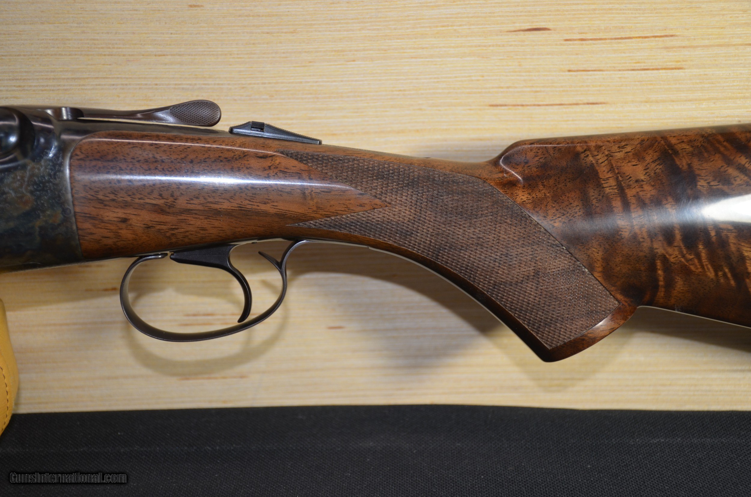 Description: New In Case CT. Shotgun 20ga. Inverness, 3" chambers, 30" barrels, 6 chokes with leather gamekepper pouch, Outstanding 4x wood stock, 1 set of nickle plated snap caps, all packaged in a aluminum hard case. First year production, Serial # I-00243 SOLD Shotgun Gauge: 20 Gauge Manufacturer: Connecticut Shotgun Model: Inverness Serial Number: I-00243 Barrel Length: 30 Chambers: 3 Ejectors: yes Condition: 100% unfired with Case Metal Condition: 100% Wood Condition: !00% Bore Condition: !00% Barrels: ! Set Barrel Type: O/U Action: Boxlock Triggers: Single Stock: High grade walnut 4X - Oil Hand Finish Butt Pad: Factory LOP: 14 3/8 Rib: VR Finish: Blue + Case hardened Sights: single bead Chokes: 6 included Engraving: Yes - Rose & Scroll Case: Aluminum Case |