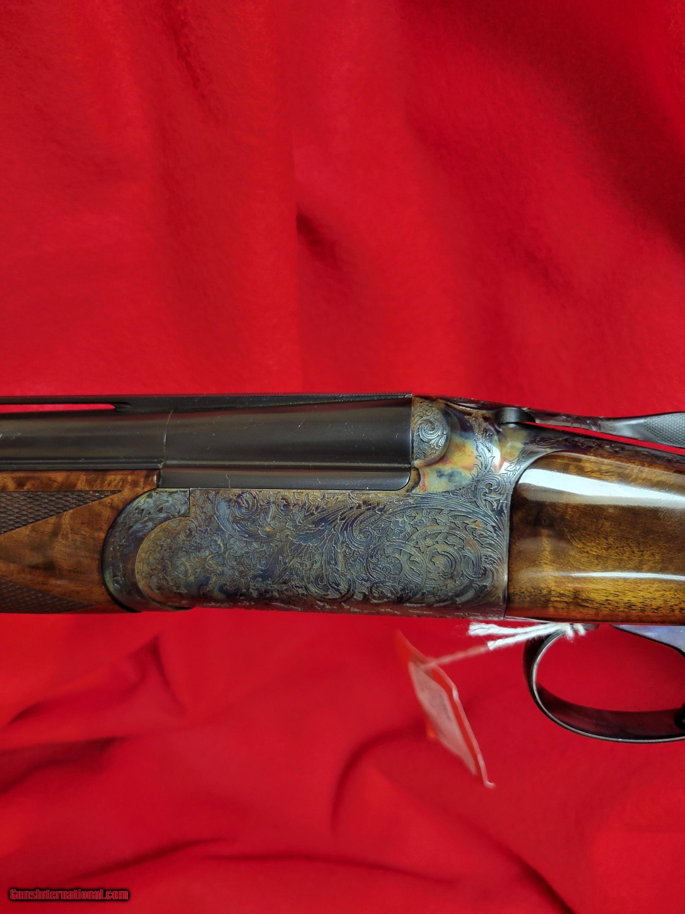 Description: This Inverness Deluxe Grade, Roundbody, 20ga is as new and boasts 28in barrels. 100% vivid case hardened bone & colors. The wood is Grade 4 with highly figured grain as shown. Snap Caps, Chokes included. Gun is a great sporting clays or field hunting experience gun. The wood alone will have people asking about this beautiful over and Under. Note the full tang ans pistol grip metal cap to match engraving. Just an overall beautiful gun. If ordered via CSMC this Deluxe Model cost is $16,500.00 today. SOLD |