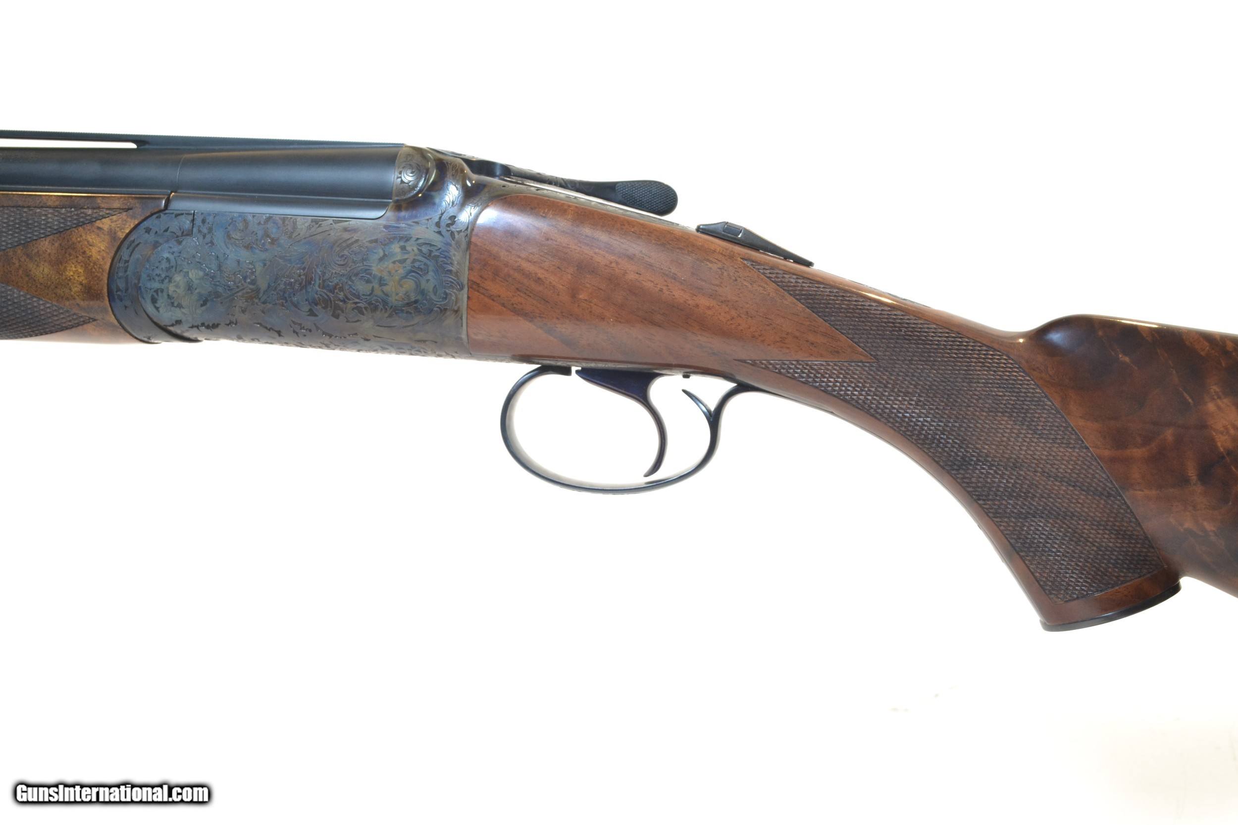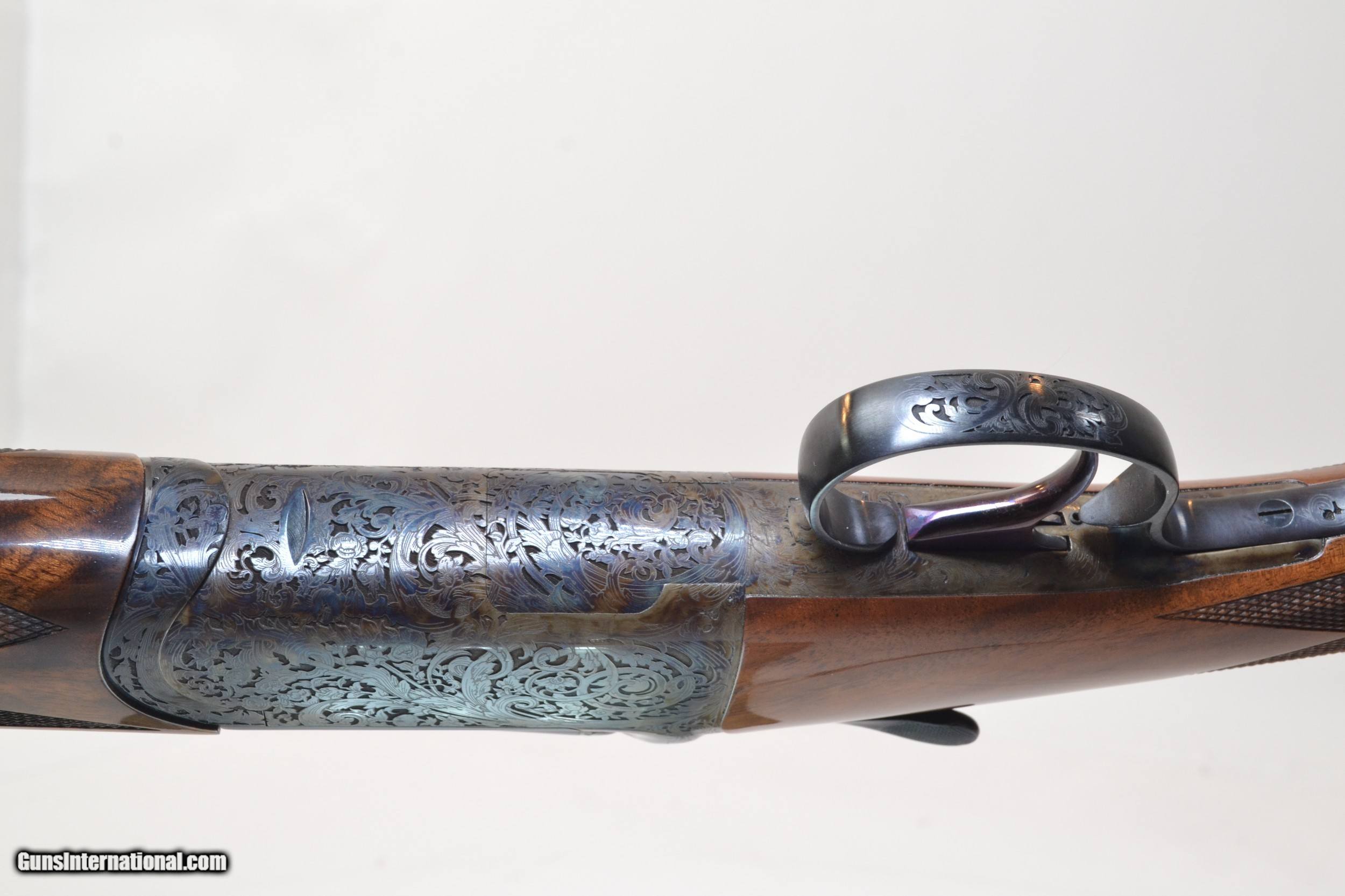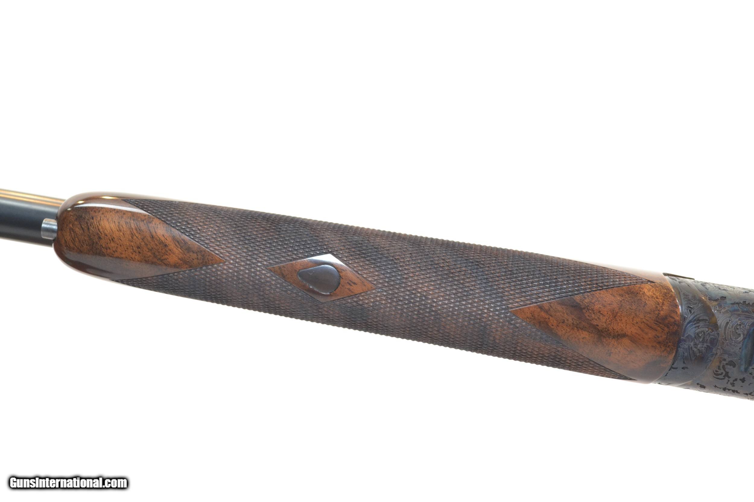 Description: CSMC - Inverness, Deluxe, Round Body, 20ga., 28” Barrels. A round elegant, classic timeless design that is more than just the sum total of its parts, beautifully sculptured and elongated top and bottom tang, side ribs over the forearm, trigger plate action, file cut rib, gorgeous 2X American Walnut w/ long tang straight grip stock, TruOil finish, red recoil pad, single selective trigger, automatic ejectors, automatic safety, vent rib, Ornamental engraving with a color case hardened finish. Base Price - $12,500.00, Options Include: 4X Walnut - $600.00 Long Tang - $700.00, TruOil Finish - $500.00, S&H - $50.00 Inv: 34510 6 lbs. 10 oz. 14 1/4” X 1 1 1/2” X 2 1/8” $14,350.00 SOLD |
