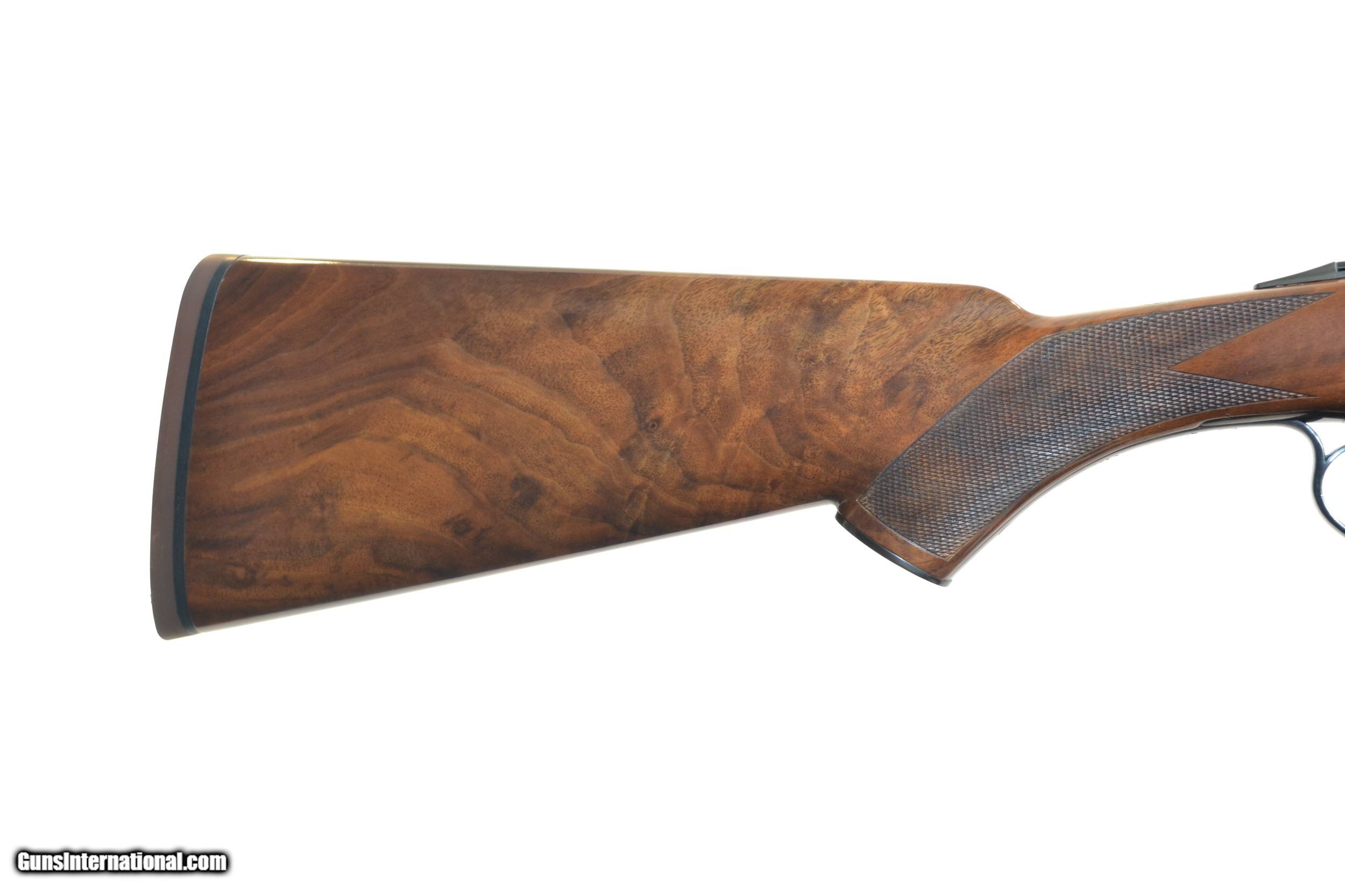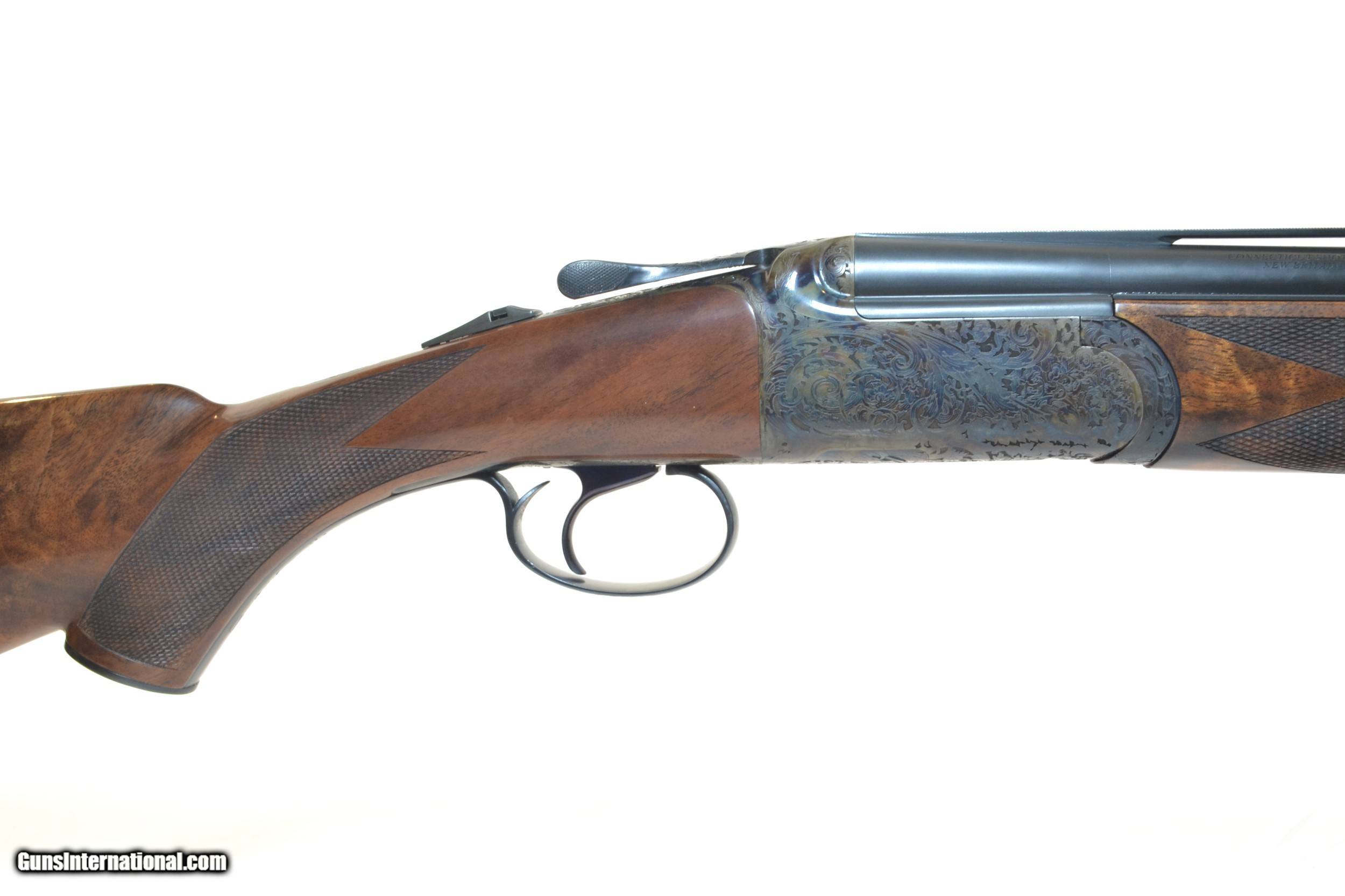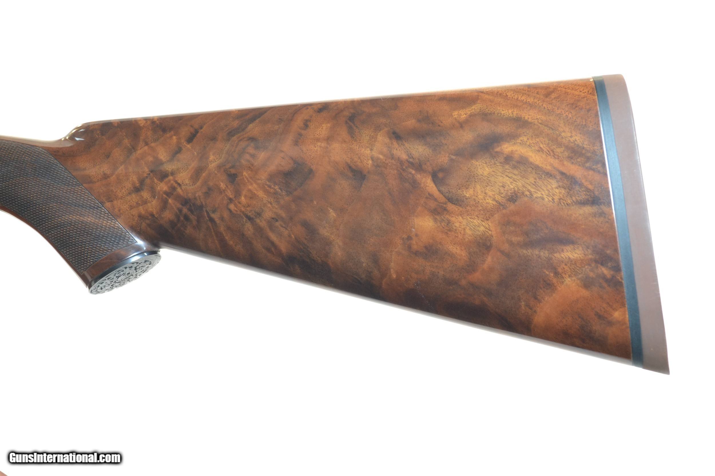 Description: CSMC - Inverness, Deluxe, Round Body, 20ga., 28” Barrels. A round elegant, classic timeless design that is more than just the sum total of its parts, beautifully sculptured and elongated top and bottom tang, side ribs over the forearm, trigger plate action, file cut rib, gorgeous 2X American Walnut w/ long tang straight grip stock, TruOil finish, red recoil pad, single selective trigger, automatic ejectors, automatic safety, vent rib, Ornamental engraving with a color case hardened finish. Base Price - $12,500.00, Options Include: 4X Walnut - $600.00 Long Tang - $700.00, TruOil Finish - $500.00, S&H - $50.00 Inv: 34510 6 lbs. 10 oz. 14 1/4” X 1 1 1/2” X 2 1/8” $14,350.00 SOLD |