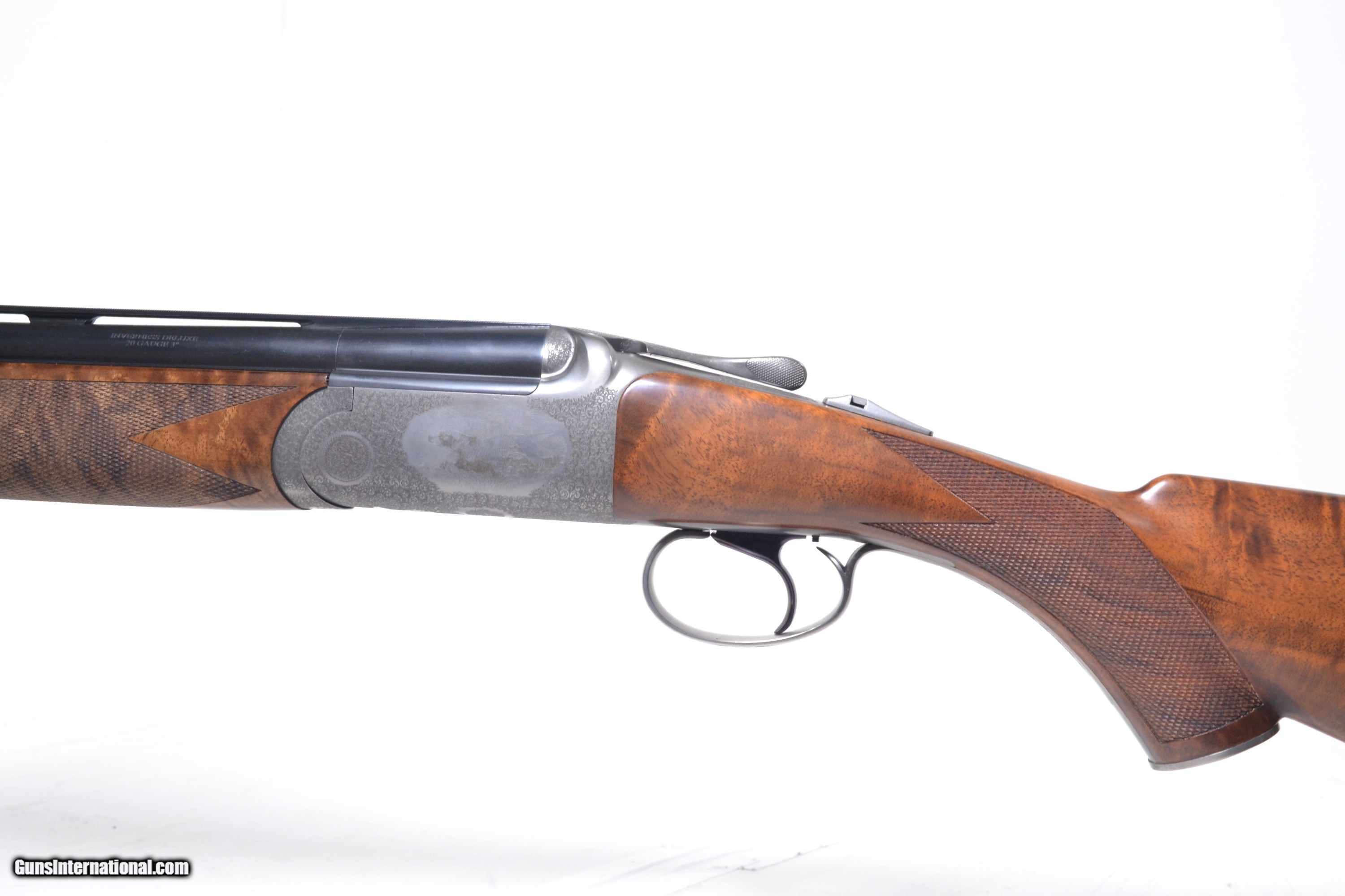 Description: CSMC - Inverness, Special, Round Body, O/U, 20ga. 28" Barrels with Screw-in Choke Tubes. Engraving features a setter on one side and a pointer on the other, surrounded by miniature rose & scroll engraving. Frame is French grayed and plasma hardened. Base Price - $8,995.00, Options Include: Exhibition Wood - $900.00, TruOil Finish - $500.00, Long Tang - $700.00, S & H - $50.00. Inv: 44380 6 lbs. 8 oz. 14 1/2" x 1 3/8" x 2 1/4" $11,145.00 SOLD |