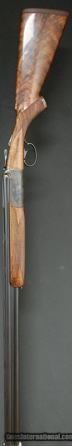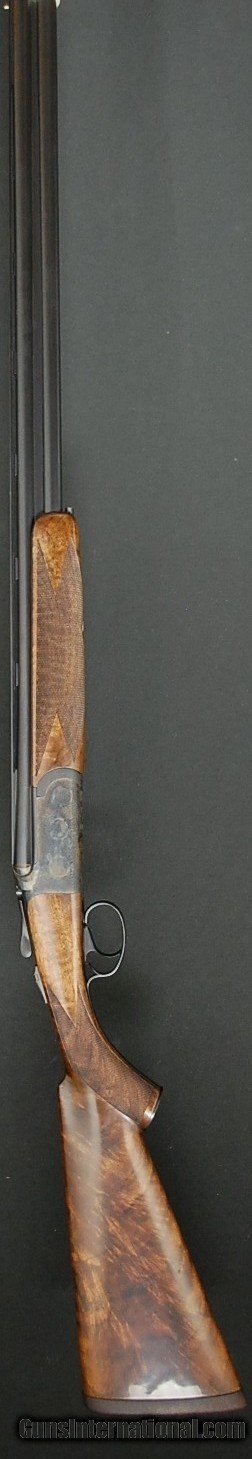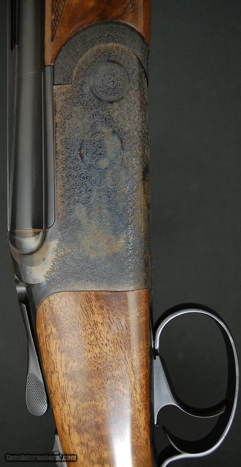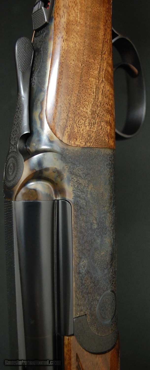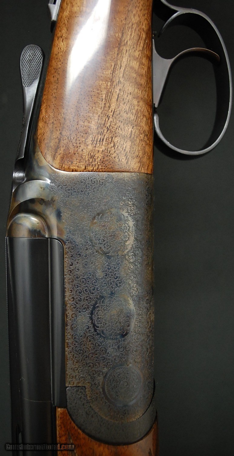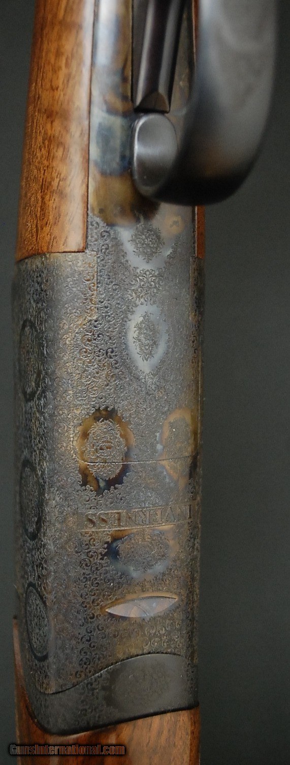Description: Inverness – Standard, Round Body, O/U, 20ga., 30” barrels, TruLock chokes, 4X American black walnut pistol grip stock, hunting style forend, high gloss TruOil finish, leather covered pad, single selective trigger, automatic ejectors, long tang trigger guard, vent rib, full coverage rose & scroll engraving over bone & charcoal case color hardening. Base price - $8,995.00, options include: Exhibition wood - $600, TruOil finish - $500, long tang trigger guard - $700, leather covered pad - $550, S&H - $75.00.
