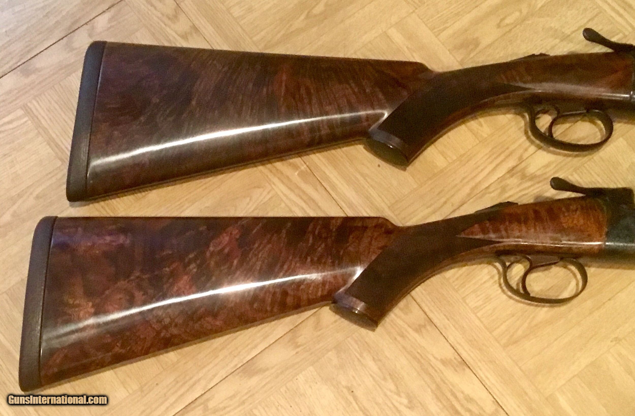 Description: As new pair of Gazalan 20 gauge over and unders, numbered 1 and 2 in gold and consecutive serial numbers 30 inch barrels in as new condition. SOLD |