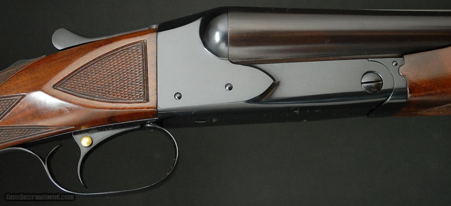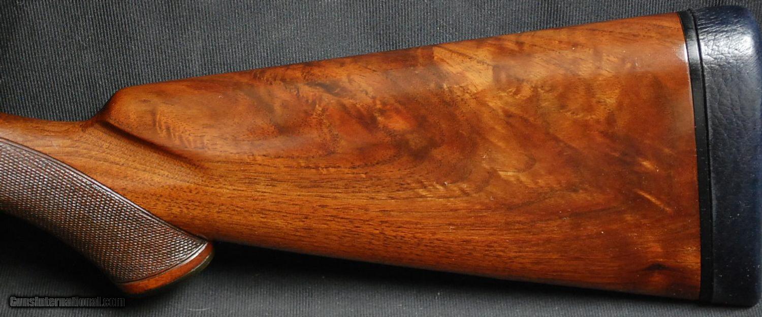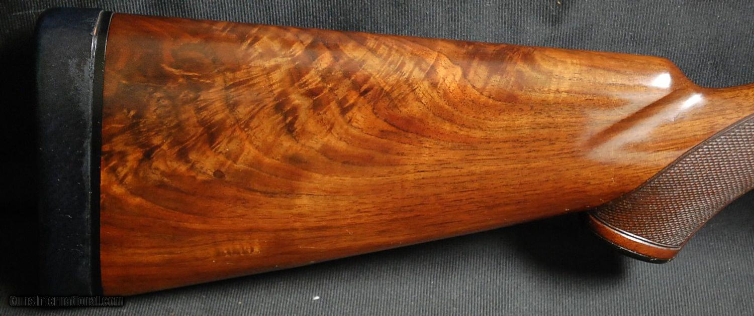 Description: WINCHESTER – Model 21, 12 gauge, 32” Vent Rib Mod./Full, capped pistol grip stock, gold oval, leather pad, single selective trigger, automatic ejectors, beavertail forend with kidney pattern checkering, rare gun which remains in excellent condition throughout. Inv#:28815 14” x 1 ½” x 1 ¾” 8lbs 2oz $9,250.00 SOLD |