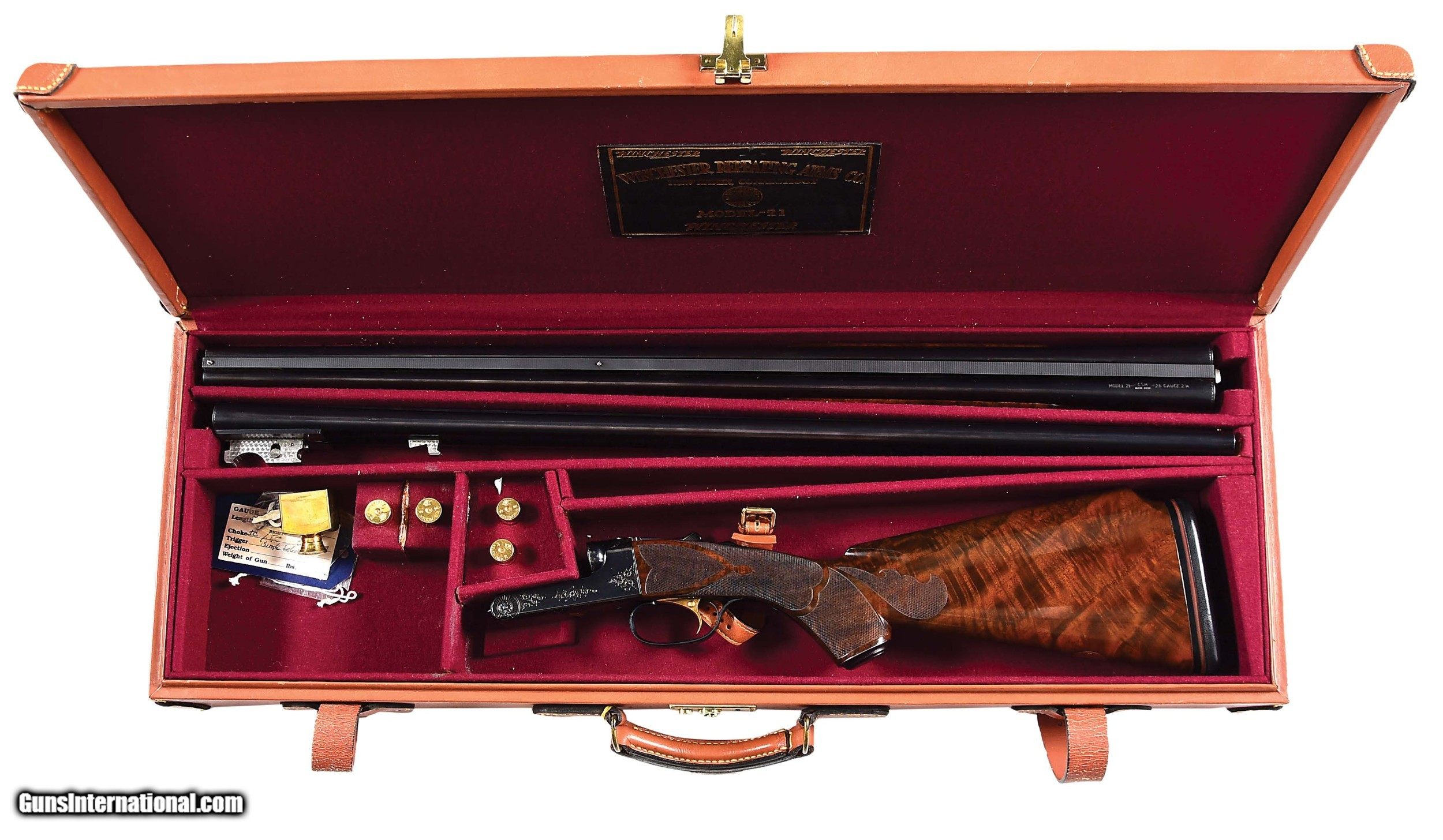 Description: SOLD Manufacturer: CSMC Model: MODEL 21 Serial Number: W38549 Chambers: 3 Ejectors: YES Condition: EXCELLENT Metal Condition: EXCELLENT Wood Condition: EXCELLENT Bore Condition: EXCELLENT Barrels: BOTH 30 inches Gauge Info: 20 GA & 28 GA Stock: MONE CARLO COMB Stock Comb: 1 3/4 Stock Heel: 2.25 Stock Cast: slight cast off LOP: 14 7/8 Weight: 8 lbs Chokes: IC & IMOD BOTH BARRELS Engraving: TRIGGER PLATE GOLD FLYING PIGEON Case: TANN LEATHER CASE WITH ACCESSORIES |