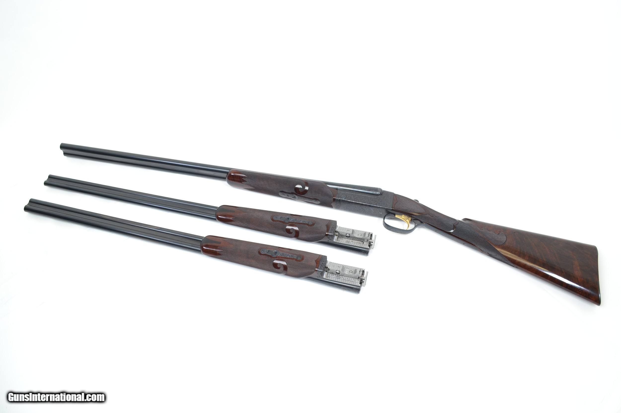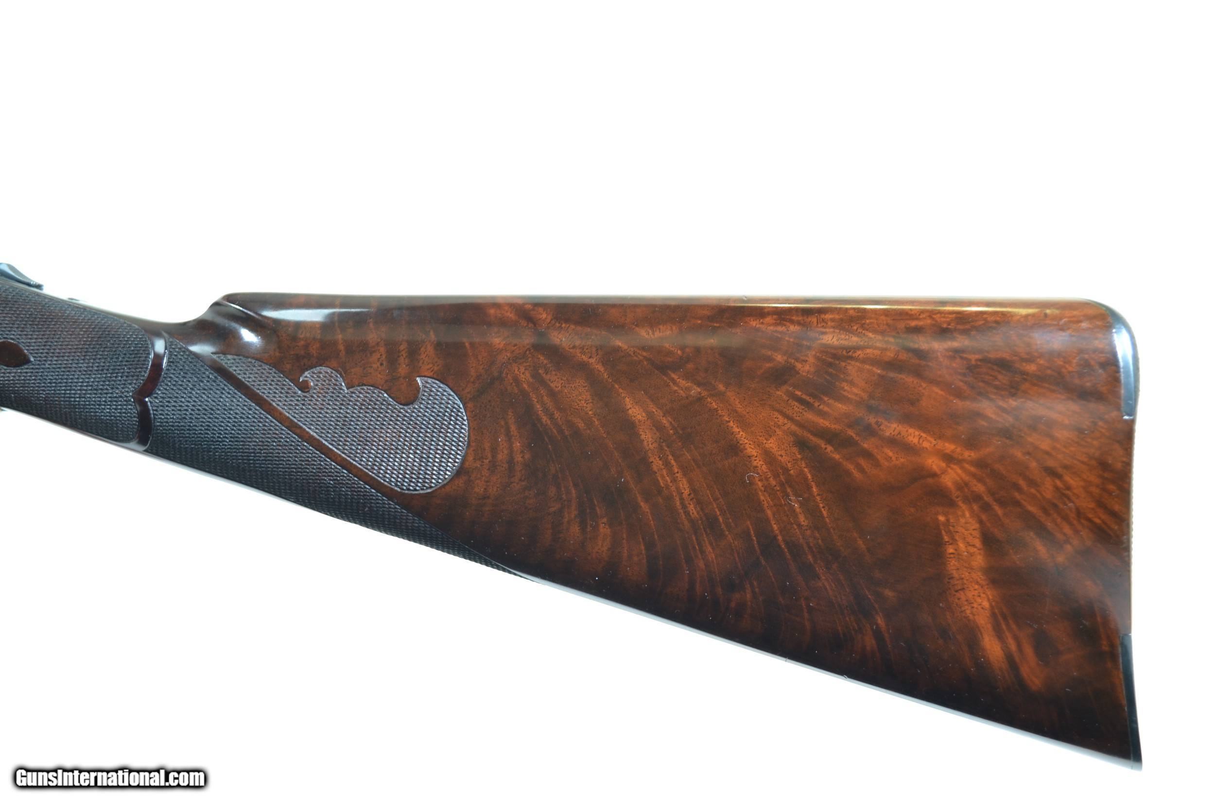 Description: CSMC - Model 21, Chrysler Pattern Engraving, 3 Barrel Set, 20/28/410ga. 29" Barrels. All barrels being 29” with ventilated ribs and having Briley hidden screw in choke tubes. Three slender beavertail forends with ebony inserts, straight grip exhibition full feathercrotch American black walnut stock, heel and toe plates, A-Carve checkering pattern, gold single selective trigger, automatic ejectors, flat side round frame receiver with lightening cuts on watertable, jeweled flats, beautifully executed Chrysler pattern engraving, 100% condition throughout, includes makers’ case, available for immediate delivery. Inv: 45138 6 lbs. 14 oz. 14 5/8” x 1 3/8” x 2” $38,000.00 CT Shotgun/Galazan buys sells and trades the world’s largest inventory on Model 21 shotguns. we are experts in all phases of buying, selling, and repairing as well as restoration of these very complex guns we have handled more Model 21 in all regards than all other companies put together. we have bought sold and manufactured most of the Grand Royal and Grand American grade guns and we understand them intimately. In 1994, Galazan/CT Shotgun purchased the Winchester Custom Shop from U.S. Repeating Arms Company and at that time designated the sole manufacturer and authorized repair for the Model 21, we purchased all of the inventory machining tooling and highly regarded trade secrets in regards to manufacturing and repairing maintaining these intricate shotguns. CT Shotgun/Galazan continues to perform the only authorized factory service on all these fine guns if you are interested in purchasing repairing or altering a Model 21 we should be your sole source when it comes to a Model 21 every gun we sell is serviced and inspected, comes with our lifetime warranty. CT/Galazan also has all assorted accessories, original style cases and recoil pads. SOLD |