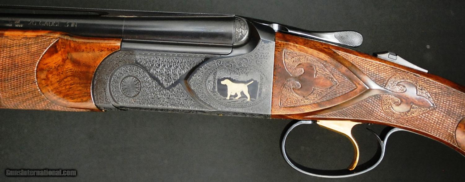 Description: CSMC- Model 21 Grand American O/U 20ga. 30” barrel with choke tubes, full feather crotch exhibition American black walnut pistol grip stock, B-carve checkering, grip cap engraved with Grand American in gold, single trigger, vent rib, automatic ejectors, automatic safety, leather pad, Tru-Oil finish, available for immediate delivery, Base Price- $12,500.00, options include- Tru-Oil- $500.00, Leather Pad- $550.00 S&H- $50.00, available for immediate delivery.