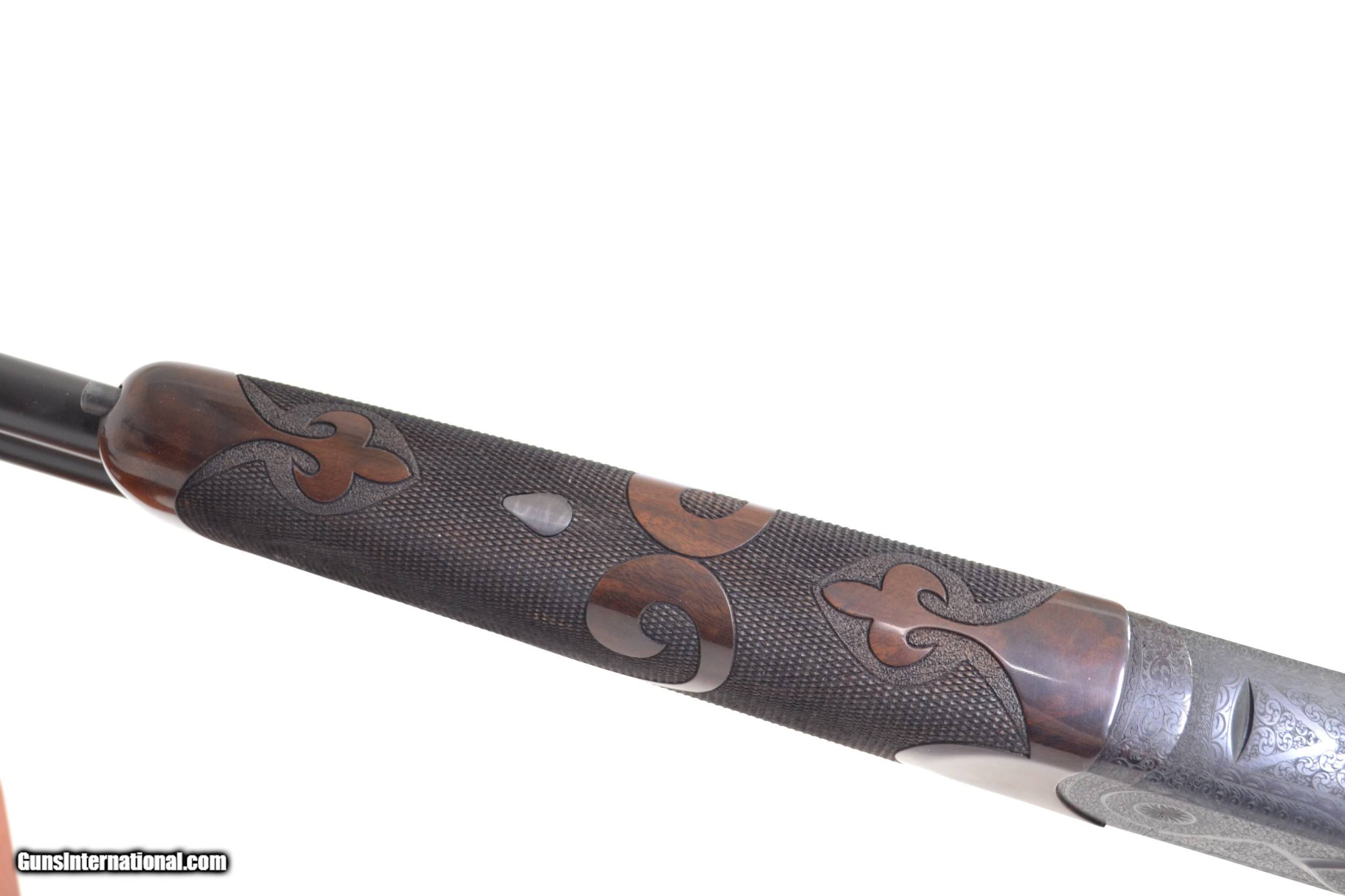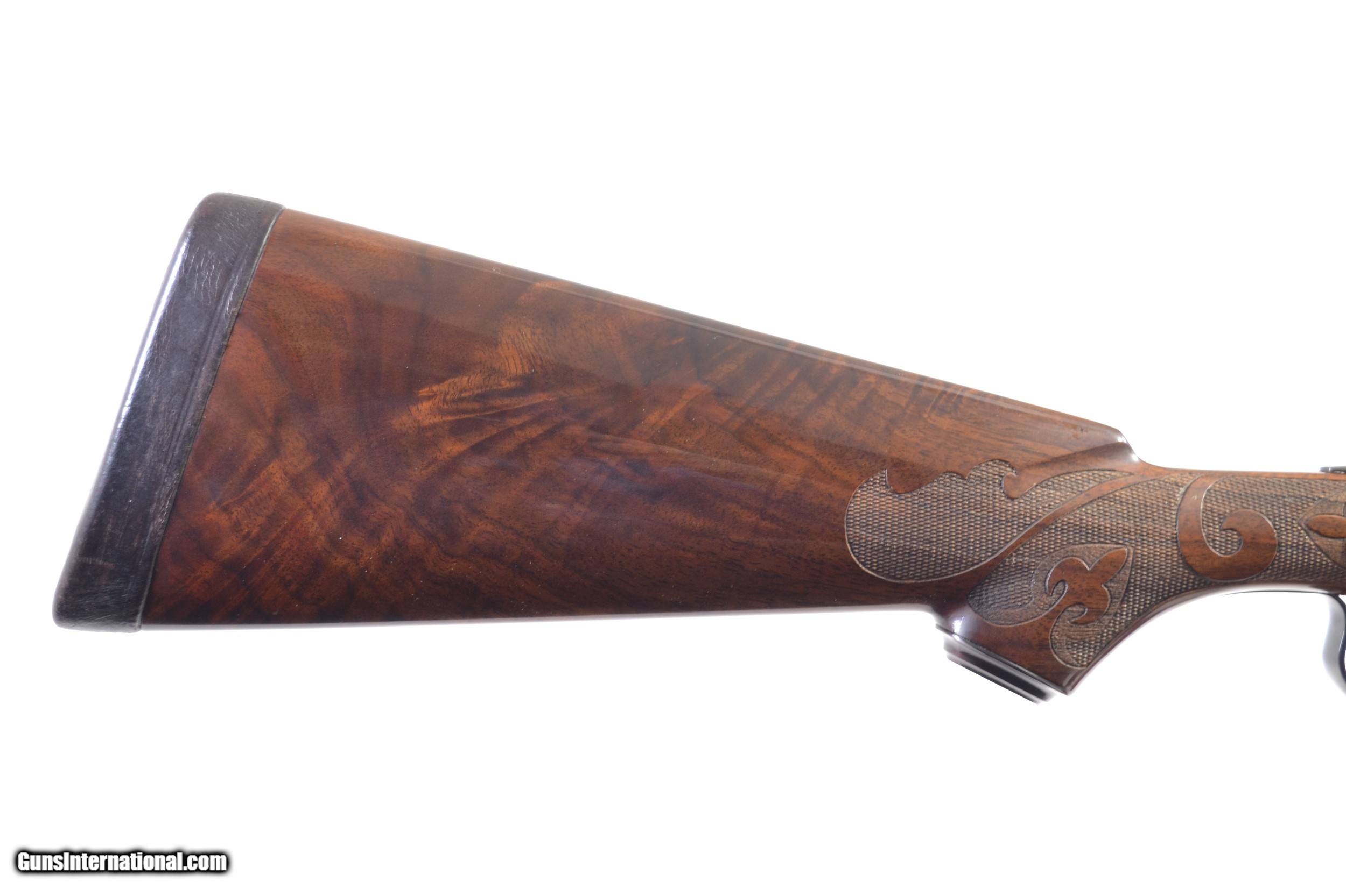 Description: CSMC - Model 21, Grand American, O/U, 20ga. 30" Barrels With Screw-in Choke Tubes. Gorgeous Exhibition American black walnut, B-carve checkering, pistol grip, single trigger, vent rib, automatic ejectors, automatic safety, TruOil finish, a wonderful chance to own the first Model 21 Grand Americans. Available for immediate delivery. Base Price- $12,500.00, Options Include: TruOil Finish - $500.00, Exhibition Wood - $900.00, Long Tang - $700.00, S&H - $50.00. Inv: 31113 6 lbs. 10 oz. 14 1/4" x 1 ½" x 2 3/8" $14,650.00 SOLD |