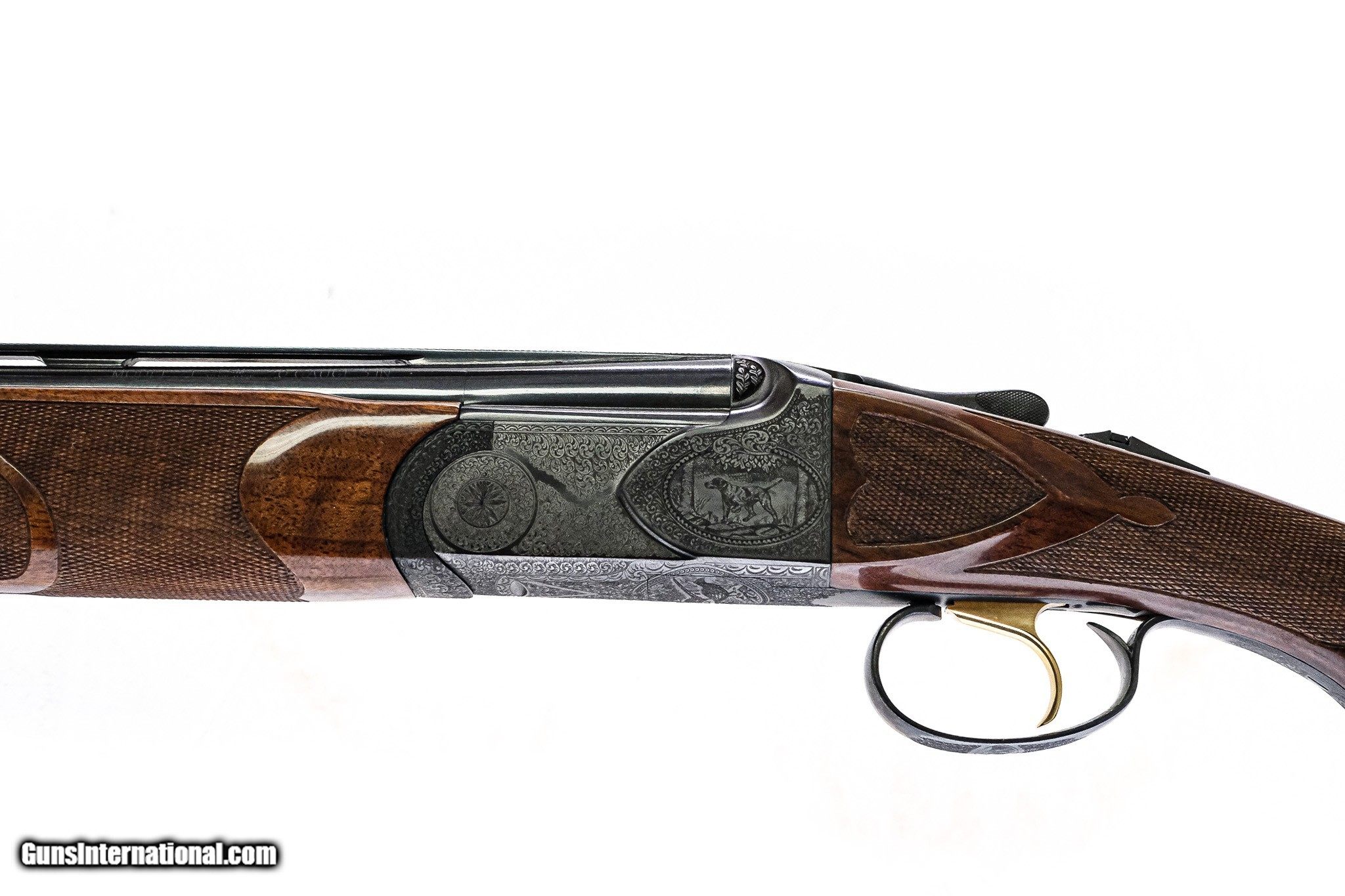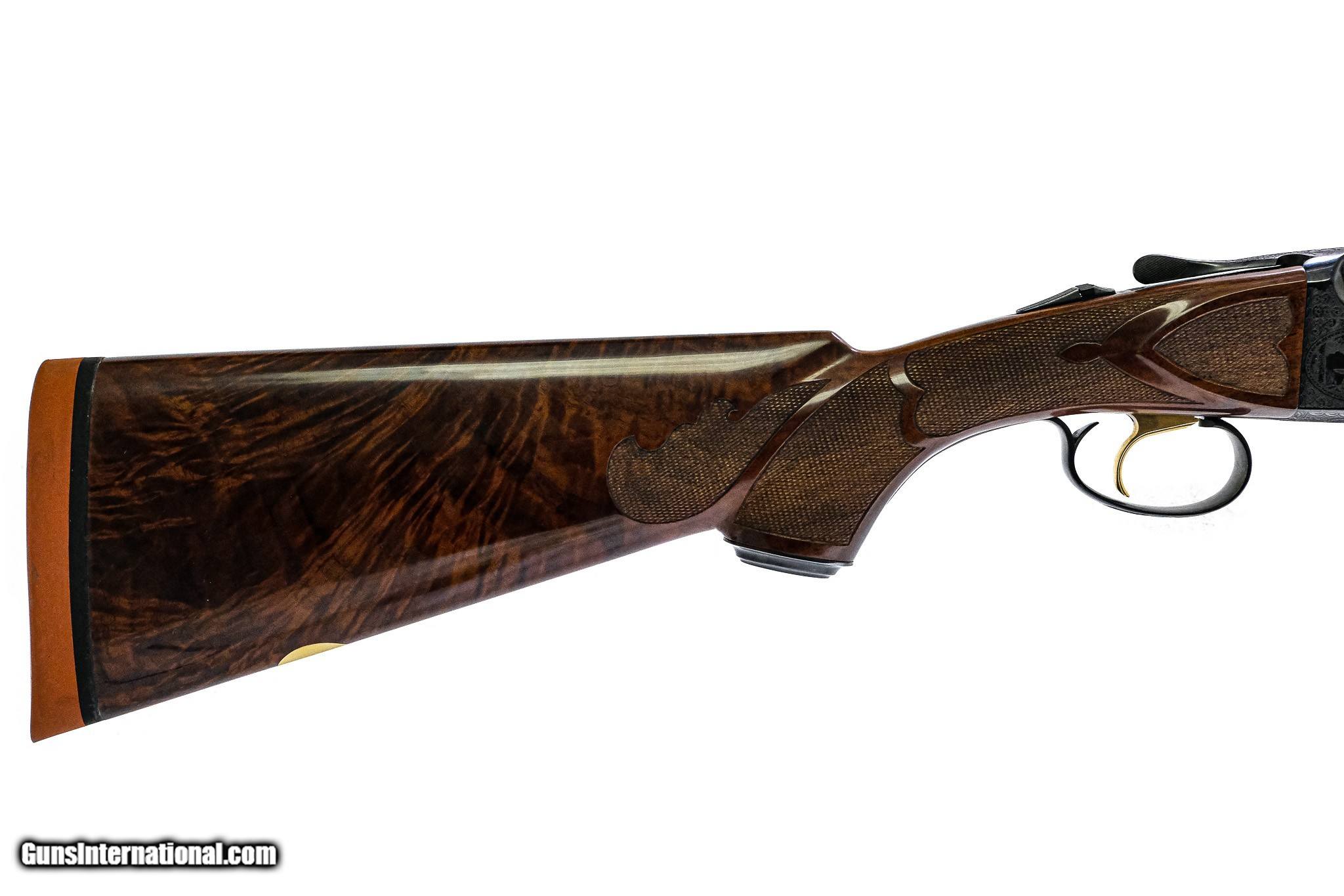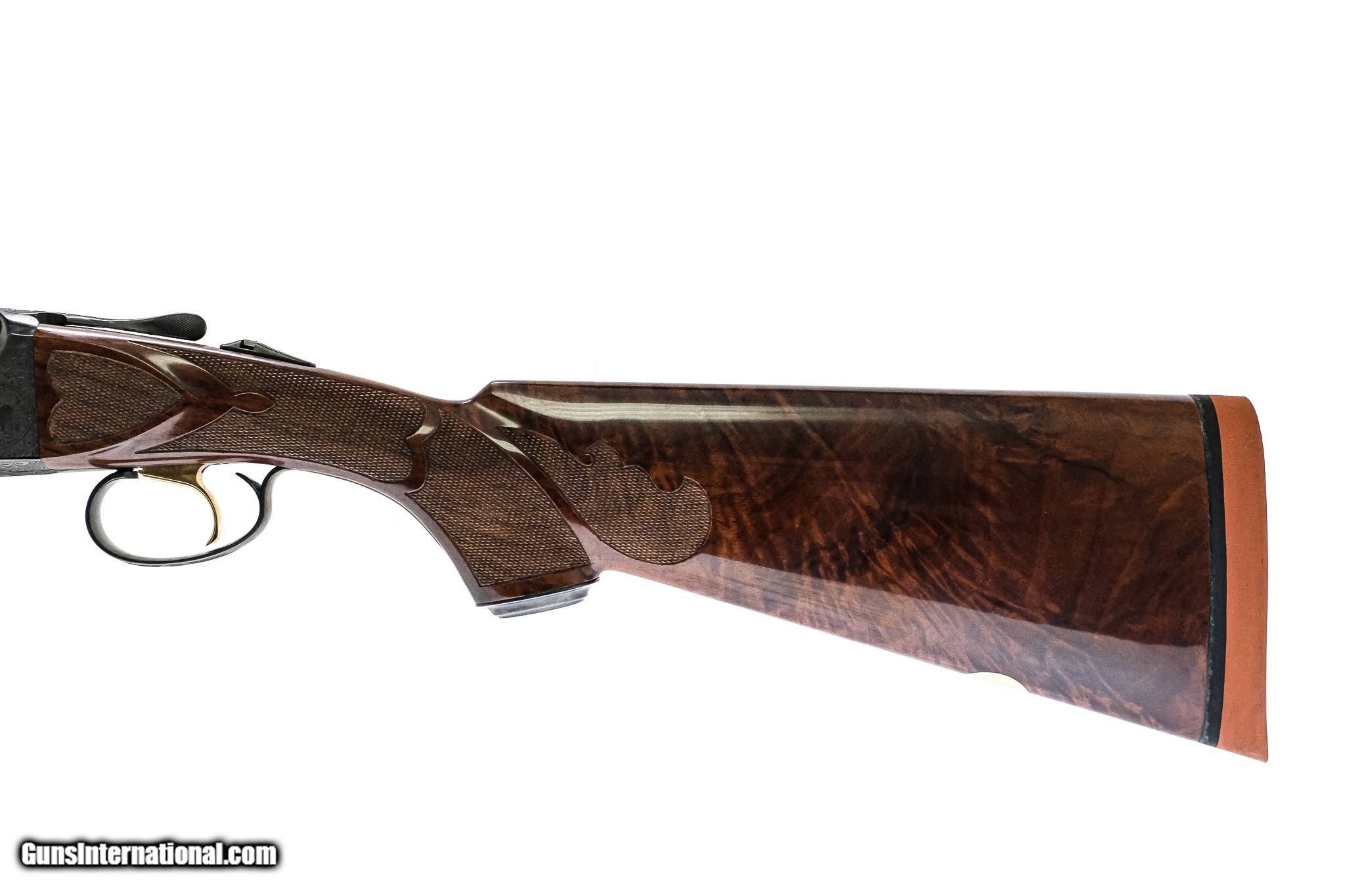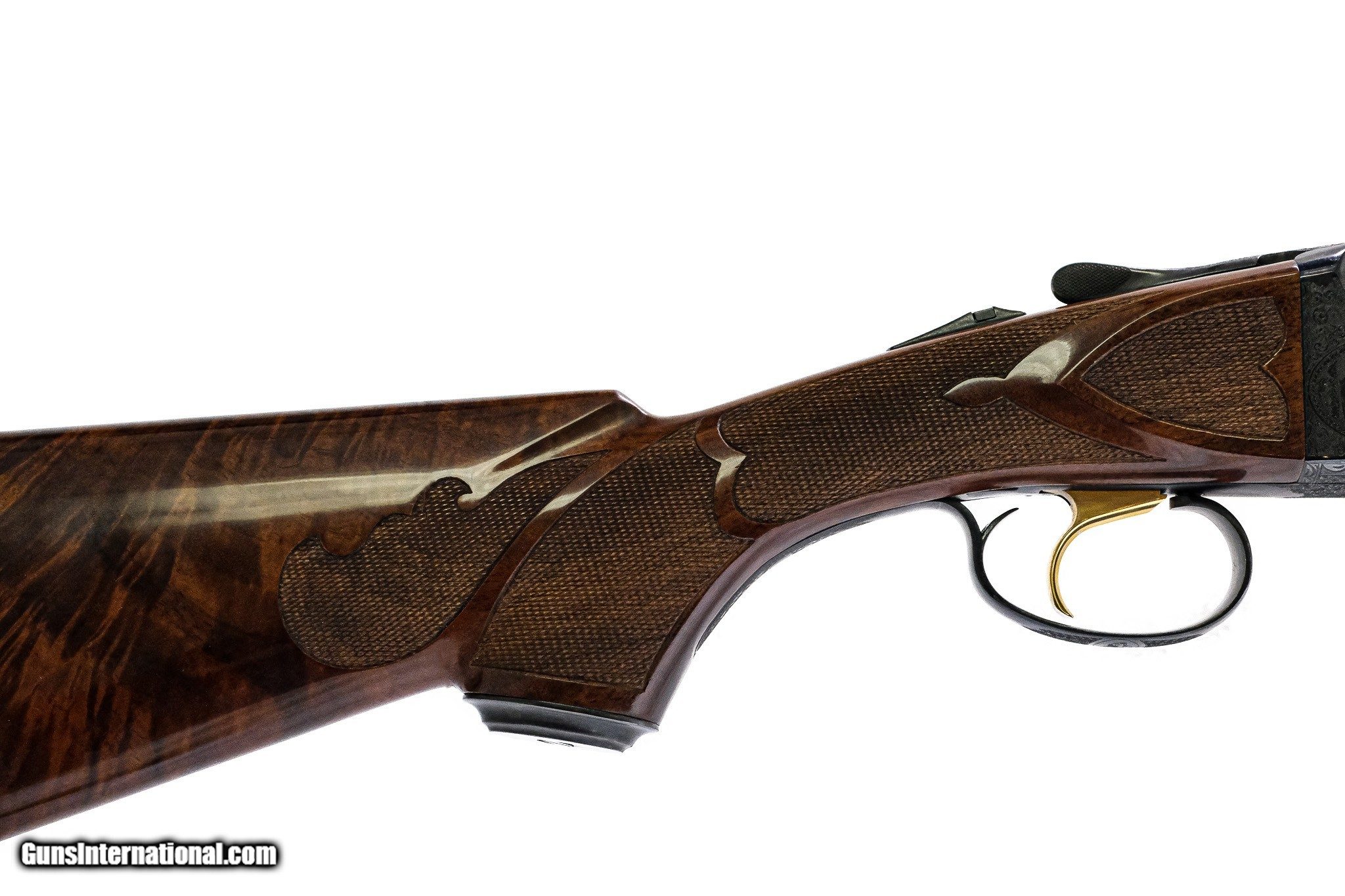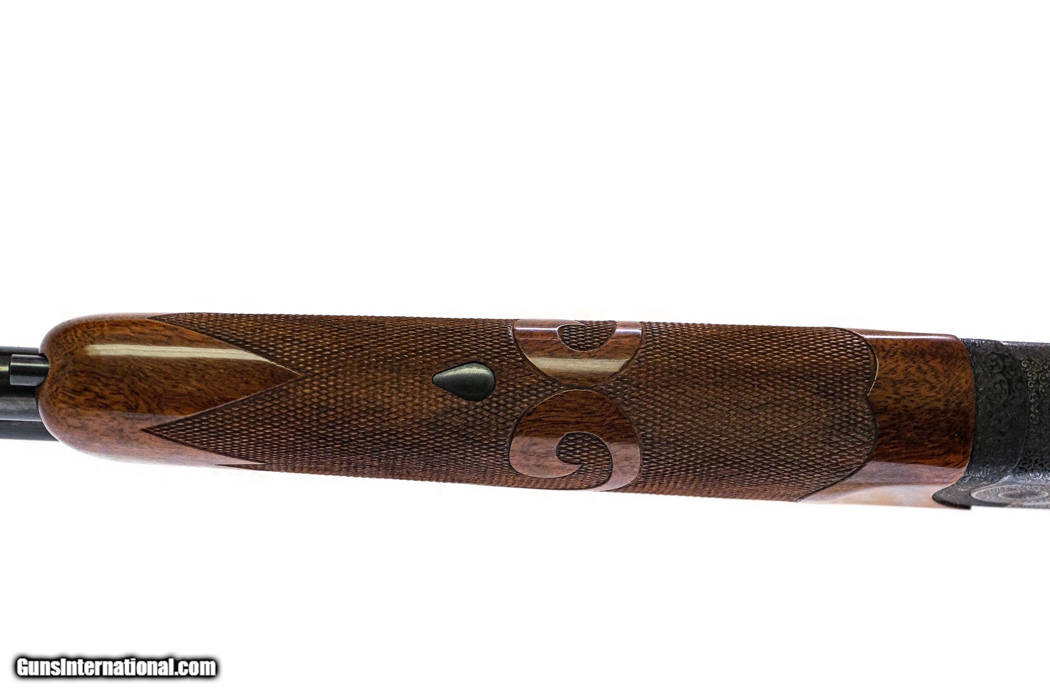 Description: CSMC - Model 21, O/U, Pigeon Grade, 20ga. 30" Barrels with Screw-in Choke Tubes. Magnificent full feathercrotch American black walnut, metal capped pistol grip with A-Carve checkering, single trigger, vent rib, TruOil finish, automatic ejectors, automatic safety, Winchester recoil pad, a superb gun, ready for immediate delivery. Base Price - $7,500.00, Options Include: Exhibition Feathercrotch - $900.00, A-Carve Checkering - $850.00, Gold Oval - $350.00, TruOil Finish - $500.00, S & H - $50.00. Inv: 73796 6 lbs. 8 oz. 14 1/2" x 1 5/8” x 2 1/4" $10,150.00 SOLD |
