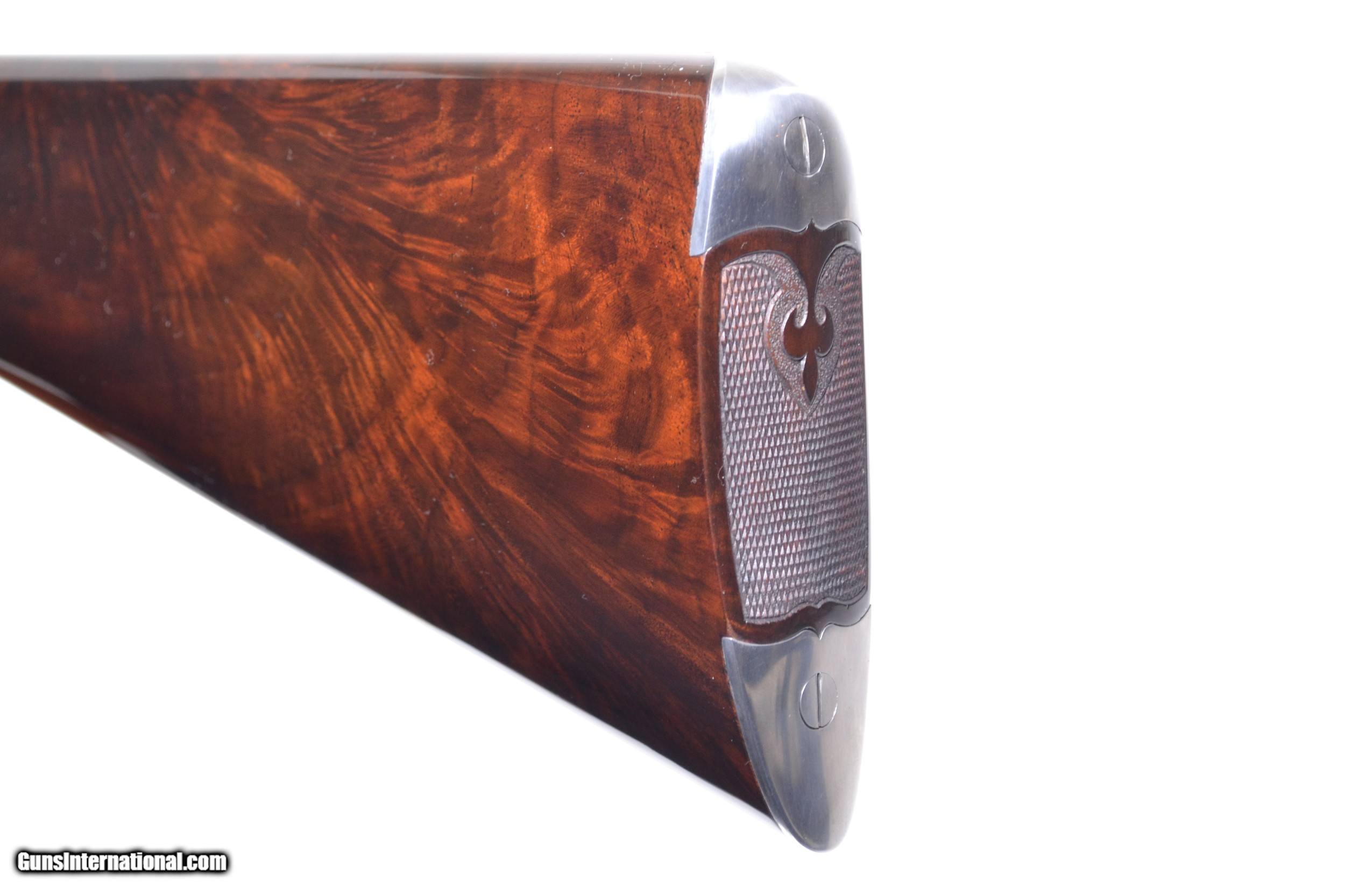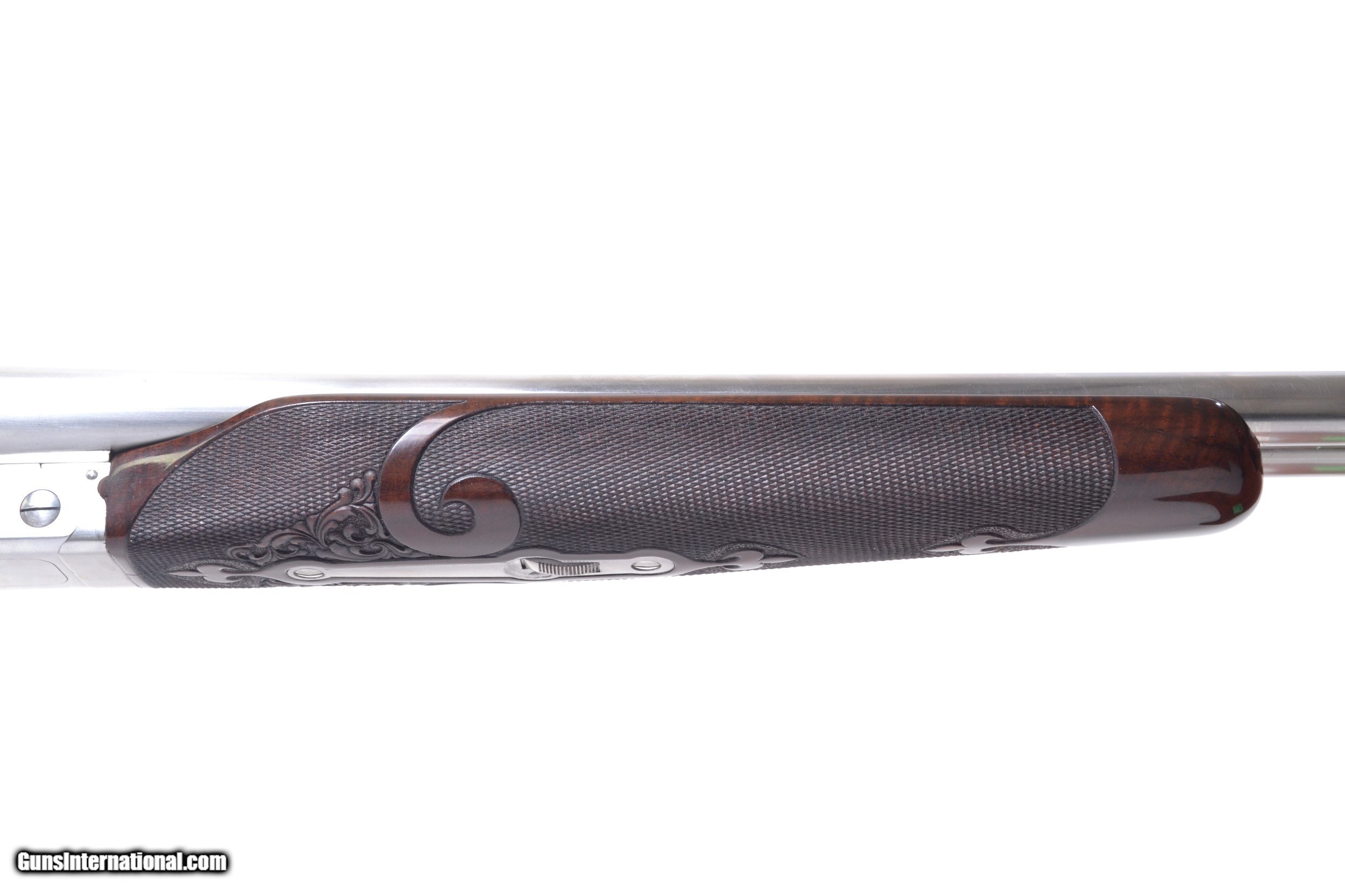 Description: CSMC - Model 21, Baby Frame, 28ga. 26" Barrels. TruOil finished Exhibition grade American Black Walnut stock with custom enhanced “B” carve checkering to include butt with heel & toe plates, beavertail forend, oval stock inlay capped pistol grip, gold finished single selective trigger, auto ejectors, auto safety. The gun remains in the white and can be engraved to your specification, Inv: 17728 5 lbs. 6 oz. 14 1/2” x 1 3/8” x 2 3/8” $25,000.00 SOLD |