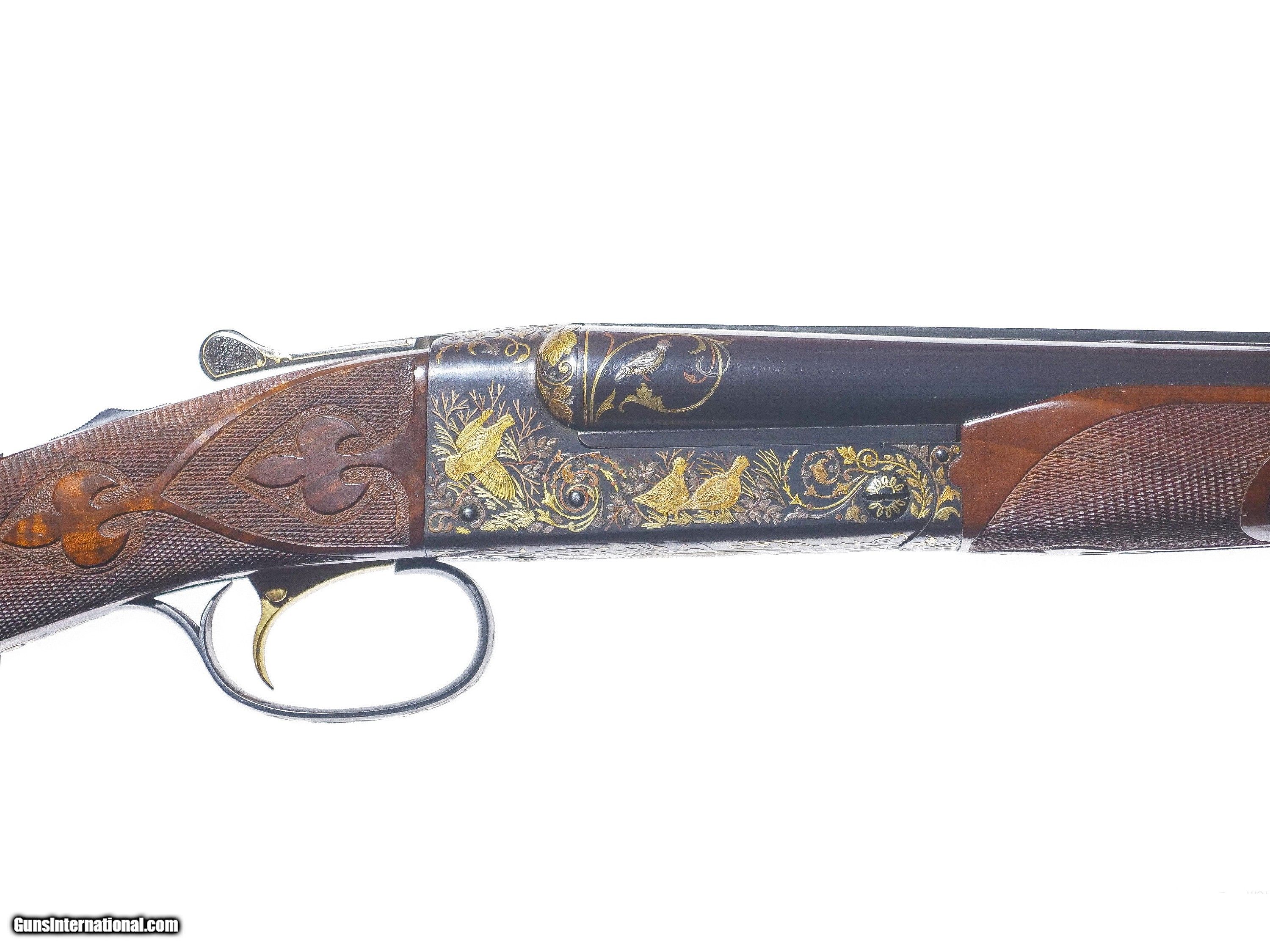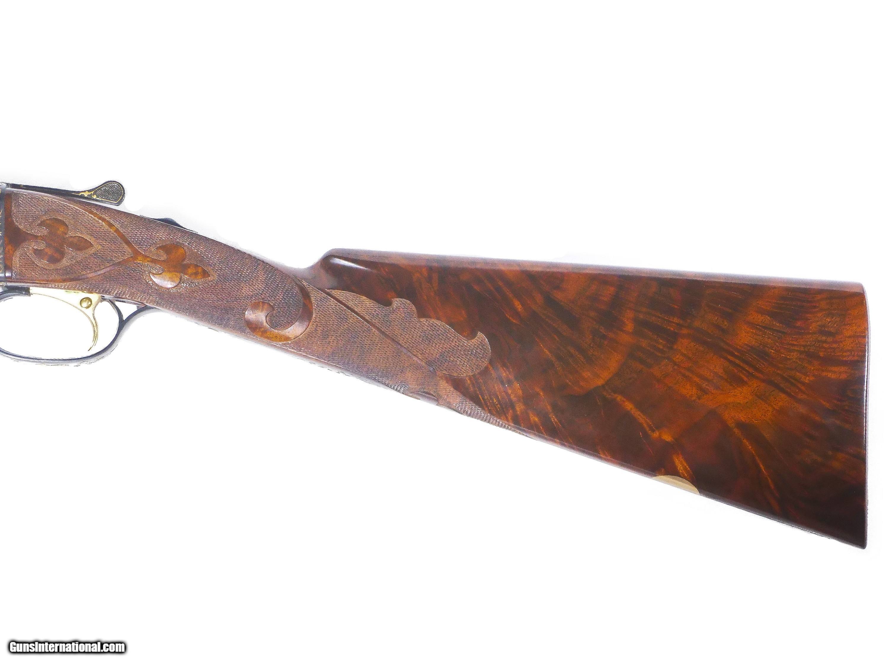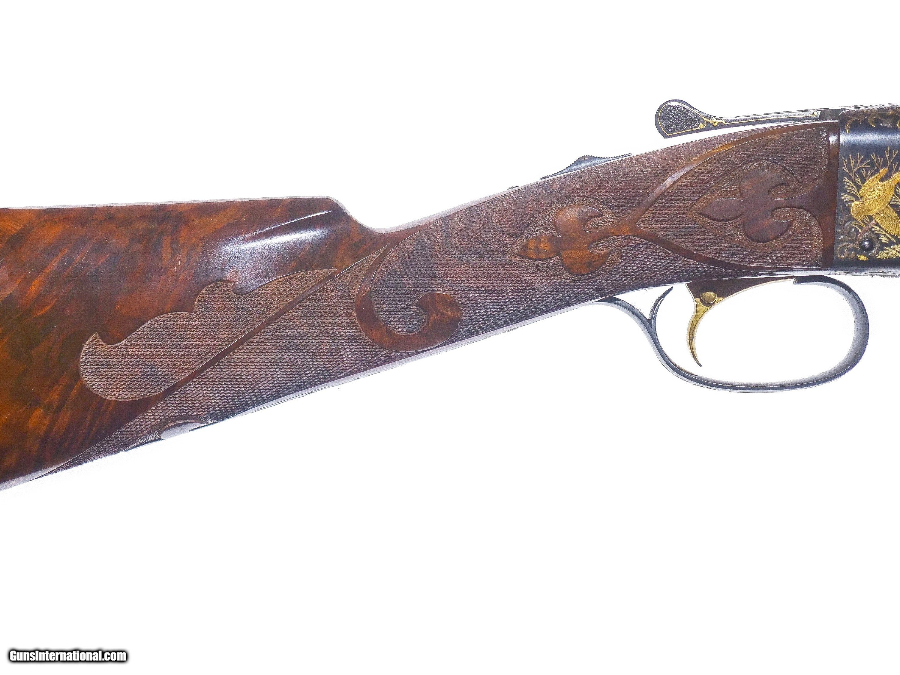 Description: CSMC - Model 21, SxS, Exhibition Grade, 20ga. 28" Barrels Choked IC/M. The highest quality workmanship feature multi color gold inlays green red yellow rose white, colored gold, depicting quail, turkey, a hen turkey with chicks, scroll, raised flat exhibiting many different dimensions, a true Exhibition gun, with a straight stock, black American walnut full feather crotch, with B-carving, highest quality hand rubbed high oil gloss available, checkered butt, Beavertail forend, vent rib, single selective trigger, auto ejectors; this gun is in a class by itself, it is new, unfired with a lifetime warranty, museum quality gun. Inv: 16550 6 lbs. 14 oz. 14 3/8" x 1 ½" x 2 3/8" $38,500.00 CT Shotgun/Galazan buys sells and trades the world’s largest inventory on Model 21 shotguns. we are experts in all phases of buying, selling, and repairing as well as restoration of these very complex guns we have handled more Model 21 in all regards than all other companies put together. we have bought sold and manufactured most of the Grand Royal and Grand American grade guns and we understand them intimately. In 1994, Galazan/CT Shotgun purchased the Winchester Custom Shop from U.S. Repeating Arms Company and at that time designated the sole manufacturer and authorized repair for the Model 21, we purchased all of the inventory machining tooling and highly regarded trade secrets in regards to manufacturing and repairing maintaining these intricate shotguns. CT Shotgun/Galazan continues to perform the only authorized factory service on all these fine guns if you are interested in purchasing repairing or altering a Model 21 we should be your sole source when it comes to a Model 21 every gun we sell is serviced and inspected, comes with our lifetime warranty. CT/Galazan also has all assorted accessories, original style cases and recoil pads. WHY BUY A MODEL 21? 1. No one knows the gun better than us. 2. We are the only authorized repair facility for Model 21s. 3. We build the new Winchester Model 21. 4. We build the CSMC Model 21. 5. Every gun receives a safety inspection before sold to a customer. 6. Most guns are detailed, cleaned & lubricated and any parts charged to make them as factory new. 7. Fair honesty, reputable dealing for over 20 years. 8. Very competitive pricing. If you compare our guns to any other gun on the market, you will find in most instance that our guns are the best value. The best are brought up to factory specs which, in some cases, can be more than the gun. 9. The largest collection of Model 21s in the world. 10. With any Model 21 SxS you buy from us; we offer a lifetime mechanical warranty. We only sell direct; we use no dealers. You get the maximum value this way without any additional markup. All of our guns are made in the USA, in one facility, designed and built, with a lifetime warranty which no one else can offer. A dealer will sell you the gun he makes the most money on, which generally means less money going into the gun. One thing we would like you to understand is that you are purchasing this gun directly from the manufacturer, which means huge savings when you consider the markup that distributors and dealers make. By the time you get the gun, the price is many times over the manufacturing cost. That money goes to your dealer and is not put into the product, or in most cases, a large advertising budget. Gun for gun, the value of our gun far exceeds anything in its price category. Nobody offers a lifetime warranty, and this is direct from the manufacturer straight to the original purchaser. Price: $38,500.00 Contact Seller |