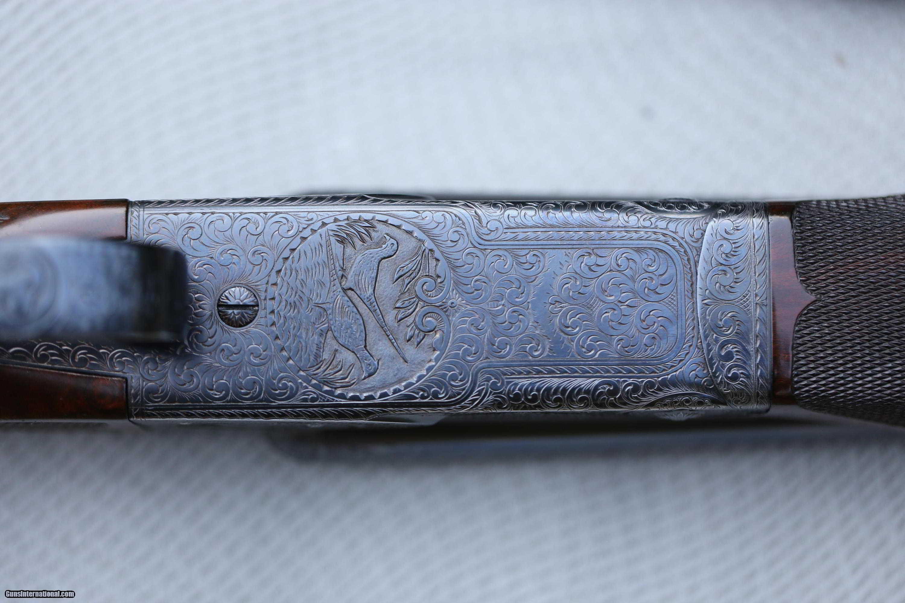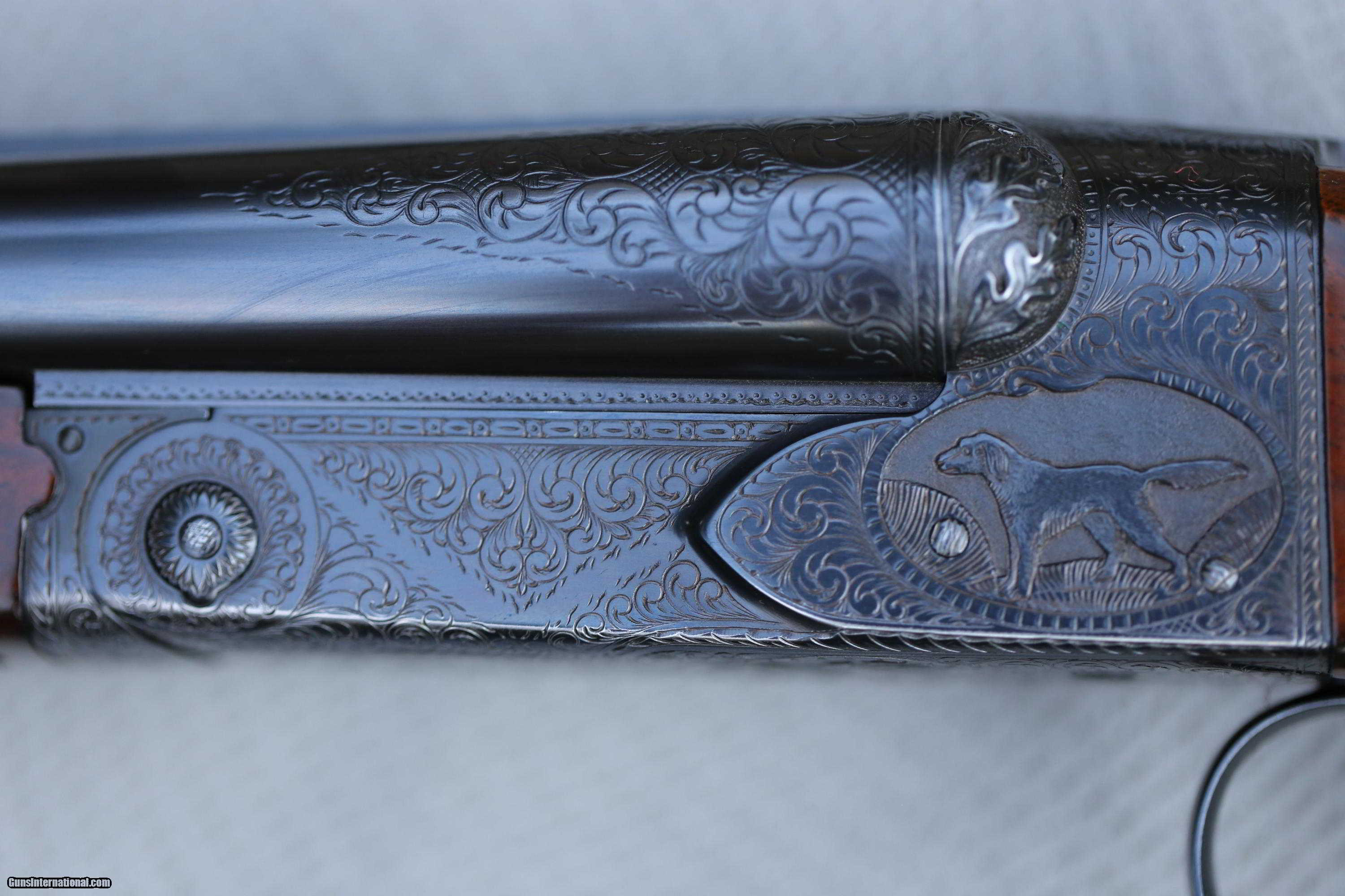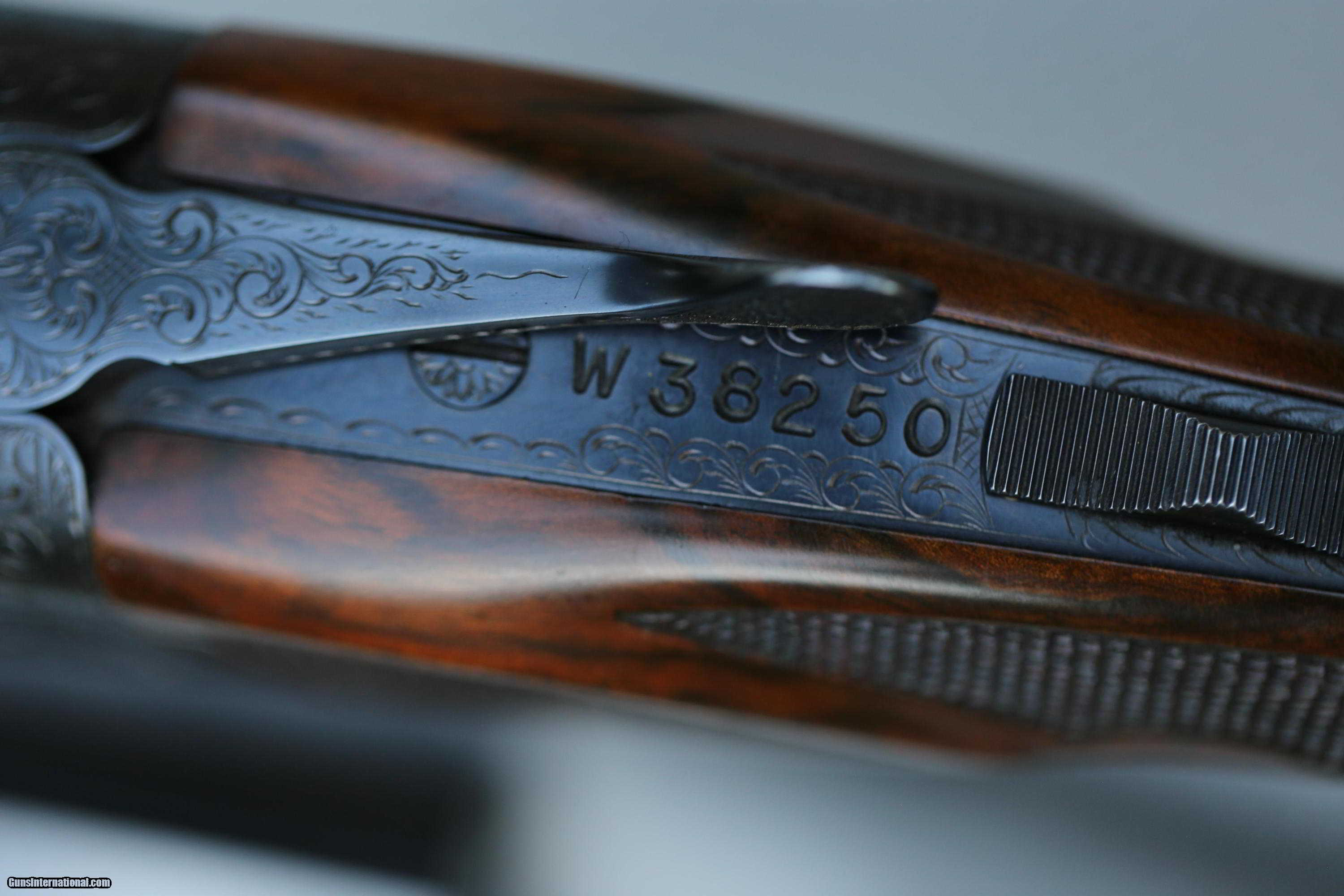 Description: For sale is a Winchester 21 ,grade 6,two barrel, 16 gauge made by CSM. An absolutely beautiful gun, no flaws what so ever. Gun comes with all serial numbers matching with 2 barrels, 30-inch vent rib (full/full) and a 28-inch vent rib (Cyl/Cyl). Gun has deep relief engraving with multiple dogs and bird engraving patterns. Unbelievable upgraded wood as true to the CSM way. dimensions are 1 1/4 by 2 1/4 by 14 1/4. Great all around bird gun. Please contact before purchase or placing a bid. Thanks SOLD Manufacturer: CSM Model: Model 21 grade 6 Bore: 16 Chambers: 2 3/4 inch Ejectors: yes Condition: great Metal Condition: like new Wood Condition: like new Bore Condition: like new Barrels: both like new Barrel Type: like new Action: like new Triggers: like new Gauge Info: 16 Stock Drop: 1 1/4 by 2 1/4 Stock Comb: 2 1/4 Stock Heel: 1 1/4 Stock Cast: 1/4 Fore End: bever tail LOP: 14 1/4 Choke Left: Full Choke Right: Full Engraving: grade 6 |