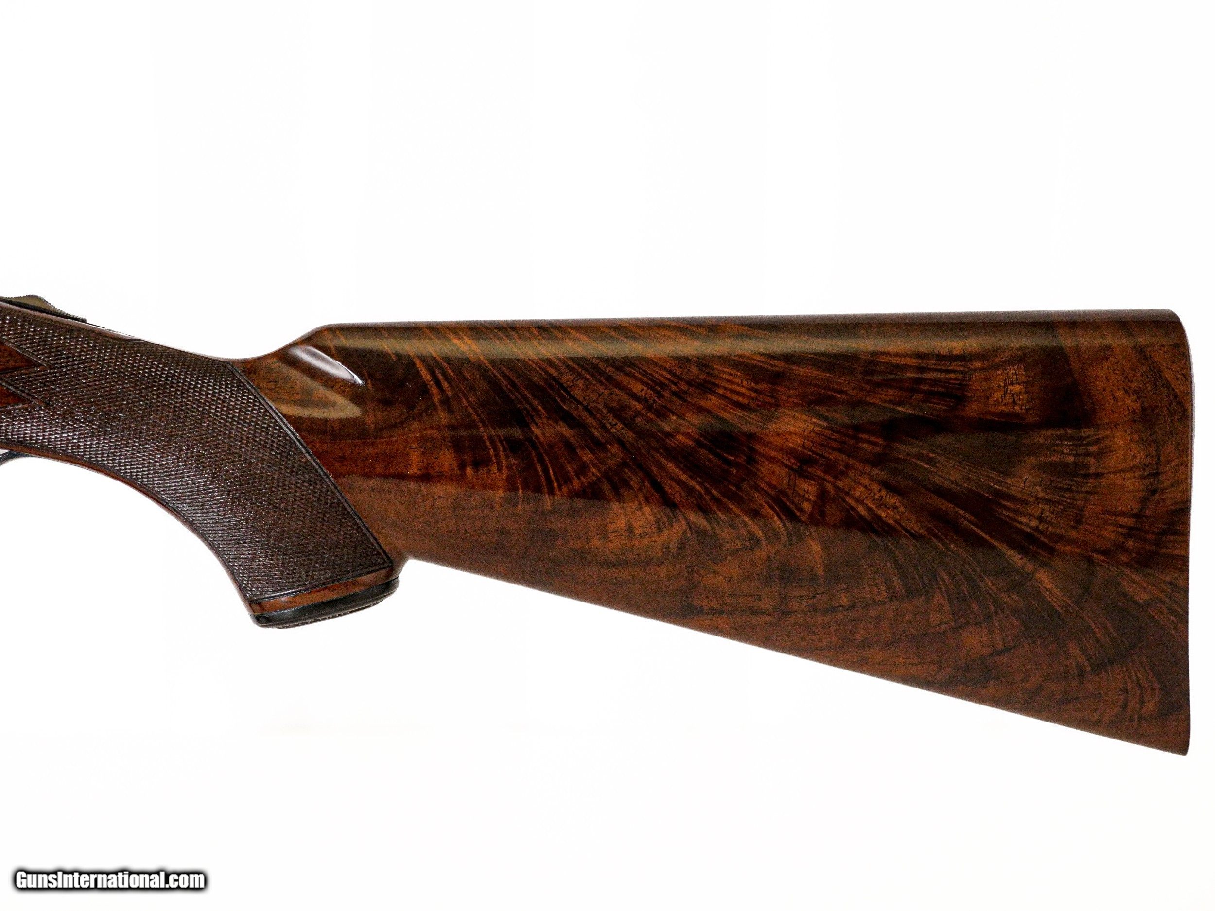 Description: Winchester - Model 21, 28ga/.410. Two Barrel Set, 30" IC/M & 30" IC/M. 28ga 30” IC/Mod, and .410 30” IC/Mod, extra fancy American black walnut feathercrotch, capped pistol grip stock, checkered butt , single selective trigger, two beavertail forends, Winchester custom pattern checkering with checkered side panels, vent ribs, auto ejectors, raised side panel receiver, 99% condition throughout, appears unfired, estate gun which we will consider any and all serious offers, available for immediate delivery. Inv: 51427 7 lbs. 0 oz. 14 3/8” x 1 3/8” x 2" $27,500.00 SOLD |