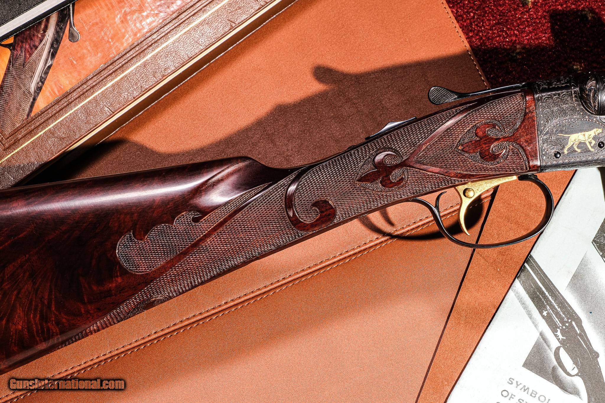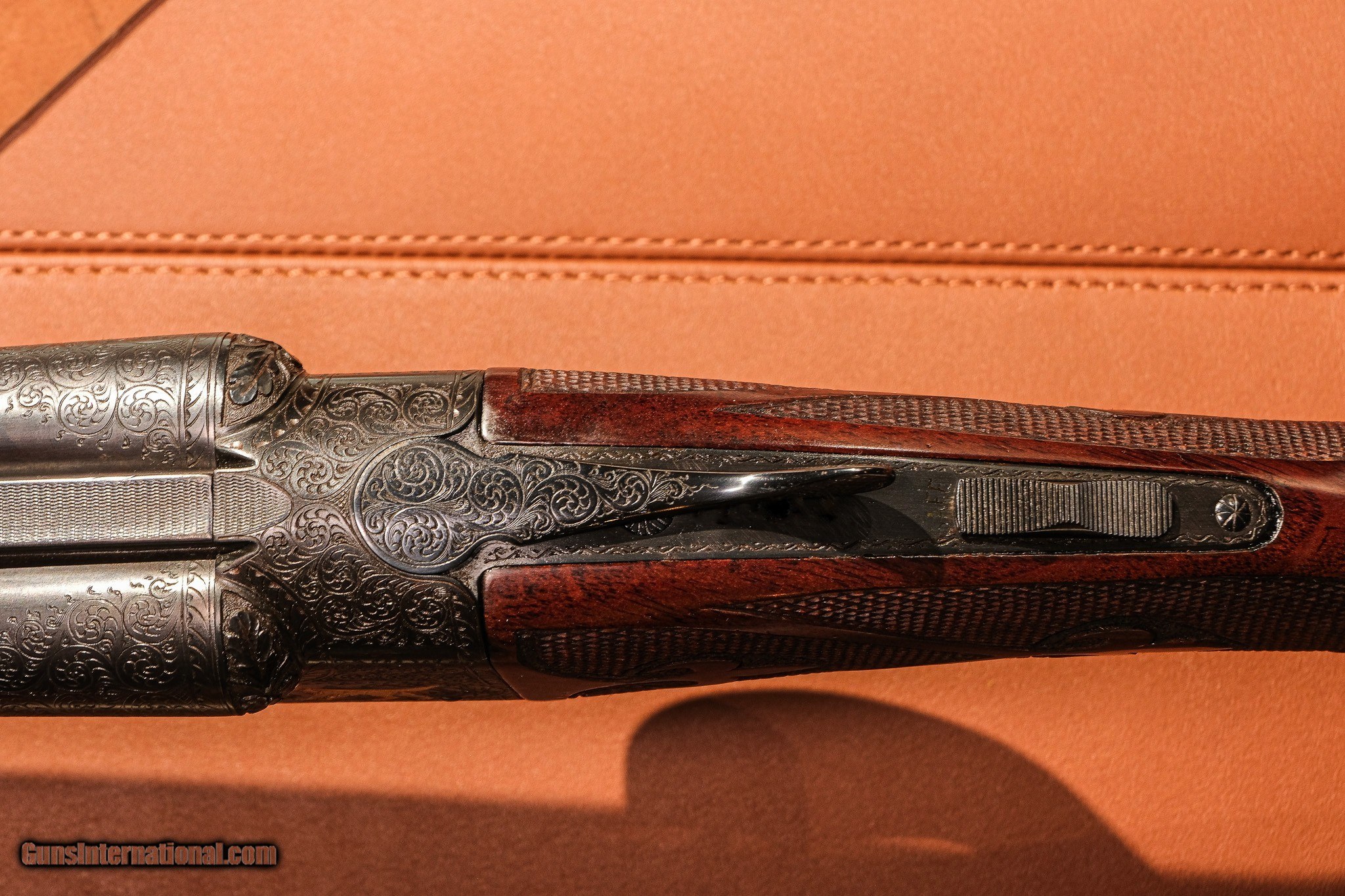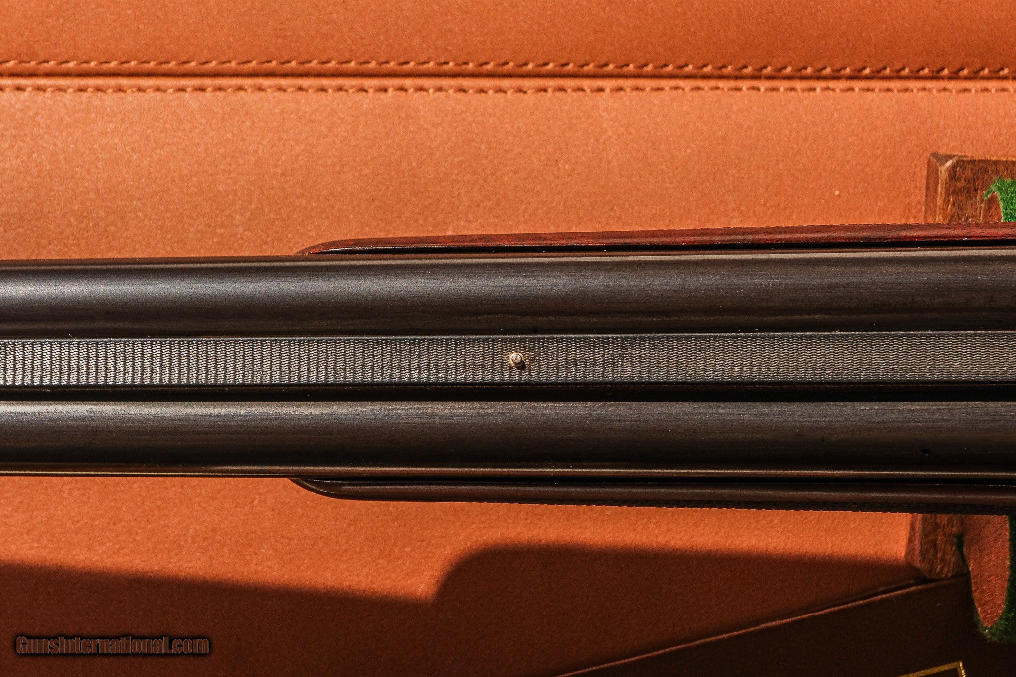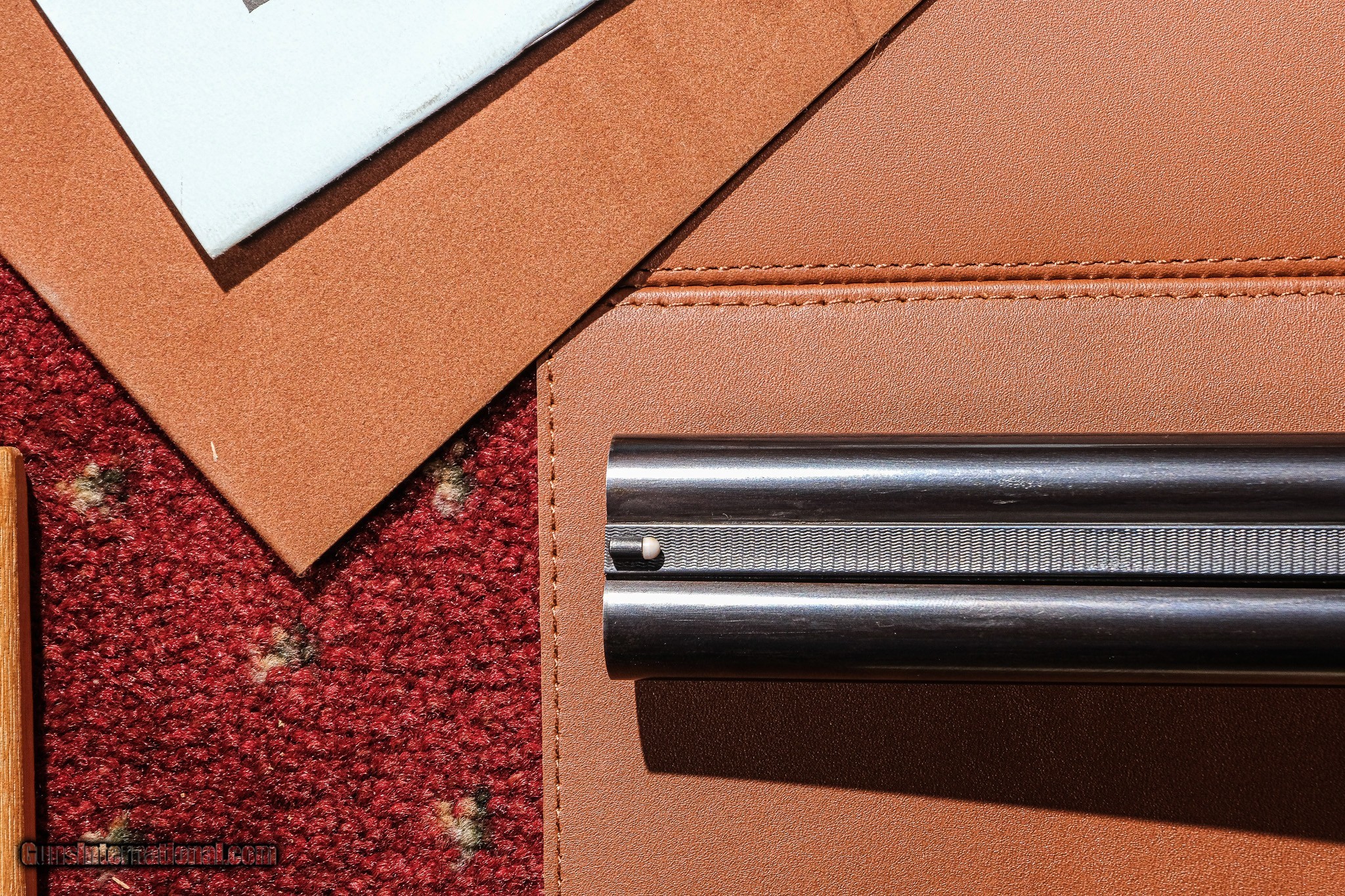 1st set of barrels, 20ga. 26” matted rib barrel, marked custom built by Winchester and choked WS1/WS2. Second set, 28ga. 26” matted rib barrel, marked custom built by Winchester and choked WS1/WS2. Third barrel. 410 26” matted rib barrel, marked custom built by Winchester and choked WS1/WS2. B carved stock, two forends. Jeweled water table, barrel flats, and forend iron. Engraving performed by Nick Kusmit. Straight grip, checkered butt. Heavily figured feather crotch. Ebony forend tips, perfect checkering. Gun is brand new and appears unfired. We believe this gun was sent back and upgraded by Winchester. We serviced this gun over twenty years ago and it is just an outstanding piece of craftsmanship. Warrantied for life to the original owner courtesy of Connecticut Shotgun.